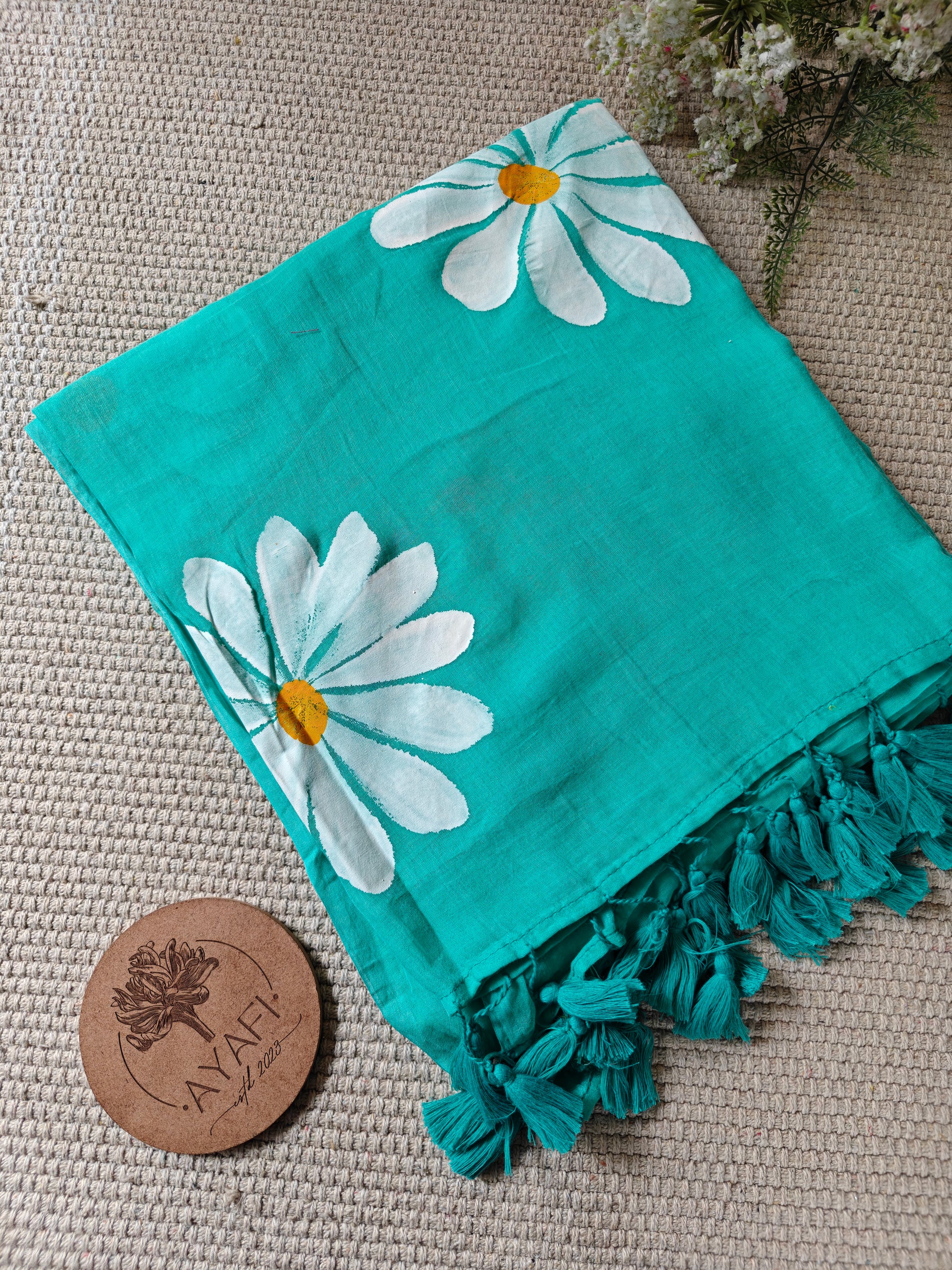 Soft, breathable, and incredibly lightweight, the mul cotton drapes like a dream—perfect for day-to-evening wear. Finished with delicate handmade tassels along the pallu, every detail speaks of slow fashion and one-of-a-kind charm.