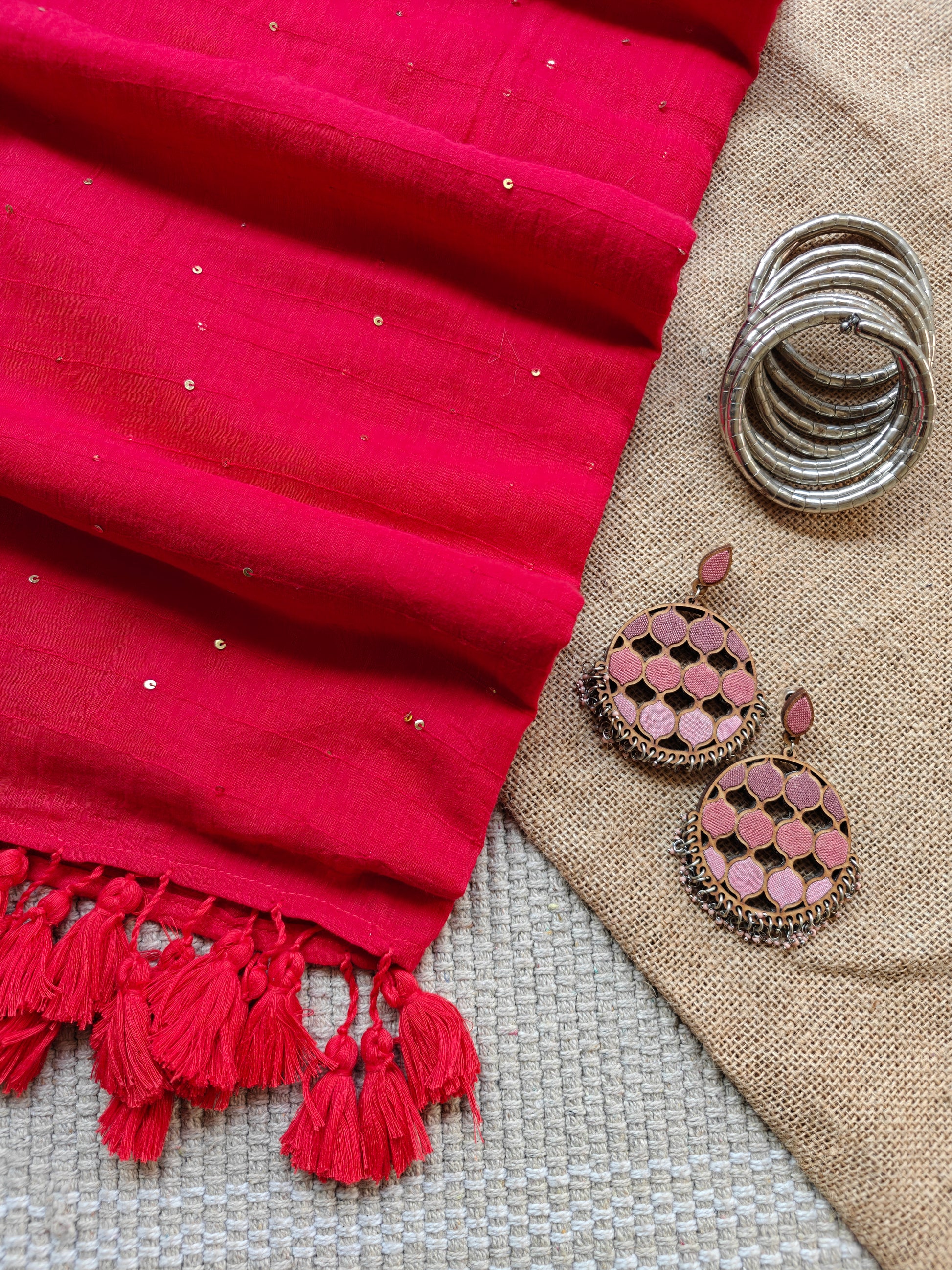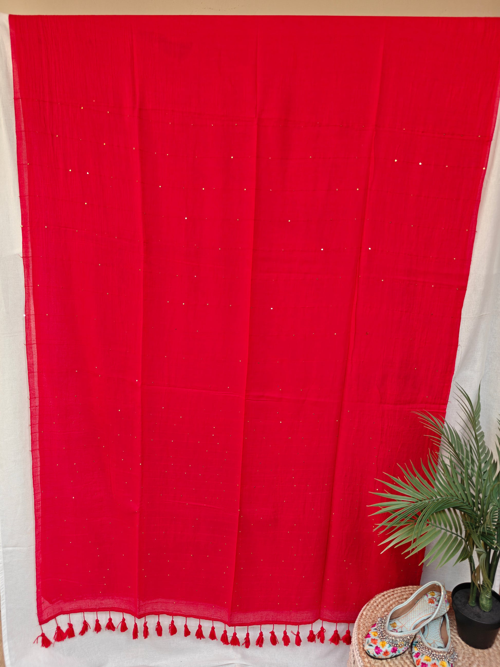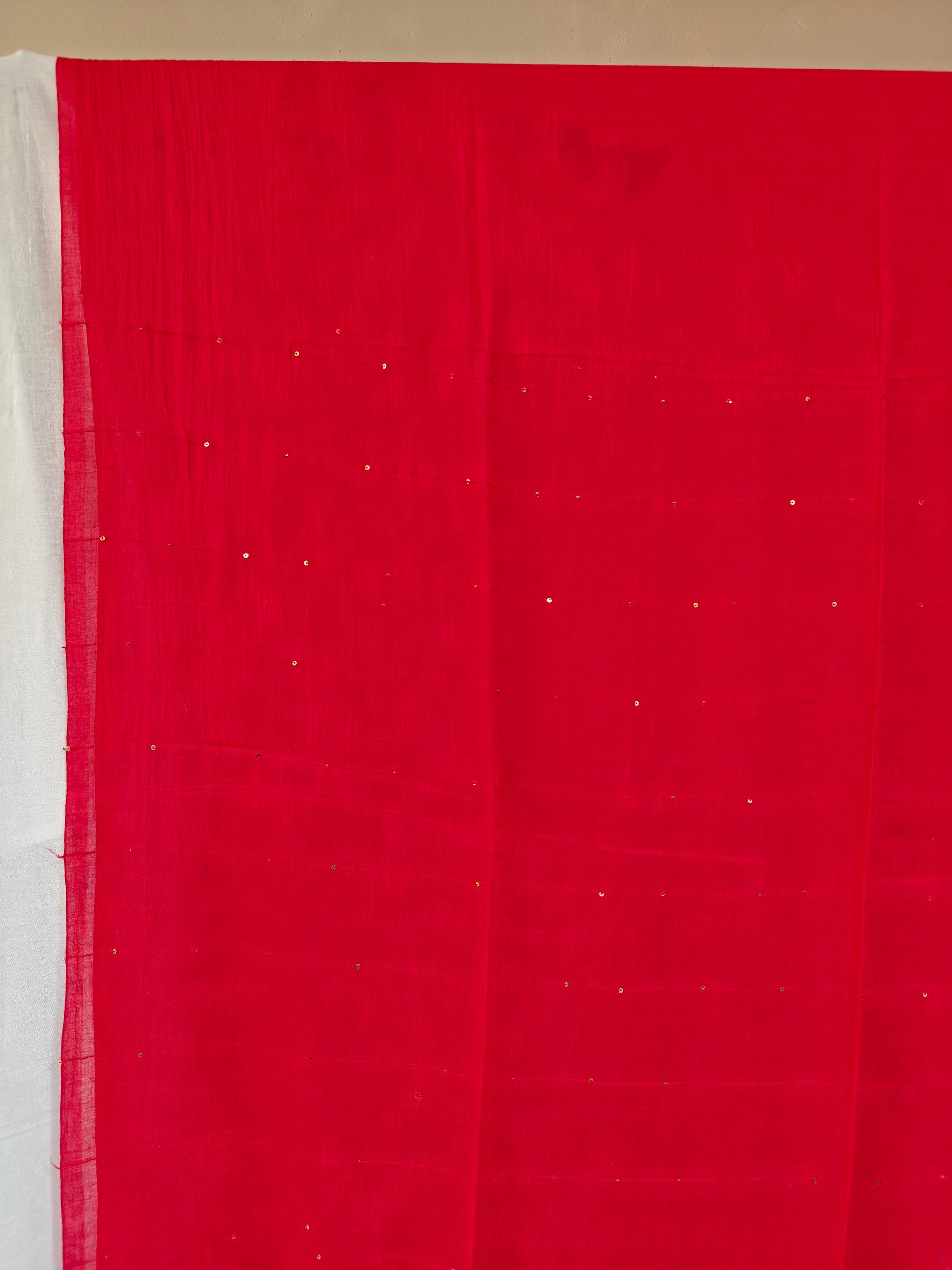 Introducing our stunning Sequin Mul Cotton Saree, a masterpiece of elegance and glamor that effortlessly combines traditional craftsmanship with contemporary flair. The subtle yet dazzling shimmer of the sequins all over the body and pallu complements the understated elegance of the Mul Cotton Fabric.