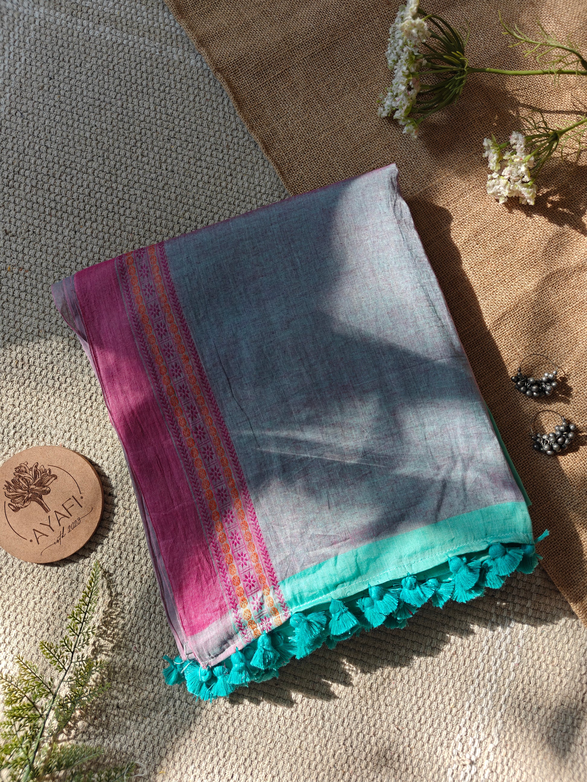 Wrap yourself in elegance with our Soulful Weaves range of sarees - handwoven masterpieces that celebrate tradition with a modern edge. This saree features a delicate blend of hues, elevated by a striking contrast pallu & border that adds definition & flair.