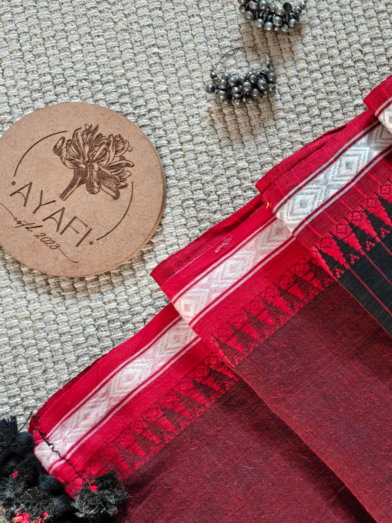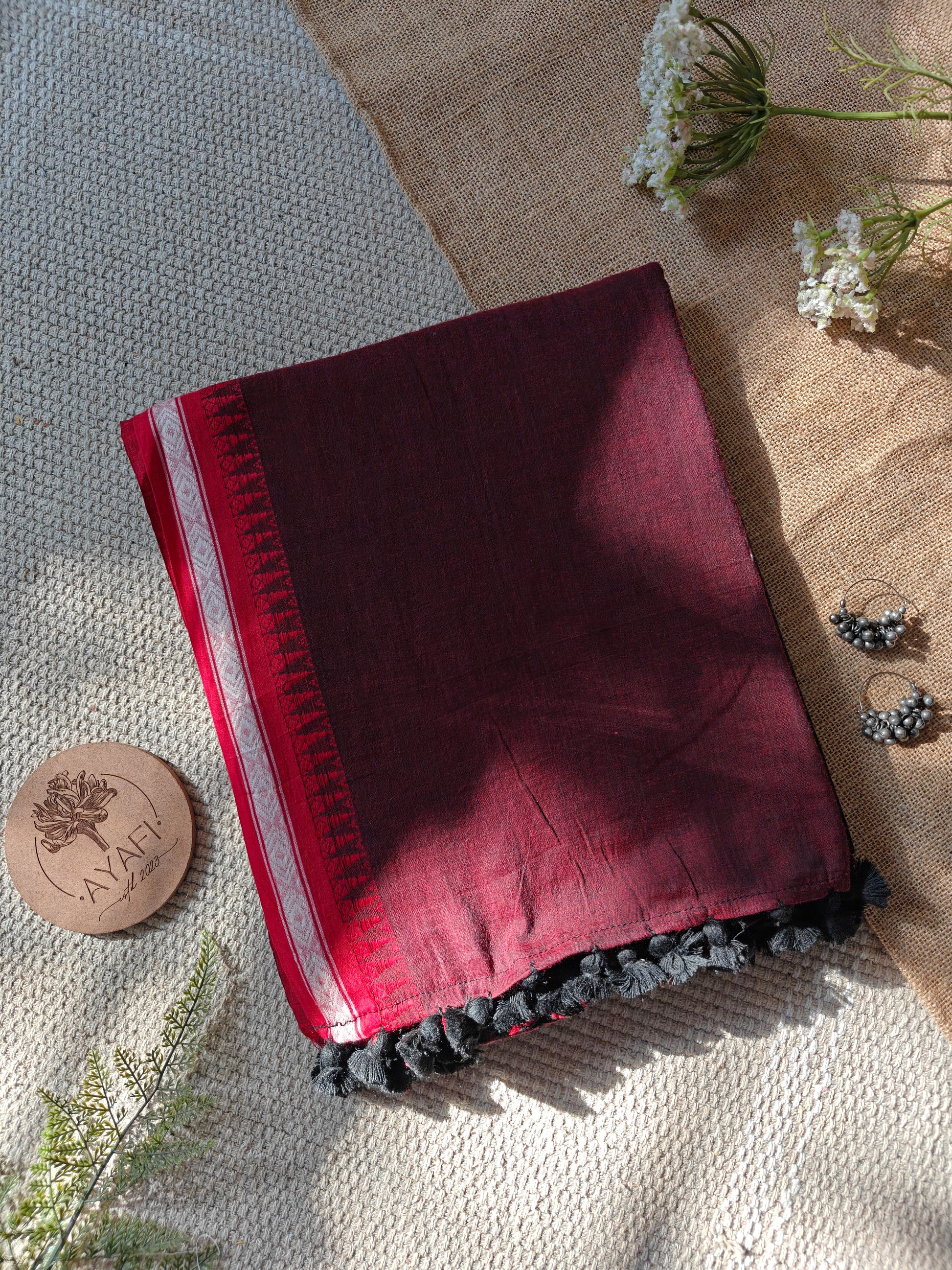 Finished with handmade tassels that sway with every step, this saree is more than just an outfit—it's a work of art. Pair it with oxidized jewelry, and let the craftsmanship speak.