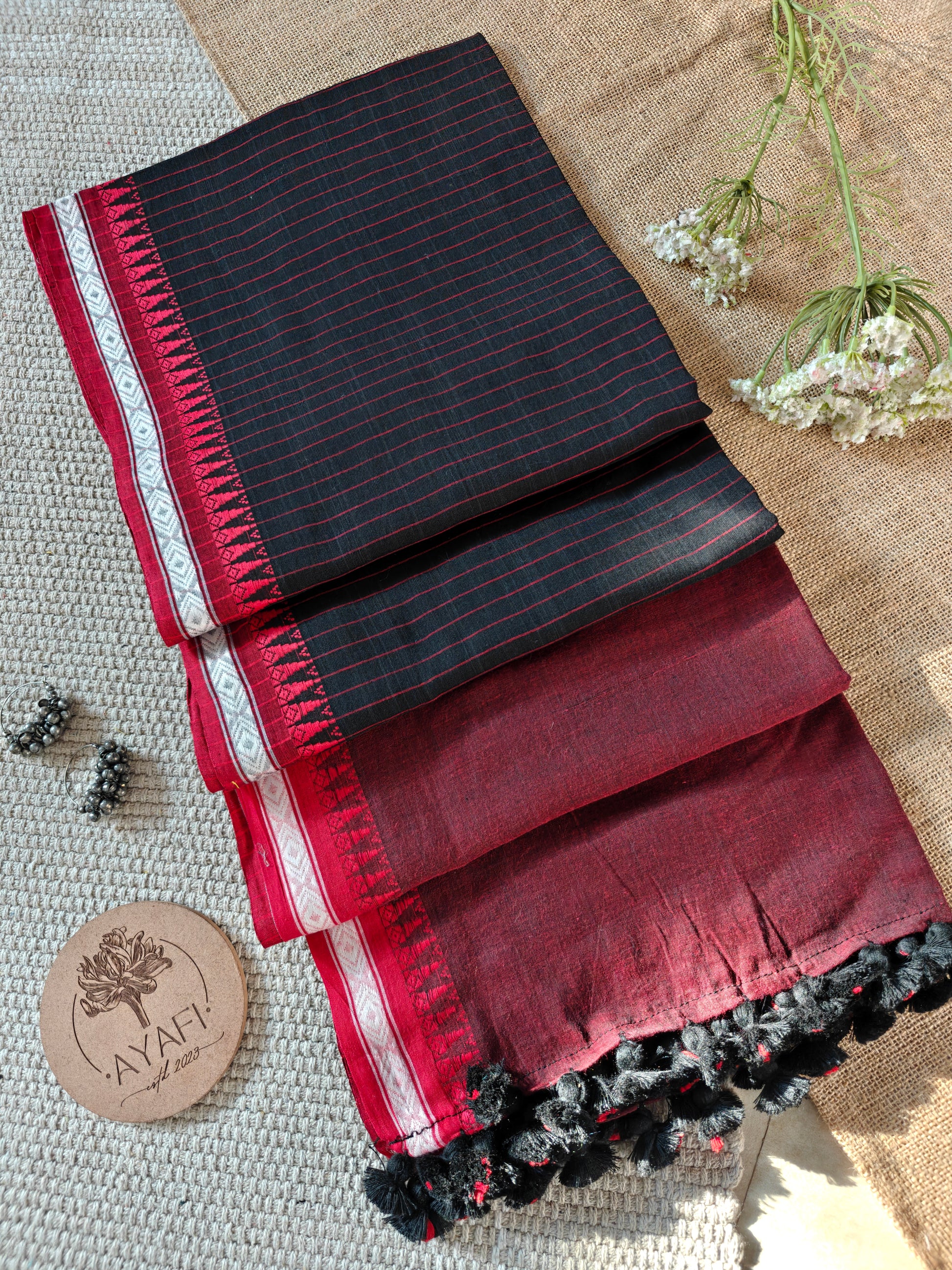There may be mild inconsistencies in the warp, weft, shade, motif and/or thread pulls owing to the delicate as well as lightweight nature of the sarees and their weaves. These indicators of incidental imperfections aren’t flaws, but marks that make a natural product charming and unique. All items are shot in natural light. We try to capture the color and texture as accurately as possible. What you see is real. However, due to different display methods, the color in the picture may be slightly different from the real thing and so any returns or exchanges will not be accepted on the grounds of a color mismatch.