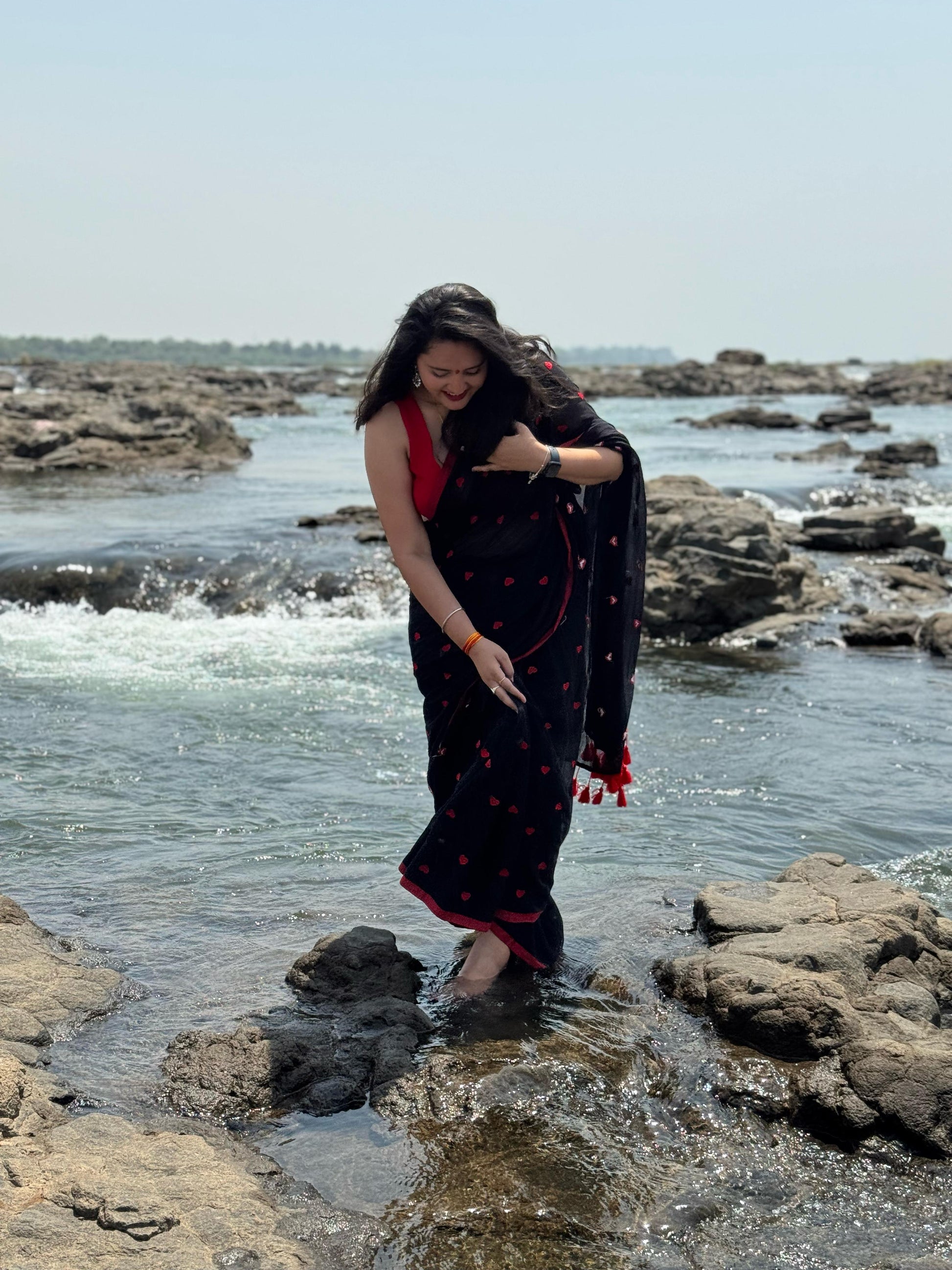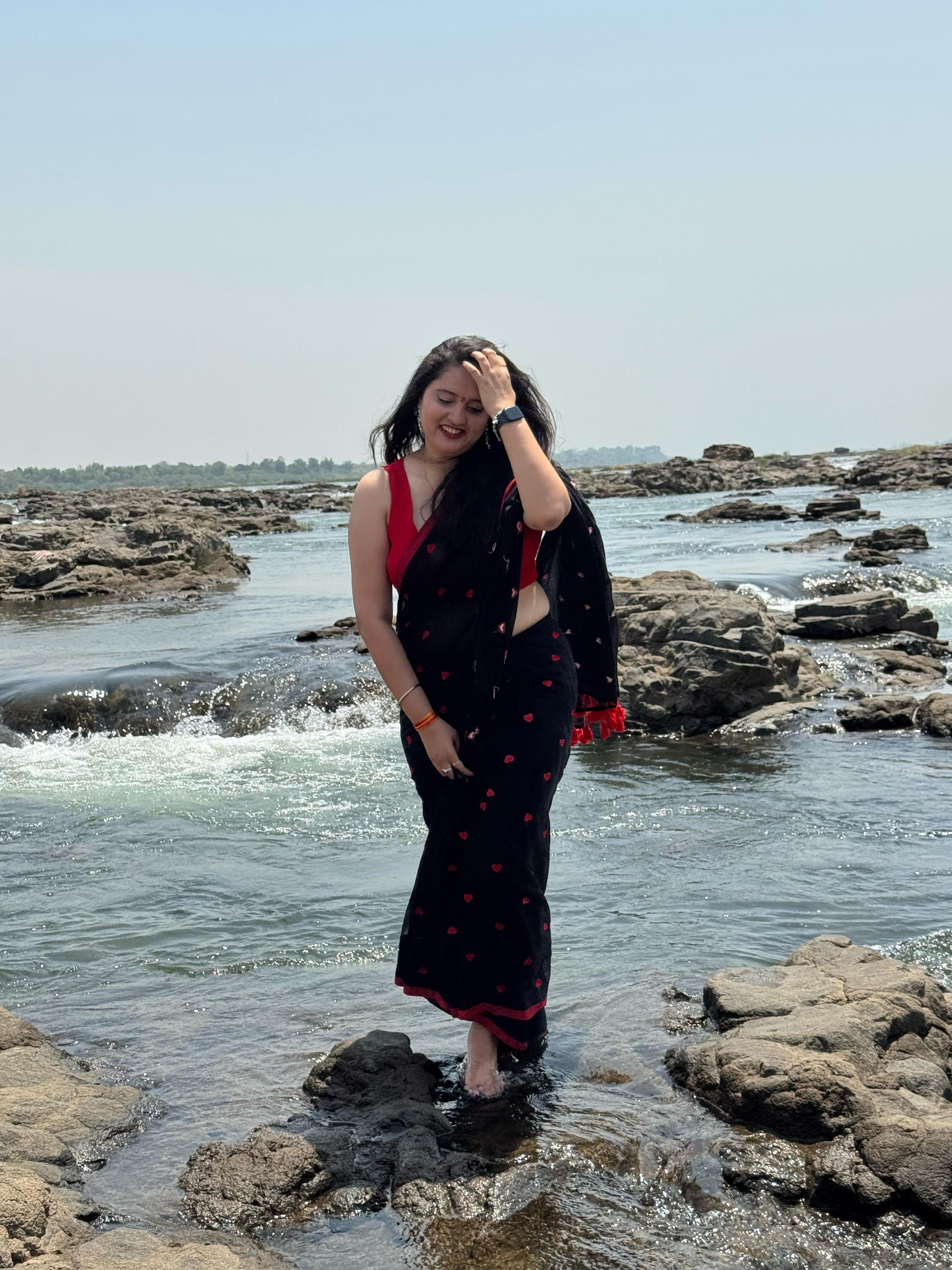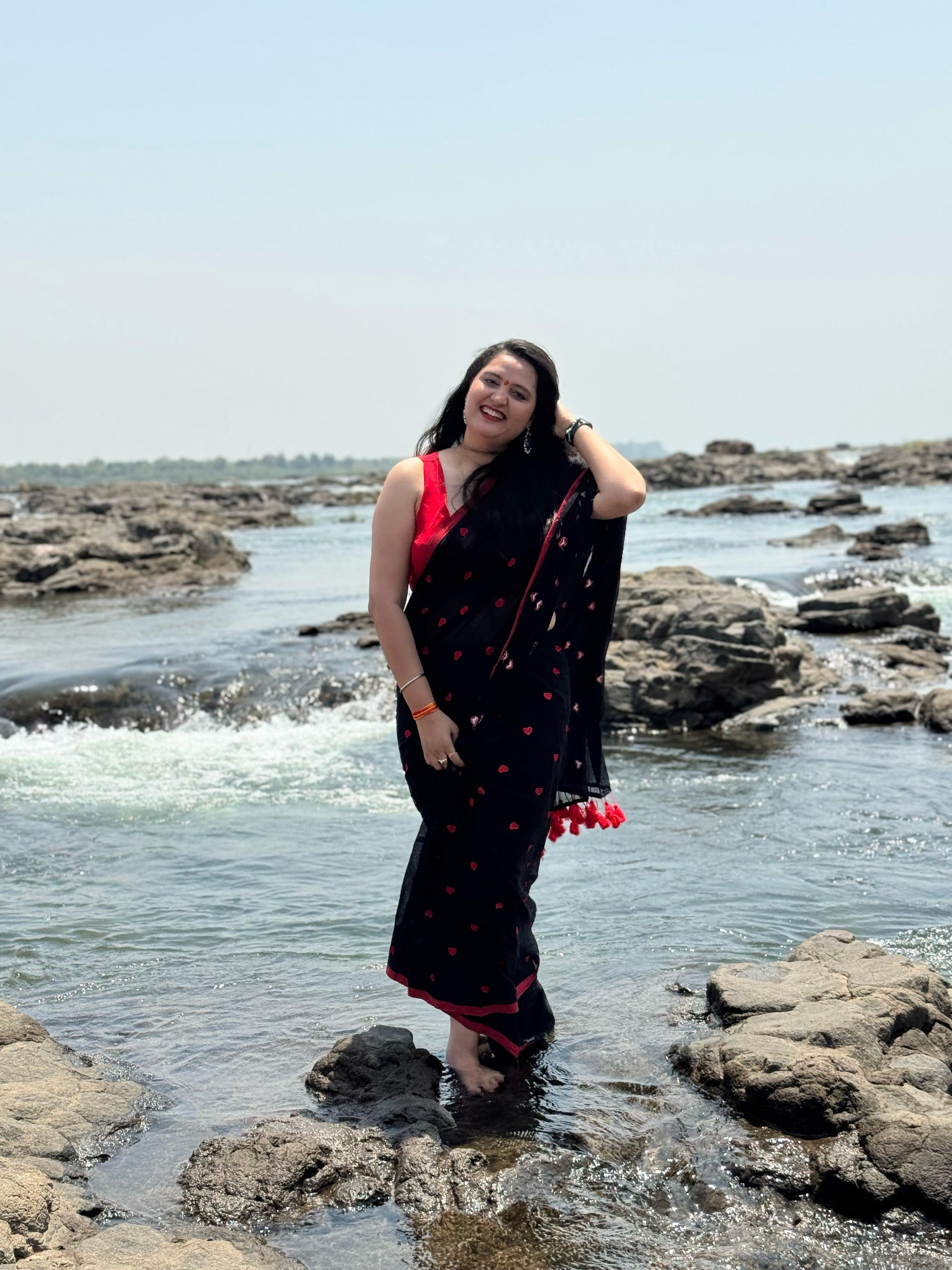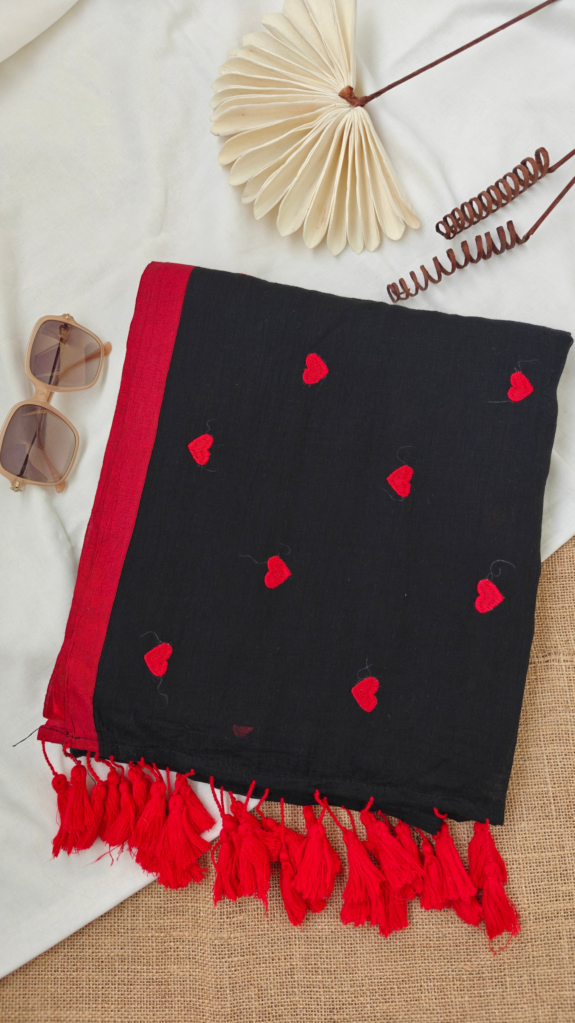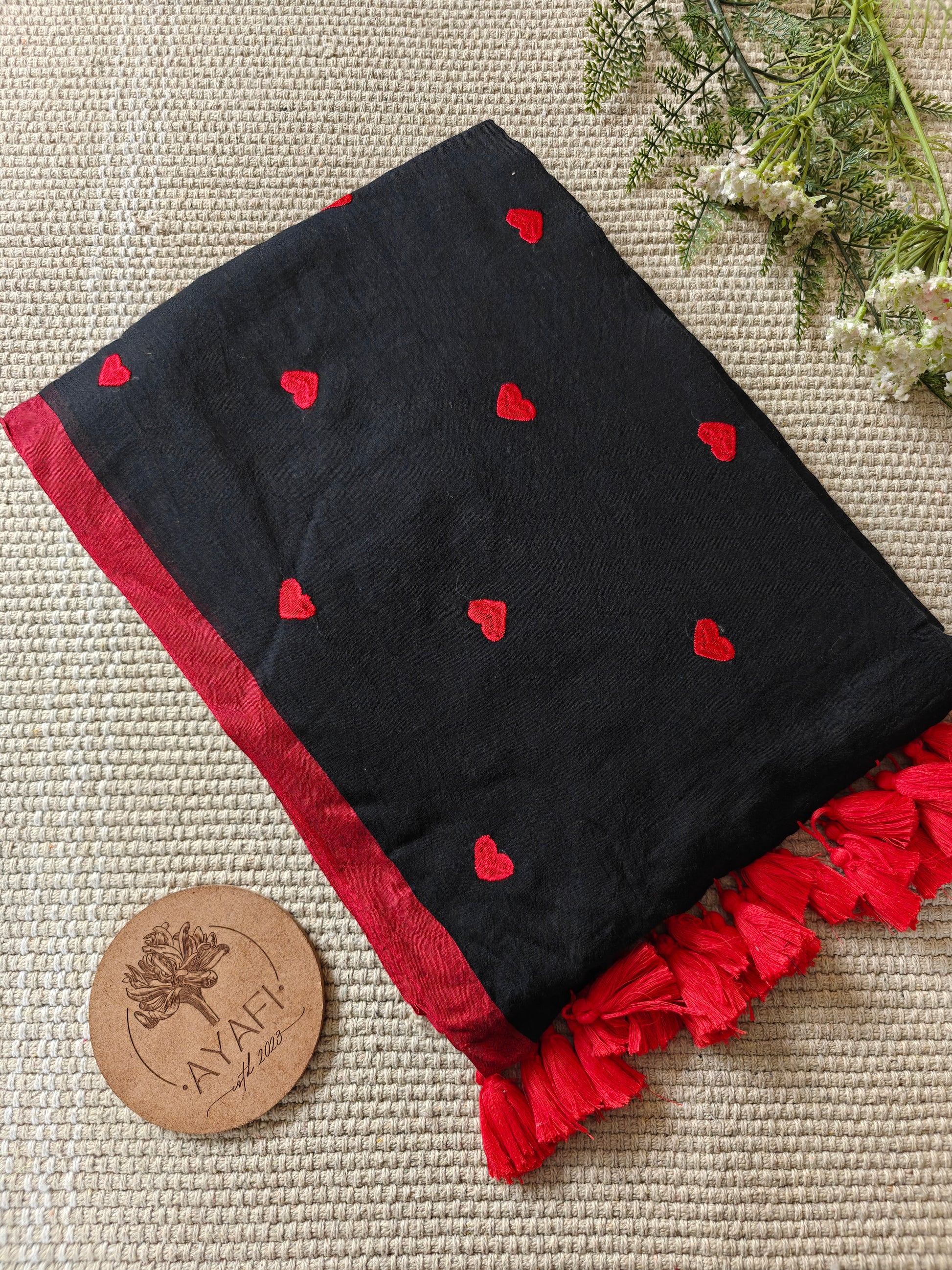 Introducing our exquisite ‘LOVE’ Embroidered Mul Cotton Saree. What sets this saree apart is its intricate embroidery, meticulously woven by the loom to adorn the fabric with beautiful Heart motifs.