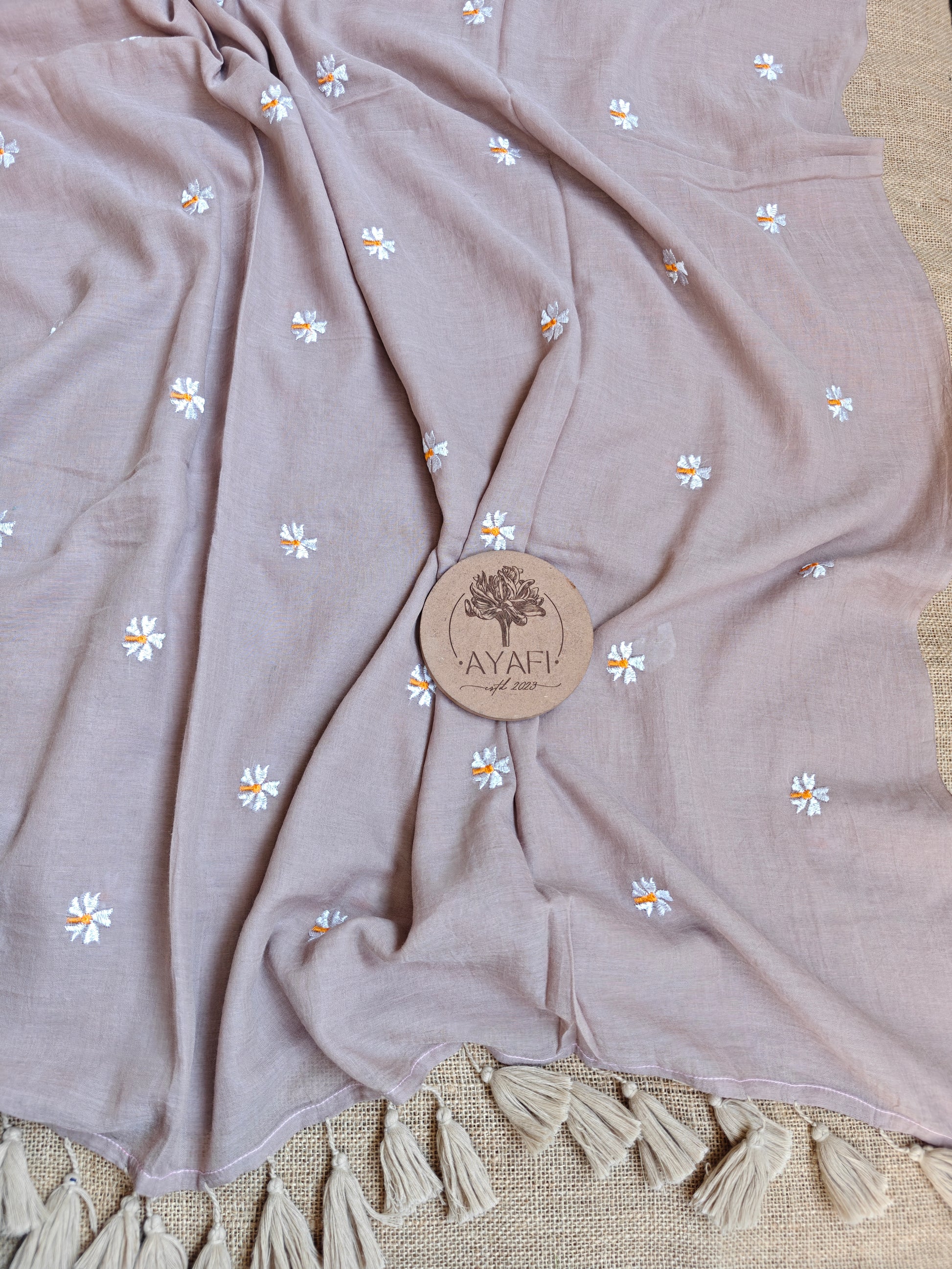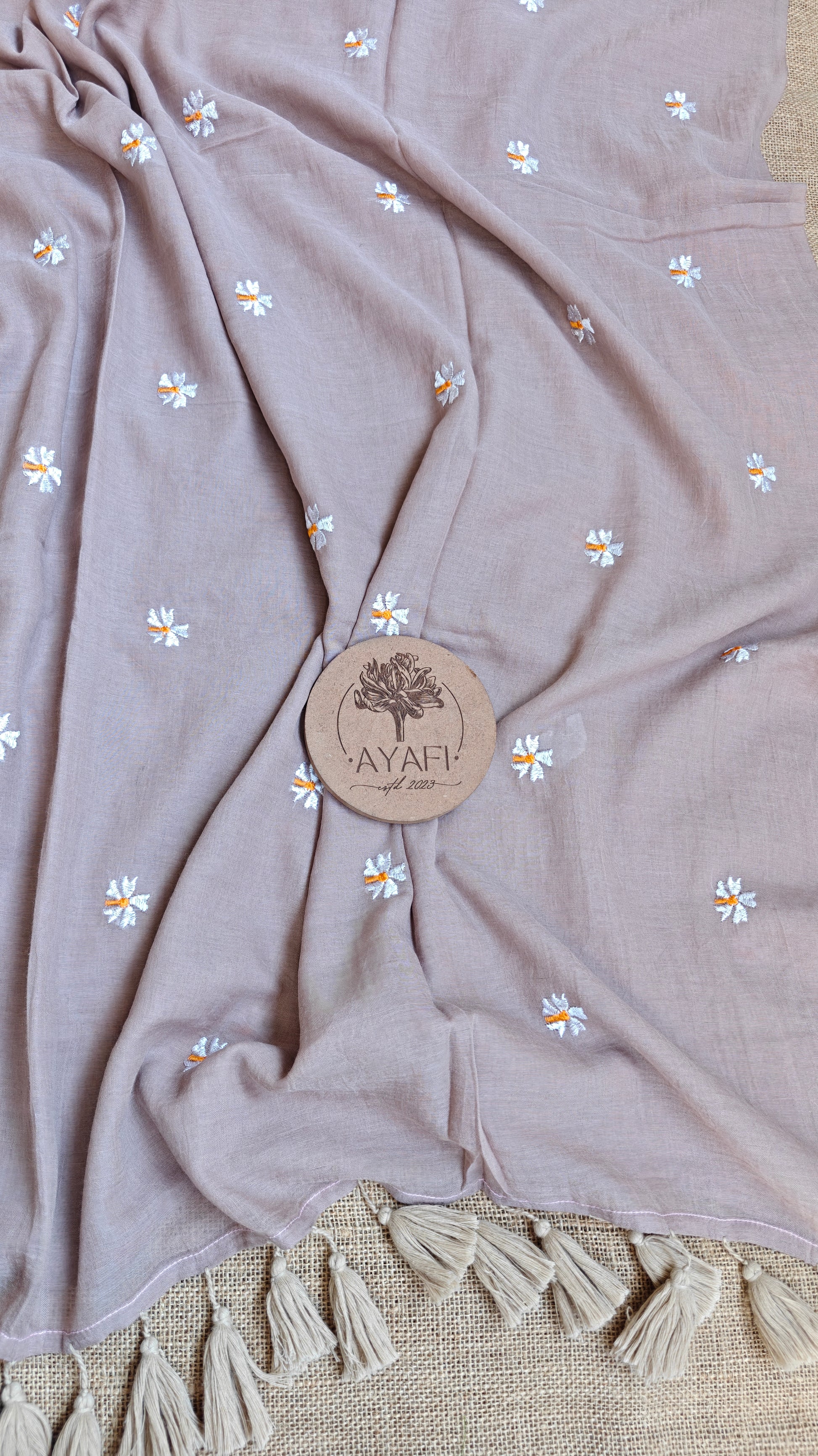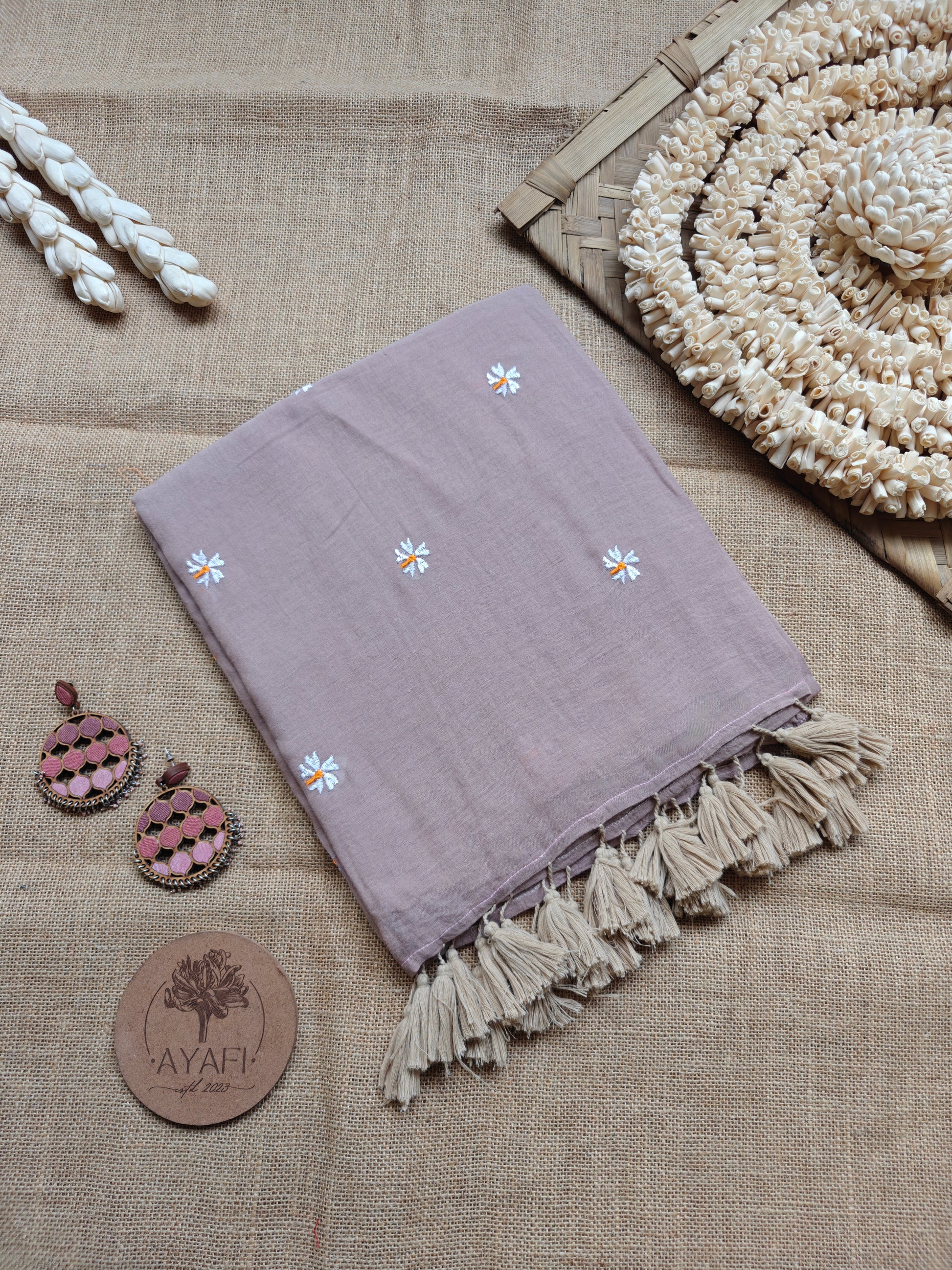 Introducing ‘FLORA’ Embroidered Mul Cotton Saree. What sets this saree apart is its intricate embroidery, meticulously woven by the loom to adorn the pallu and pleats with exquisite floral motifs.