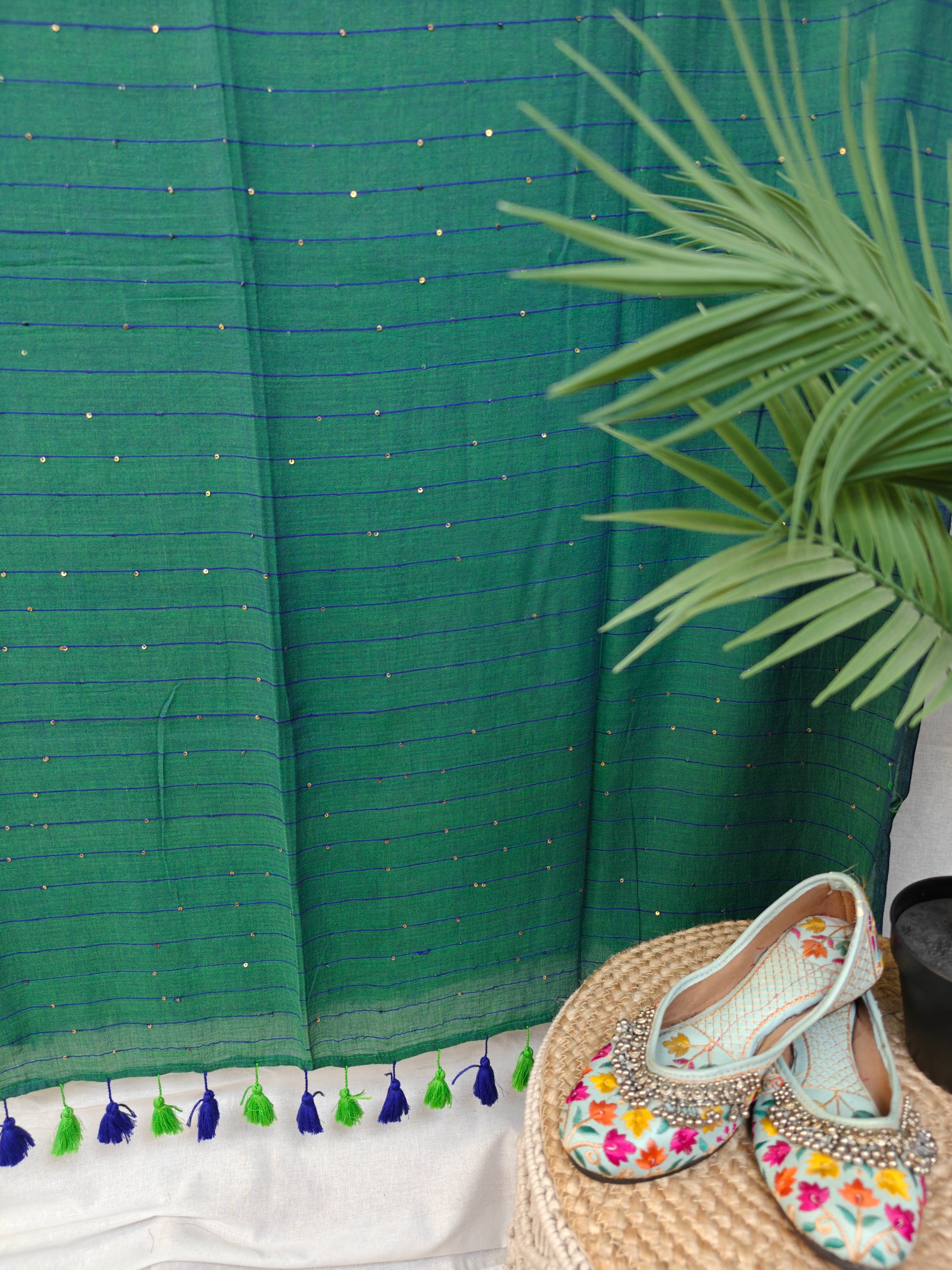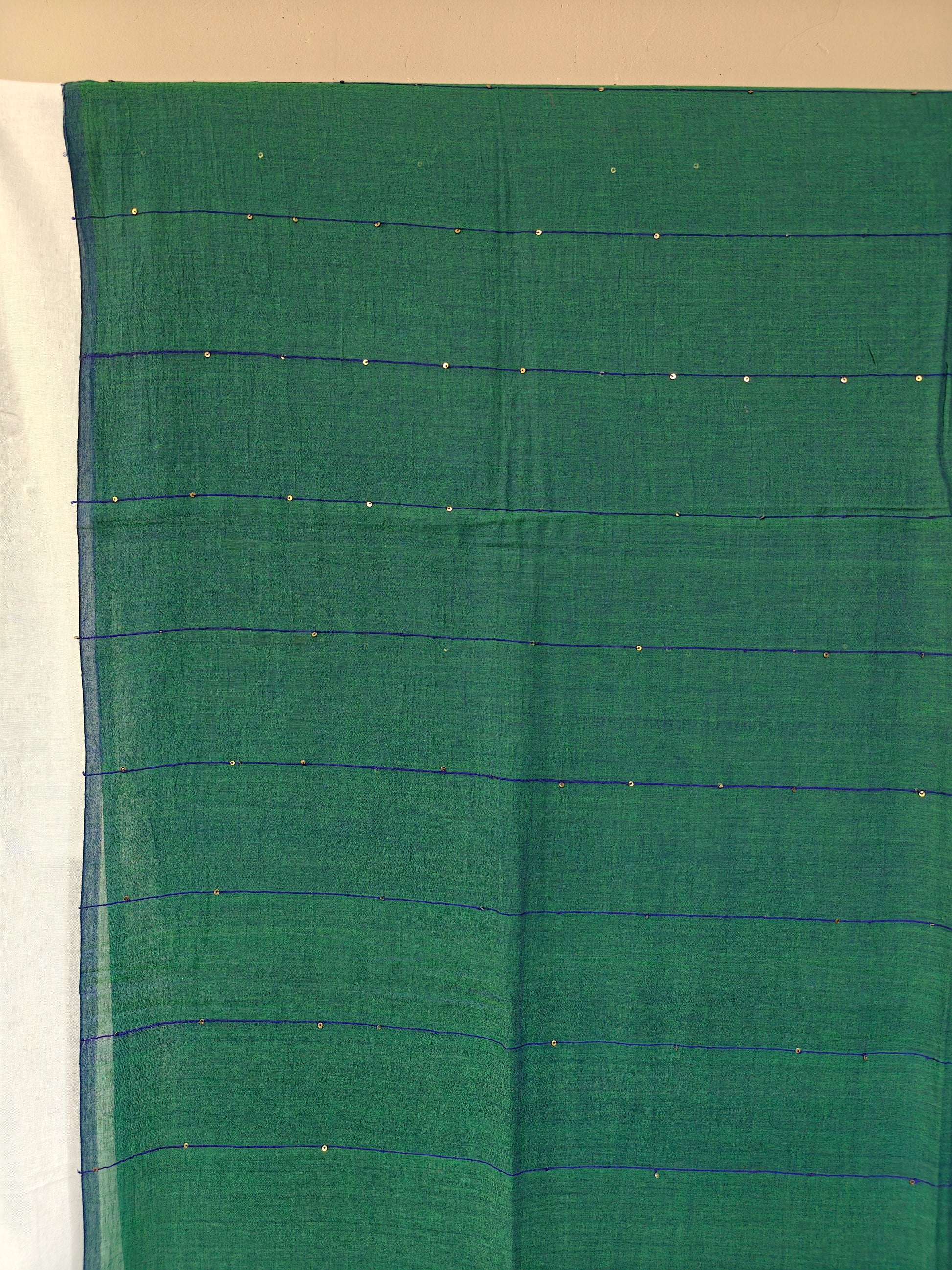 Introducing our stunning Sequin Mul Cotton Saree, a masterpiece of elegance and glamor that effortlessly combines traditional craftsmanship with contemporary flair. The subtle yet dazzling shimmer of the sequins all over the body and pallu complements the understated elegance of the Mul Cotton Fabric.