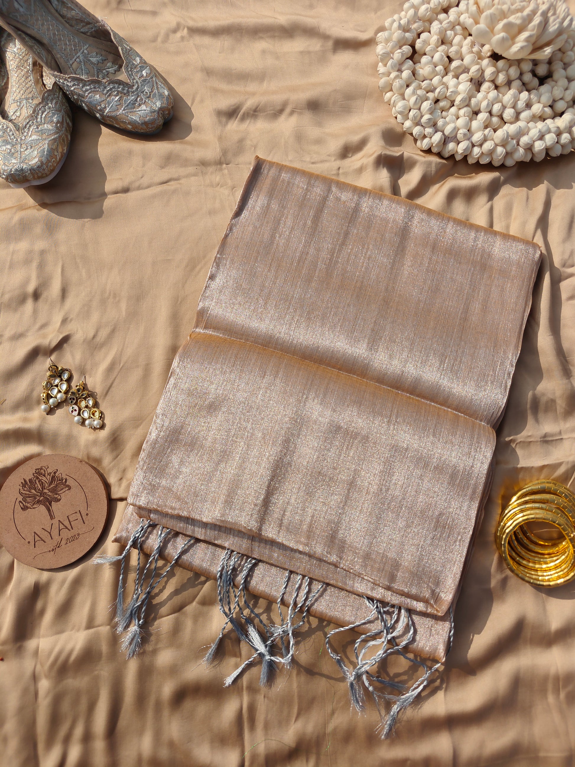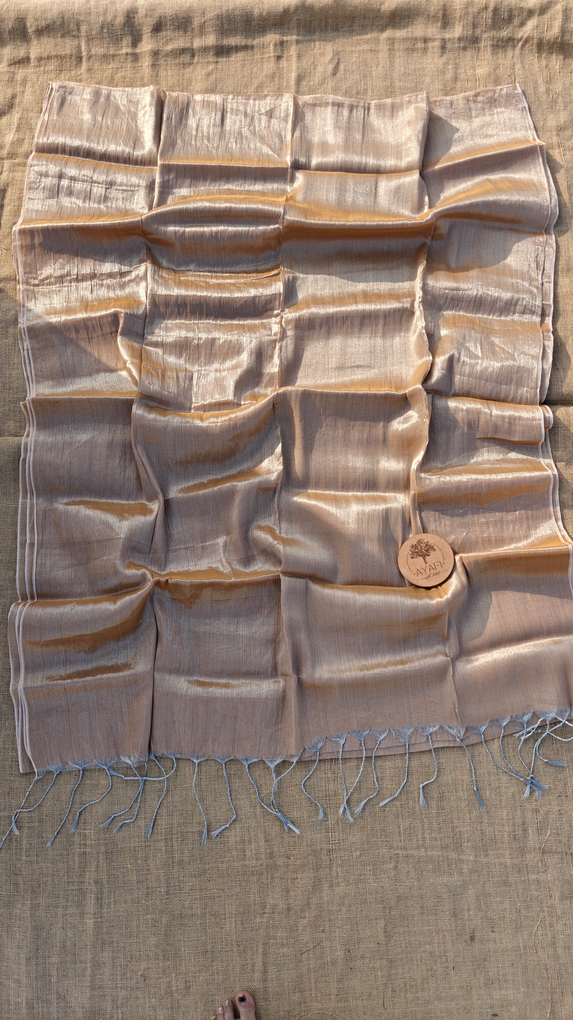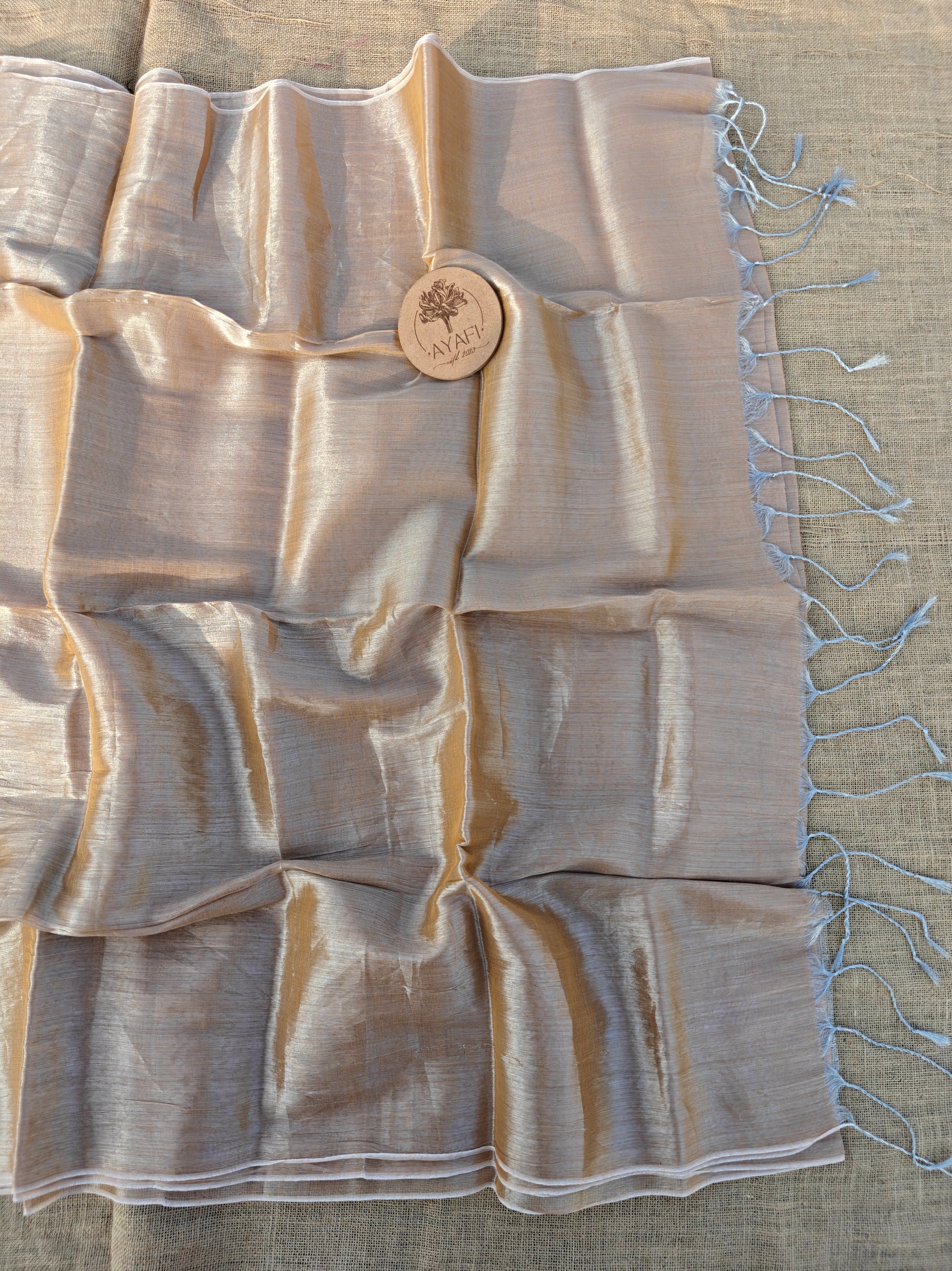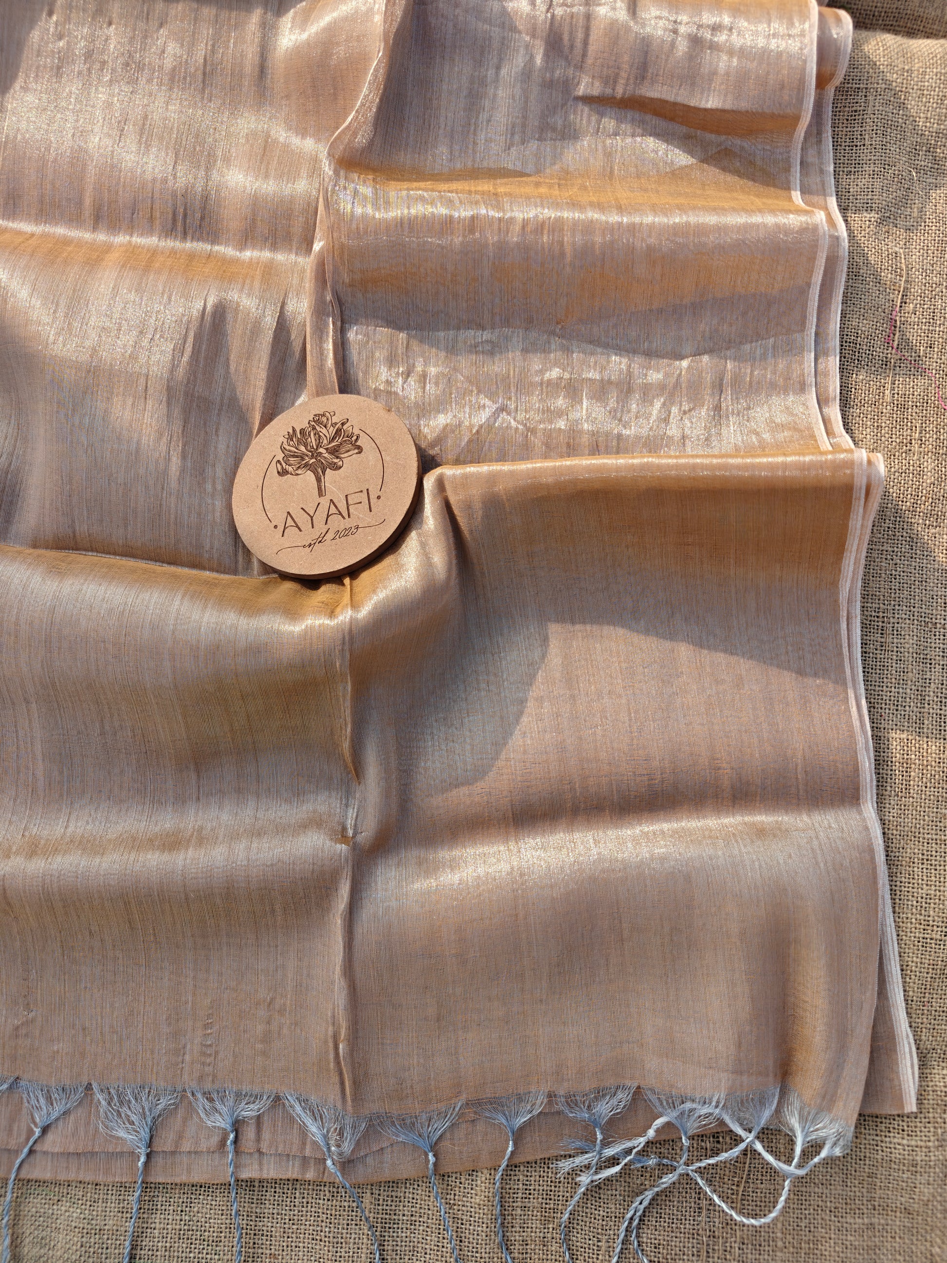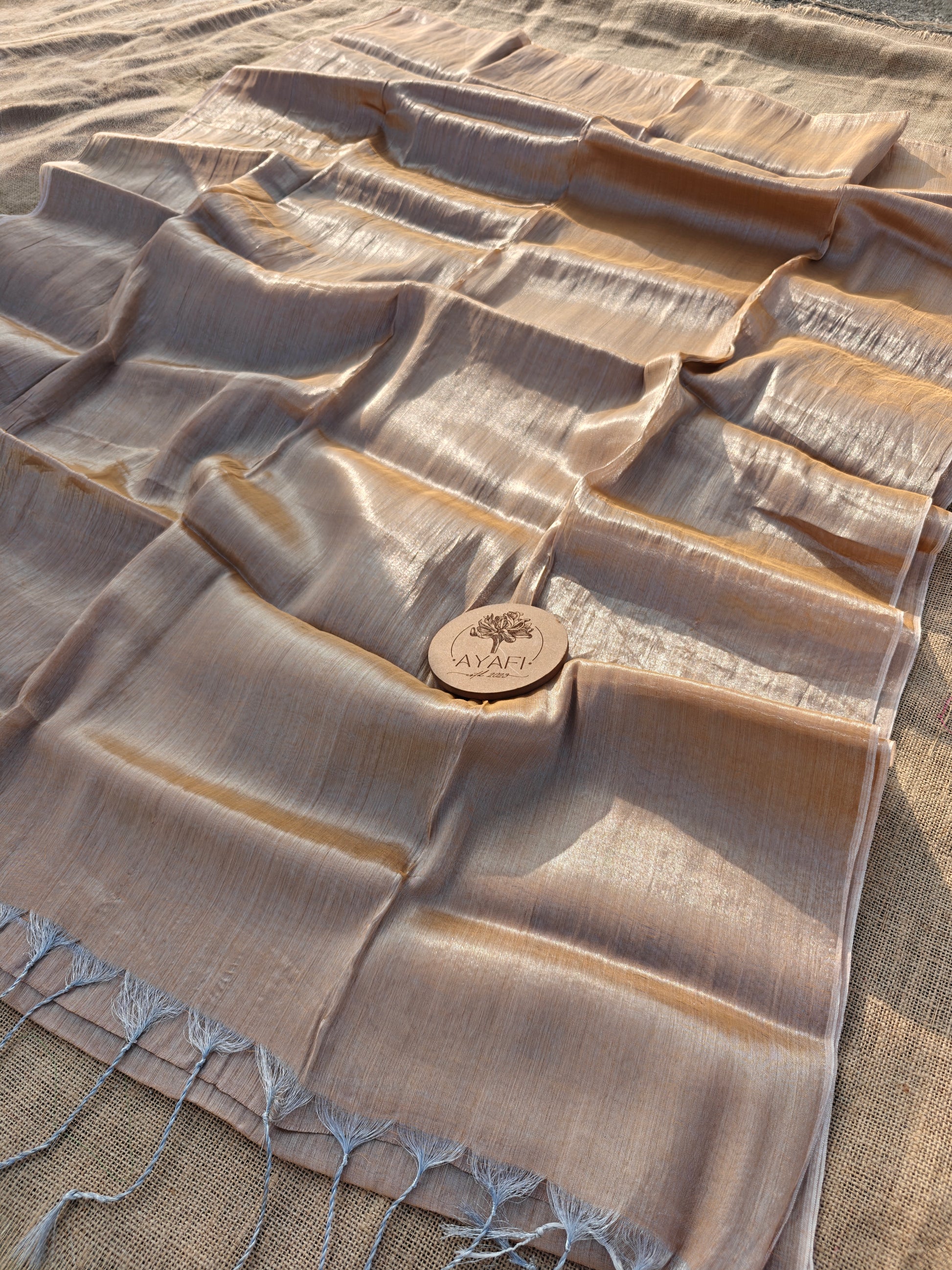 A stunning mul saree with opulent zari interspersed in the weave that brings about a captivating glossy sheen.