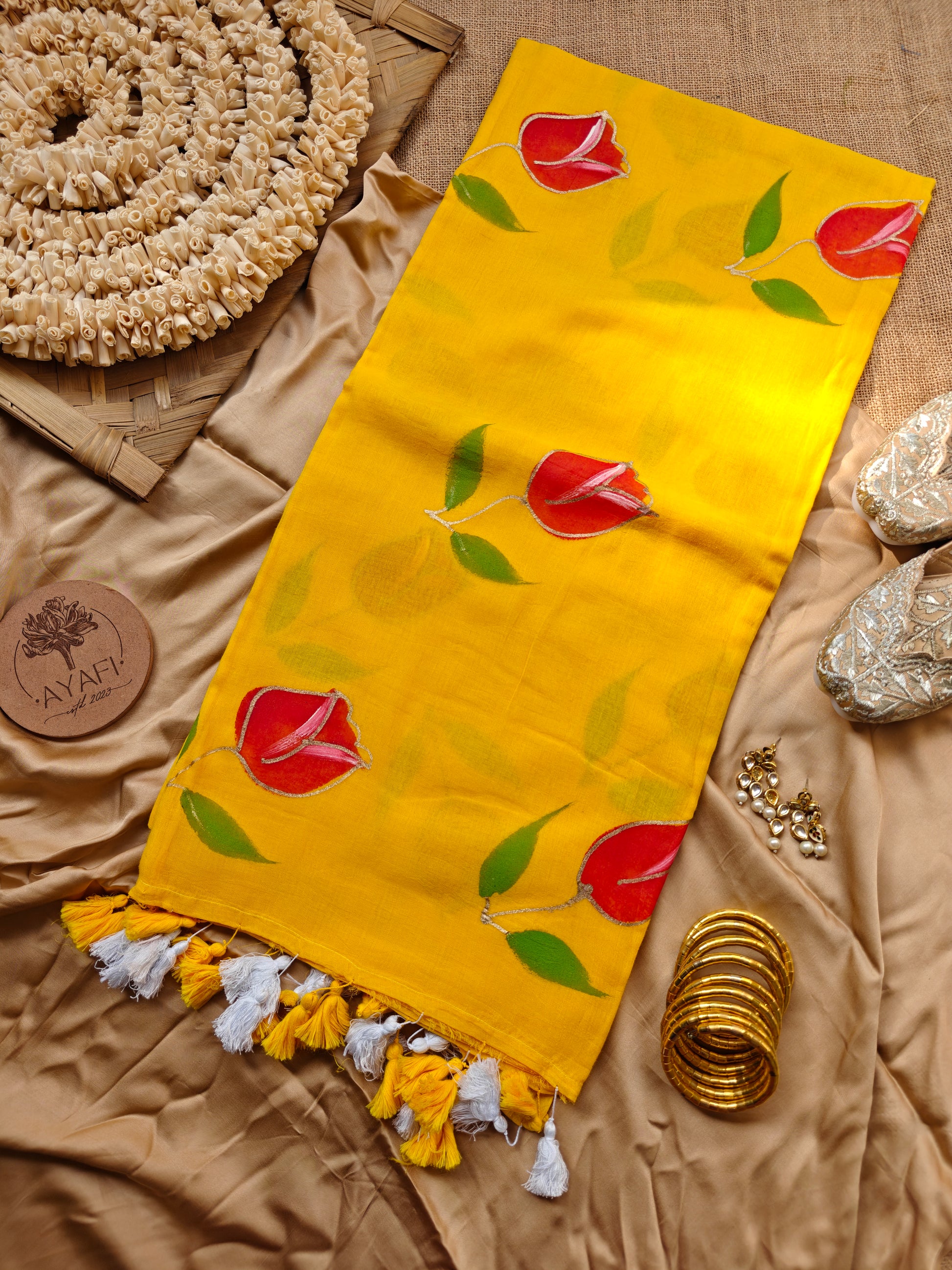 Soft, breathable, and incredibly lightweight, the mul cotton drapes like a dream—perfect for day-to-evening wear. Finished with delicate handmade tassels along the pallu, every detail speaks of slow fashion and one-of-a-kind charm.
