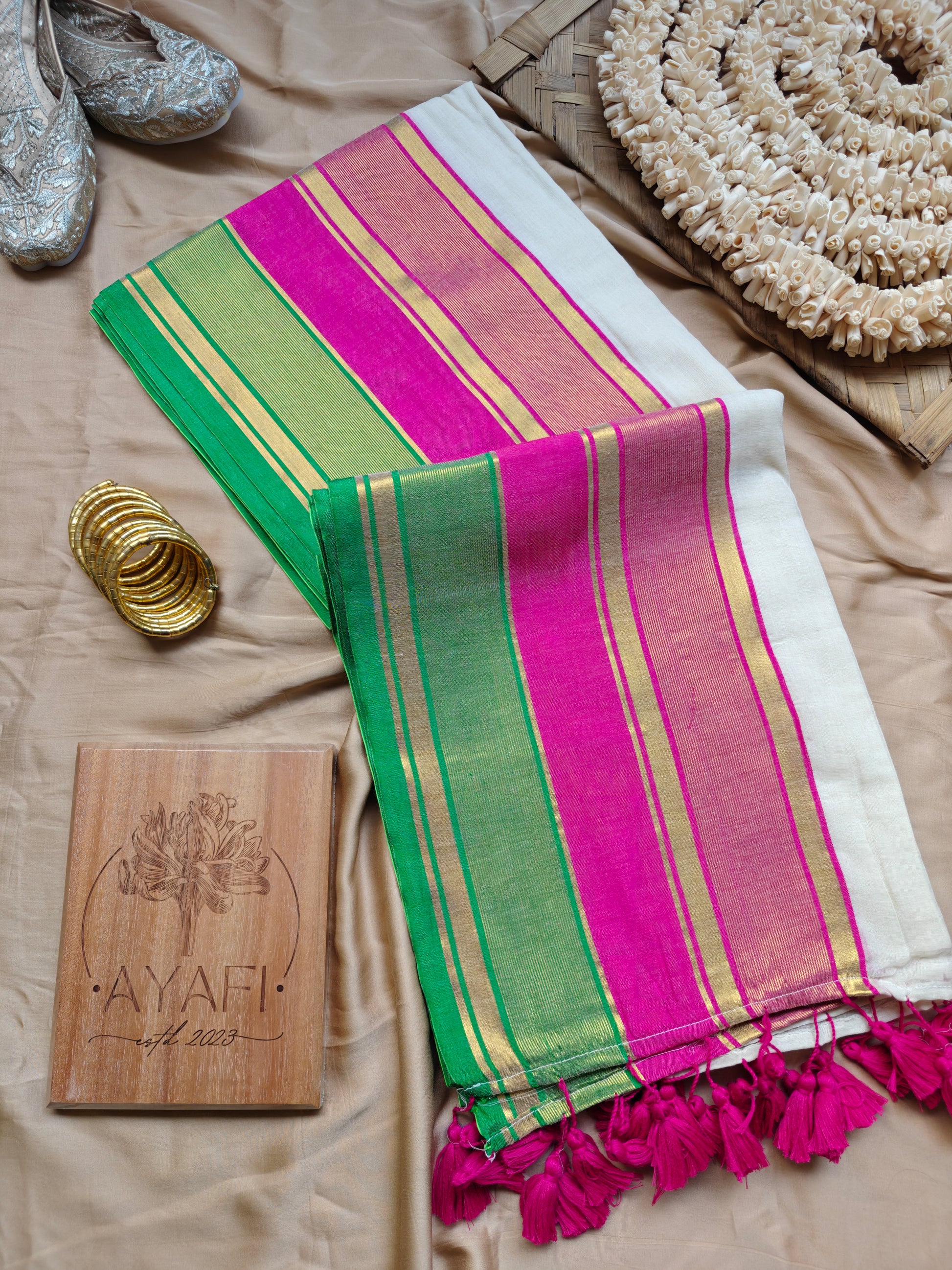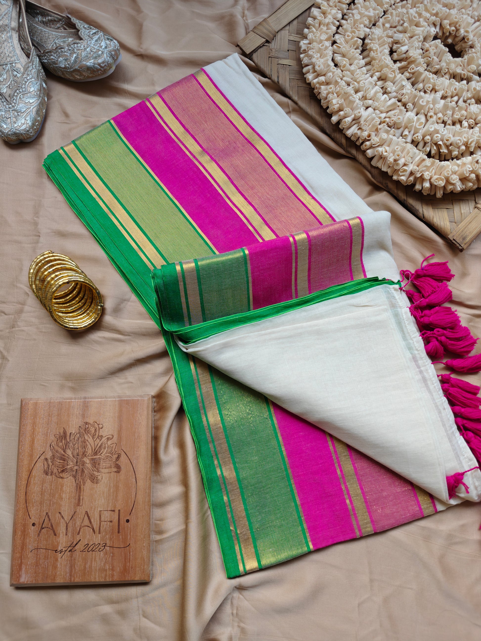 At AYAFI, we curate sarees in smaller, exclusive quantities to ensure each piece feels special, unique, and personal. This allows us to bring you handpicked designs that are not mass-produced — perfect for those who value individuality and artisanal charm.