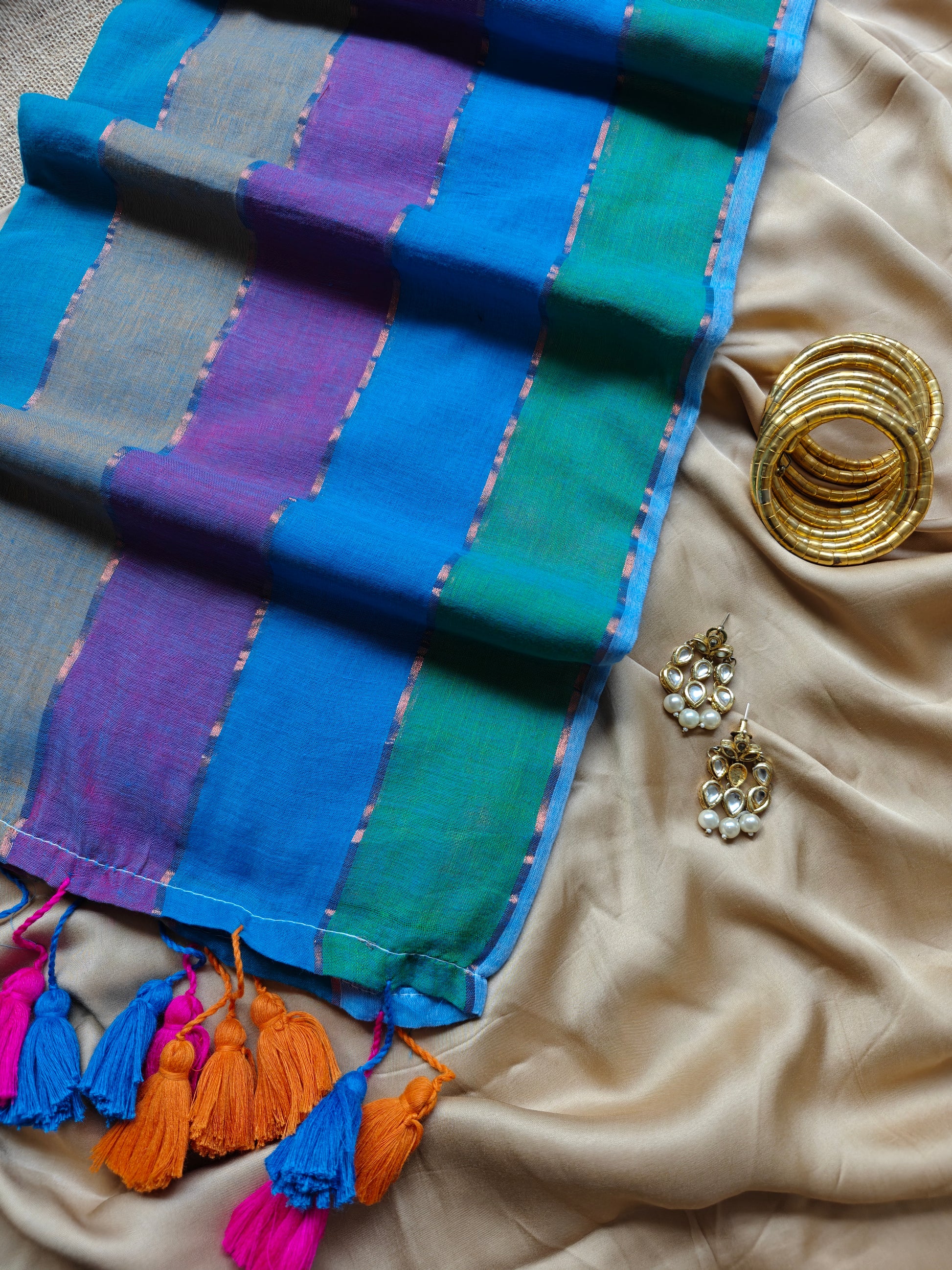 There may be mild inconsistencies in the warp, weft, shade, motif and/or thread pulls owing to the delicate as well as lightweight nature of the sarees and their weaves. These indicators of incidental imperfections aren’t flaws, but marks that make a natural product charming and unique. All items are shot in natural light. We try to capture the color and texture as accurately as possible. What you see is real. However, due to different display methods, the color in the picture may be slightly different from the real thing and so any returns or exchanges will not be accepted on the grounds of a color mismatch.
