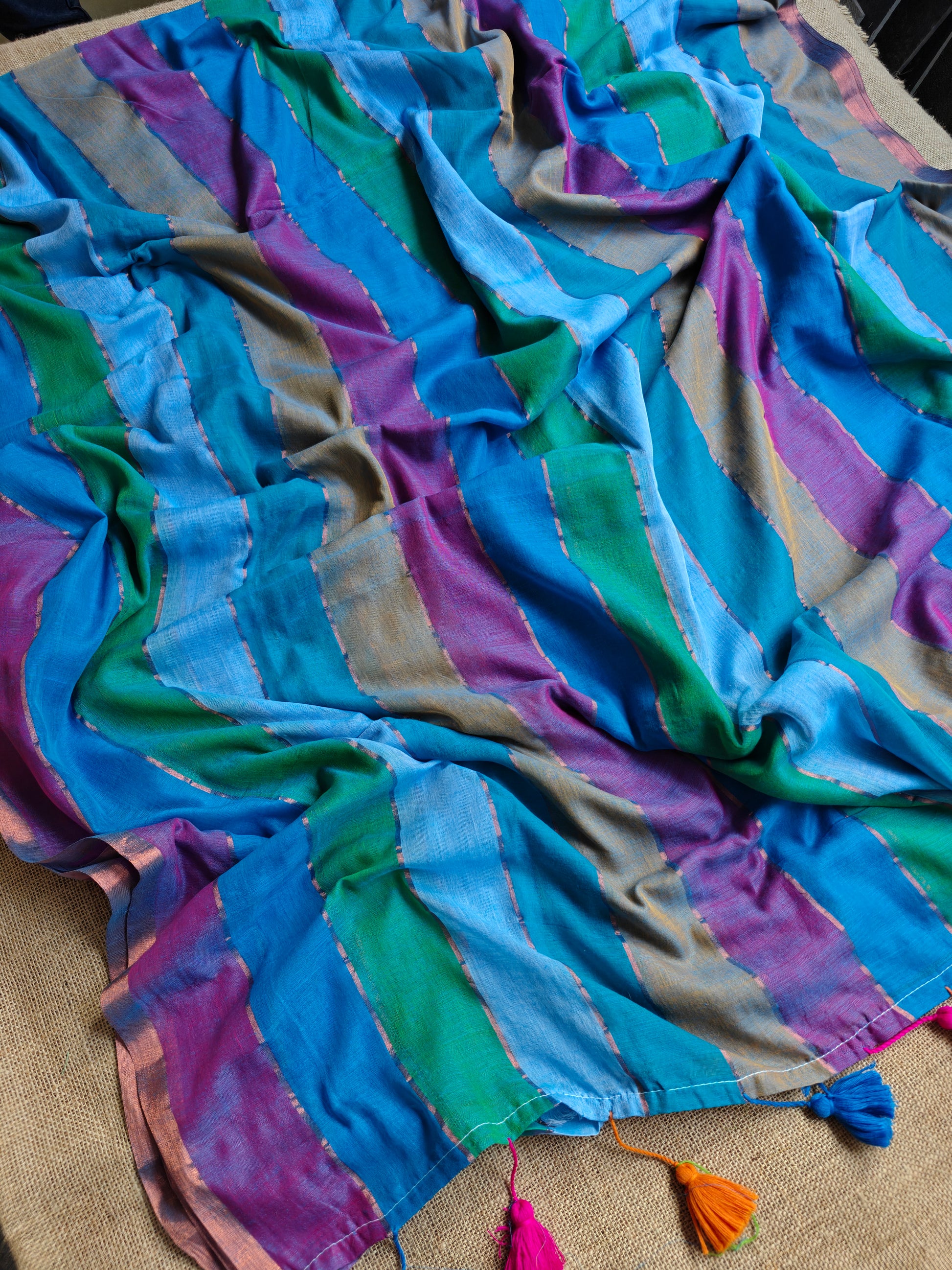 Indulge in timeless elegance with our exquisite Mul Cotton saree adorned with delicate Zari Stripes. Crafted with the utmost care and attention to detail. Made from luxurious mul cotton fabric, renowned for its lightweight and breathable nature, this saree drapes beautifully, ensuring both comfort and grace.