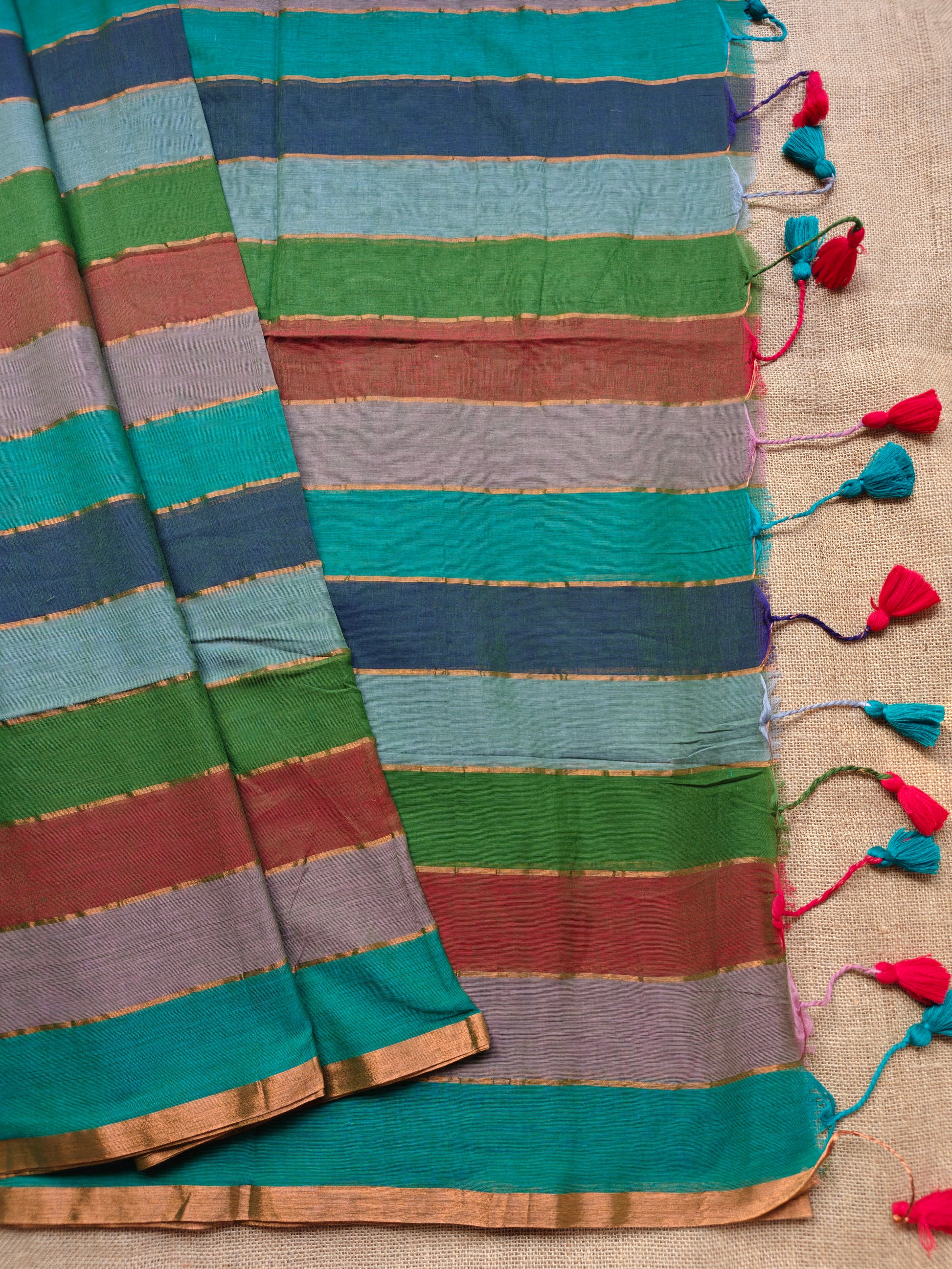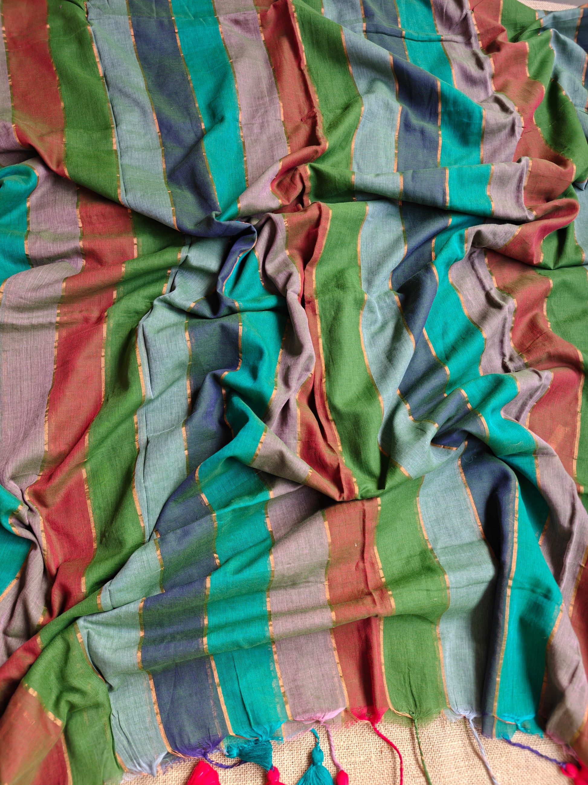 Indulge in timeless elegance with our exquisite Mul Cotton saree adorned with delicate Zari Stripes. Crafted with the utmost care and attention to detail. Made from luxurious mul cotton fabric, renowned for its lightweight and breathable nature, this saree drapes beautifully, ensuring both comfort and grace.