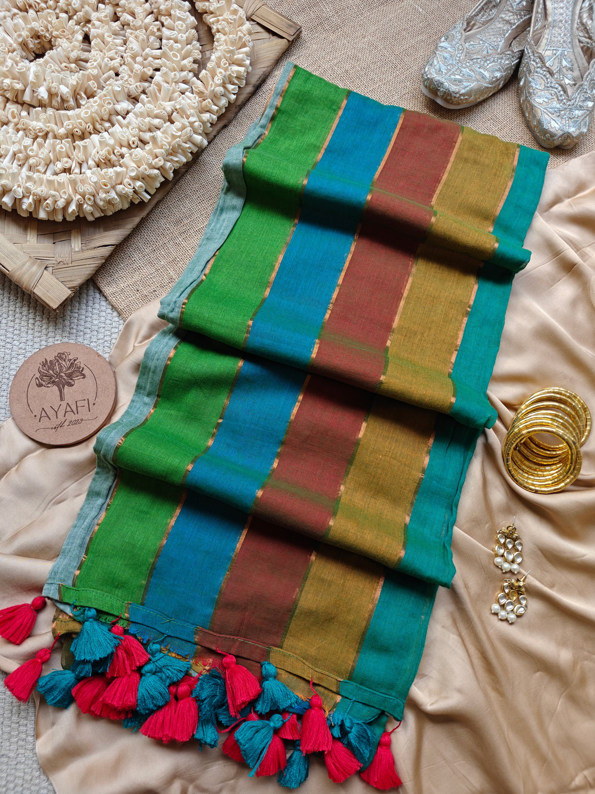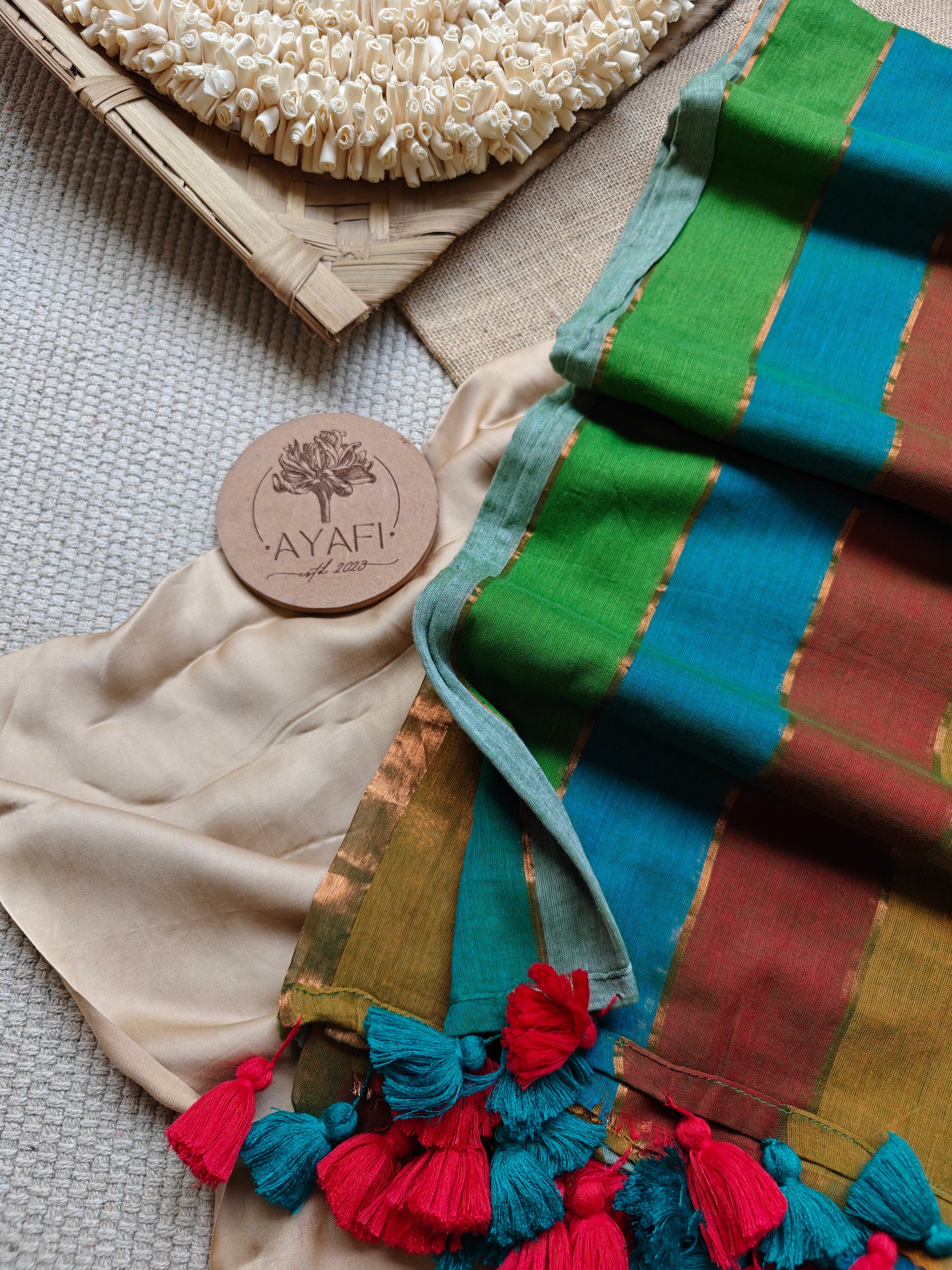 At AYAFI, we curate sarees in smaller, exclusive quantities to ensure each piece feels special, unique, and personal. This allows us to bring you handpicked designs that are not mass-produced — perfect for those who value individuality and artisanal charm.