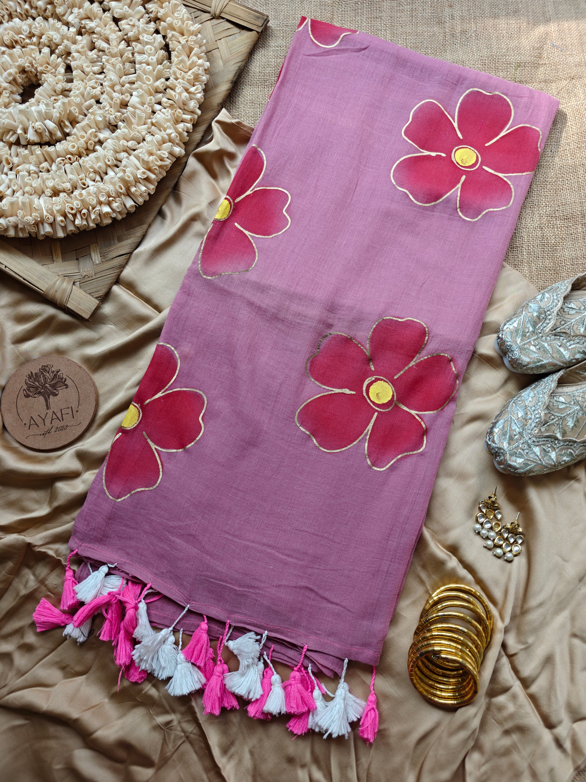 Soft, breathable, and incredibly lightweight, the mul cotton drapes like a dream—perfect for day-to-evening wear. Finished with delicate handmade tassels along the pallu, every detail speaks of slow fashion and one-of-a-kind charm.
