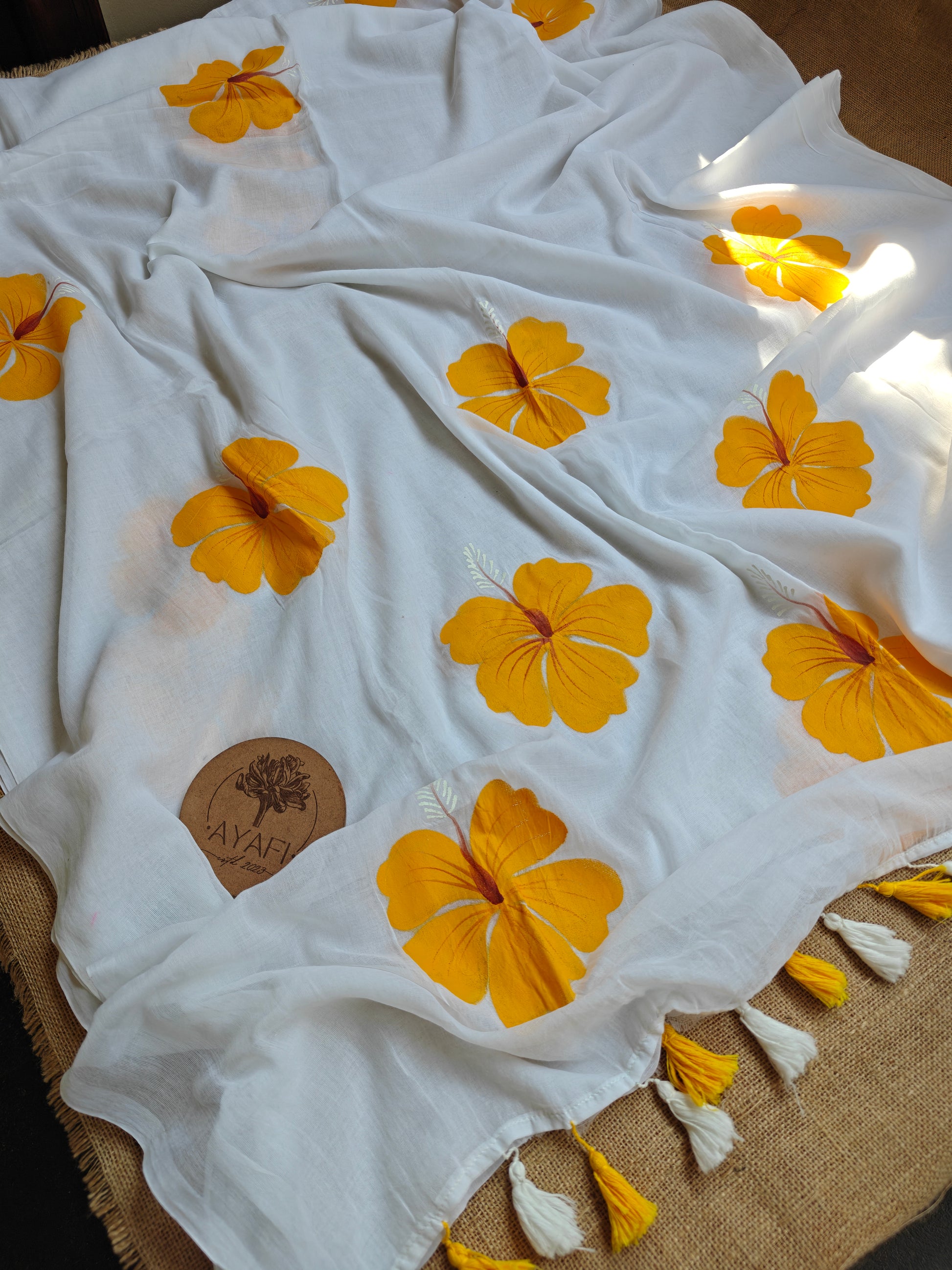 Yellow Hibiscus Hand-Painted Saree