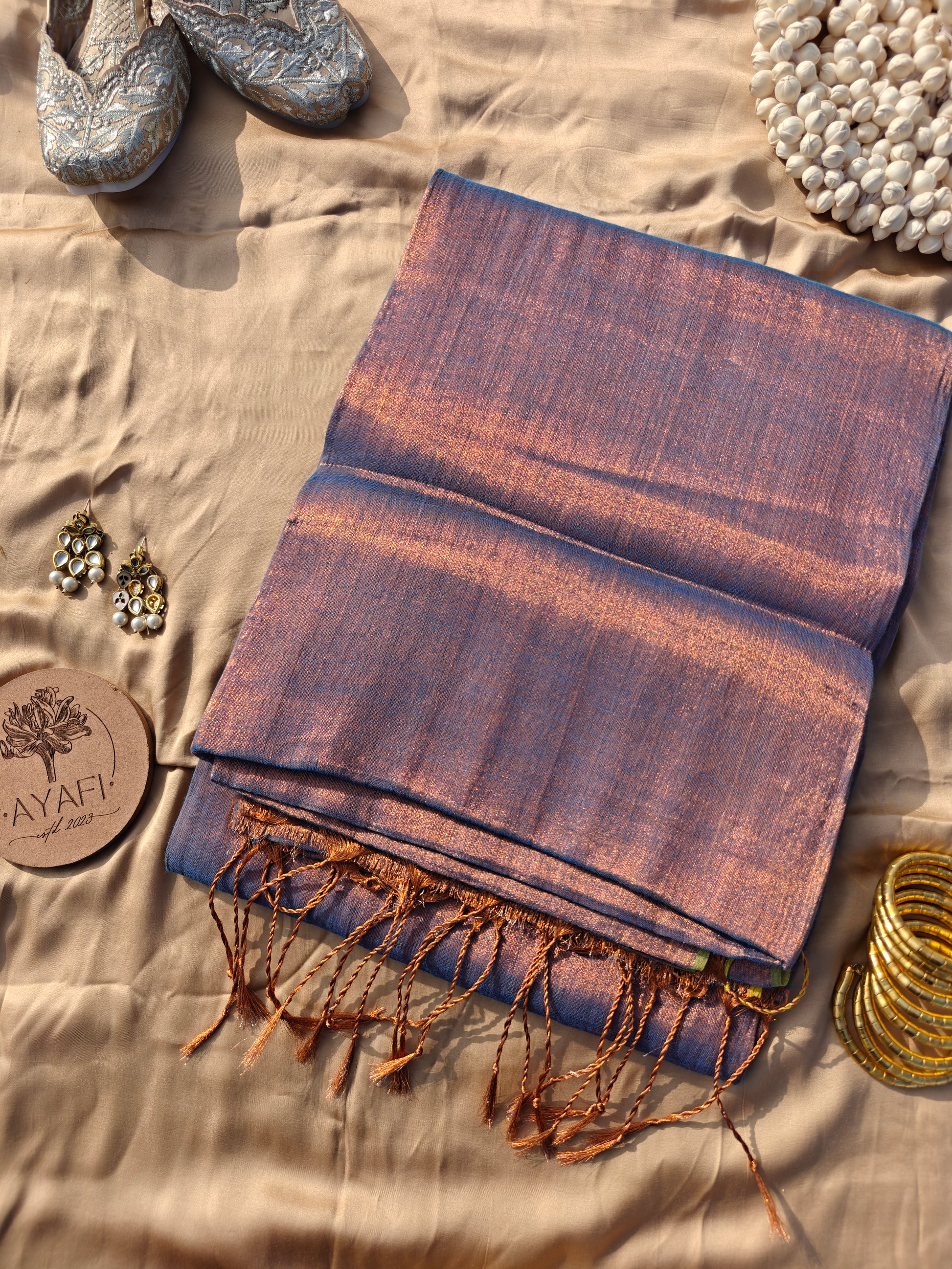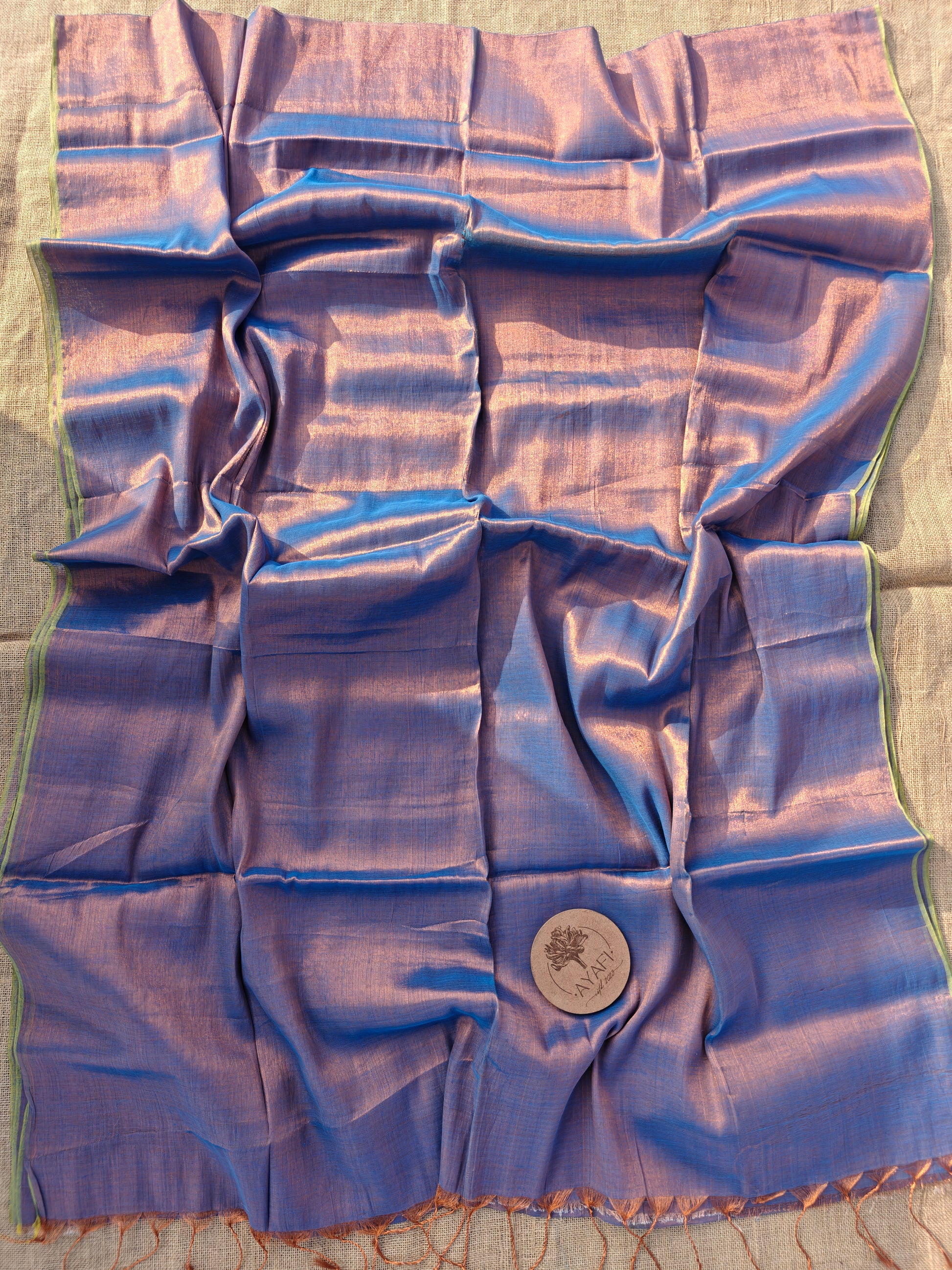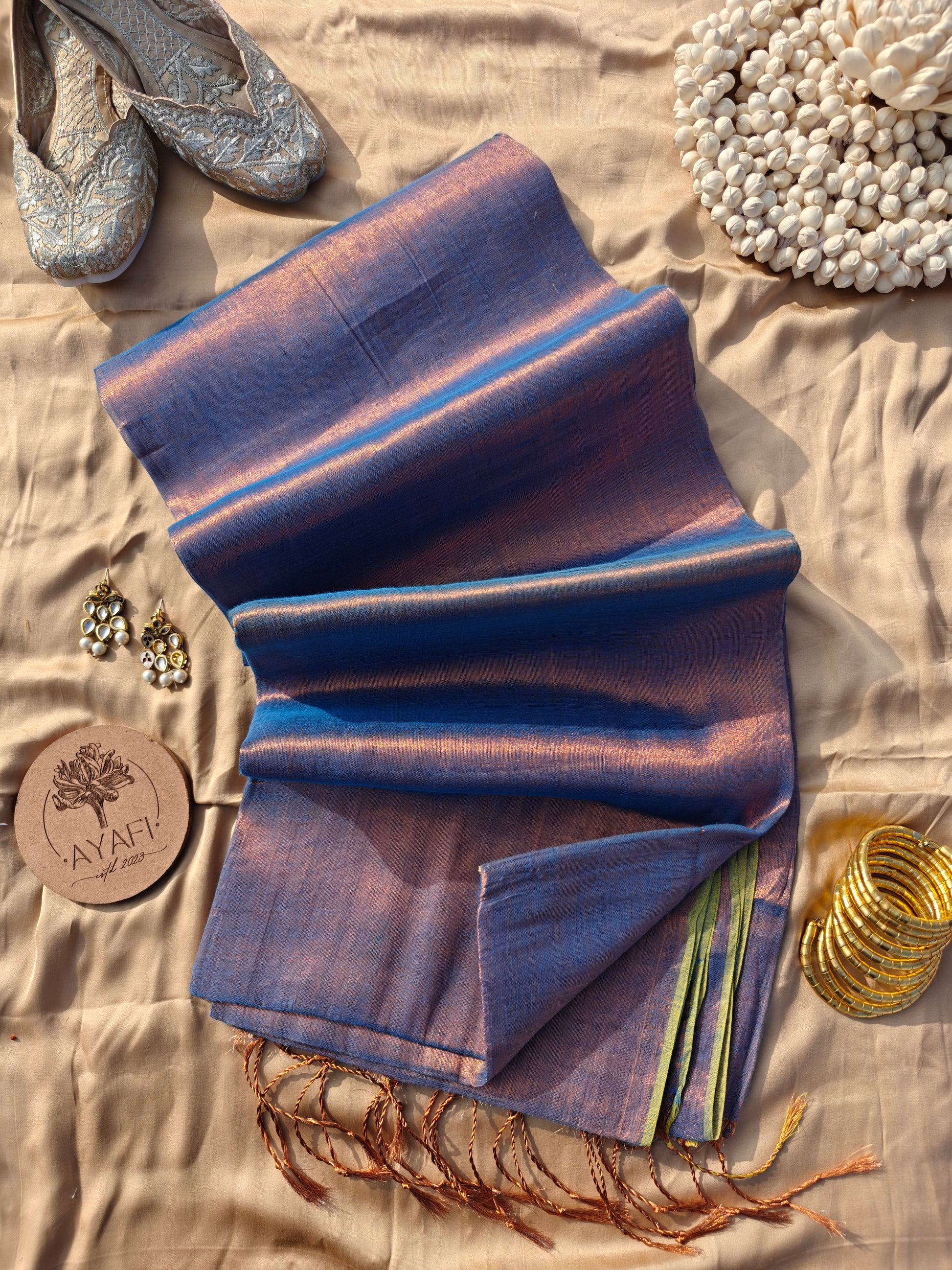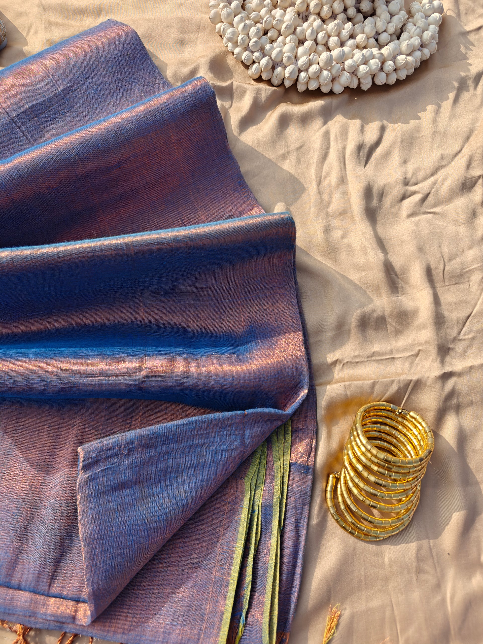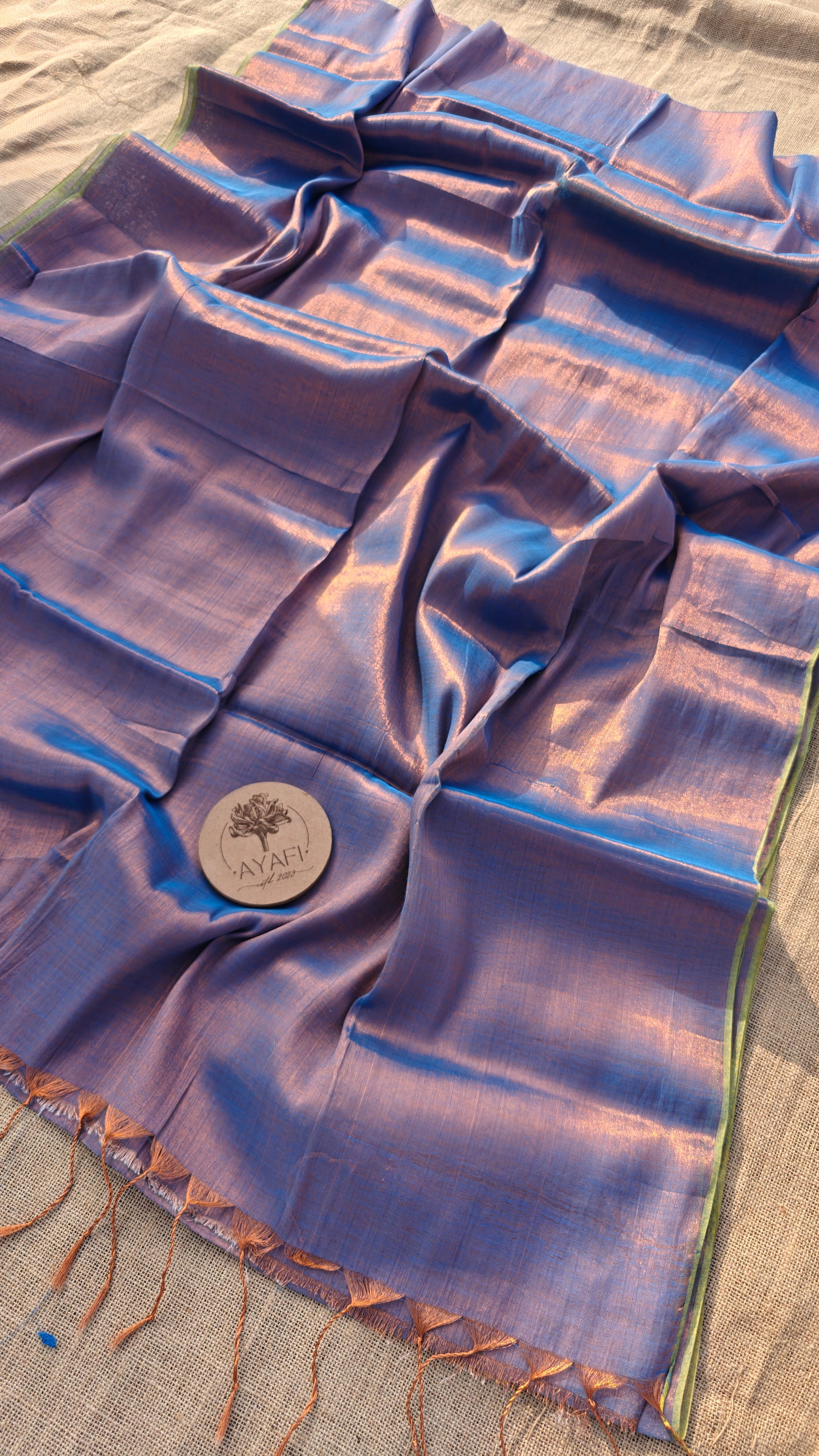 A stunning mul saree with opulent zari interspersed in the weave that brings about a captivating glossy sheen.