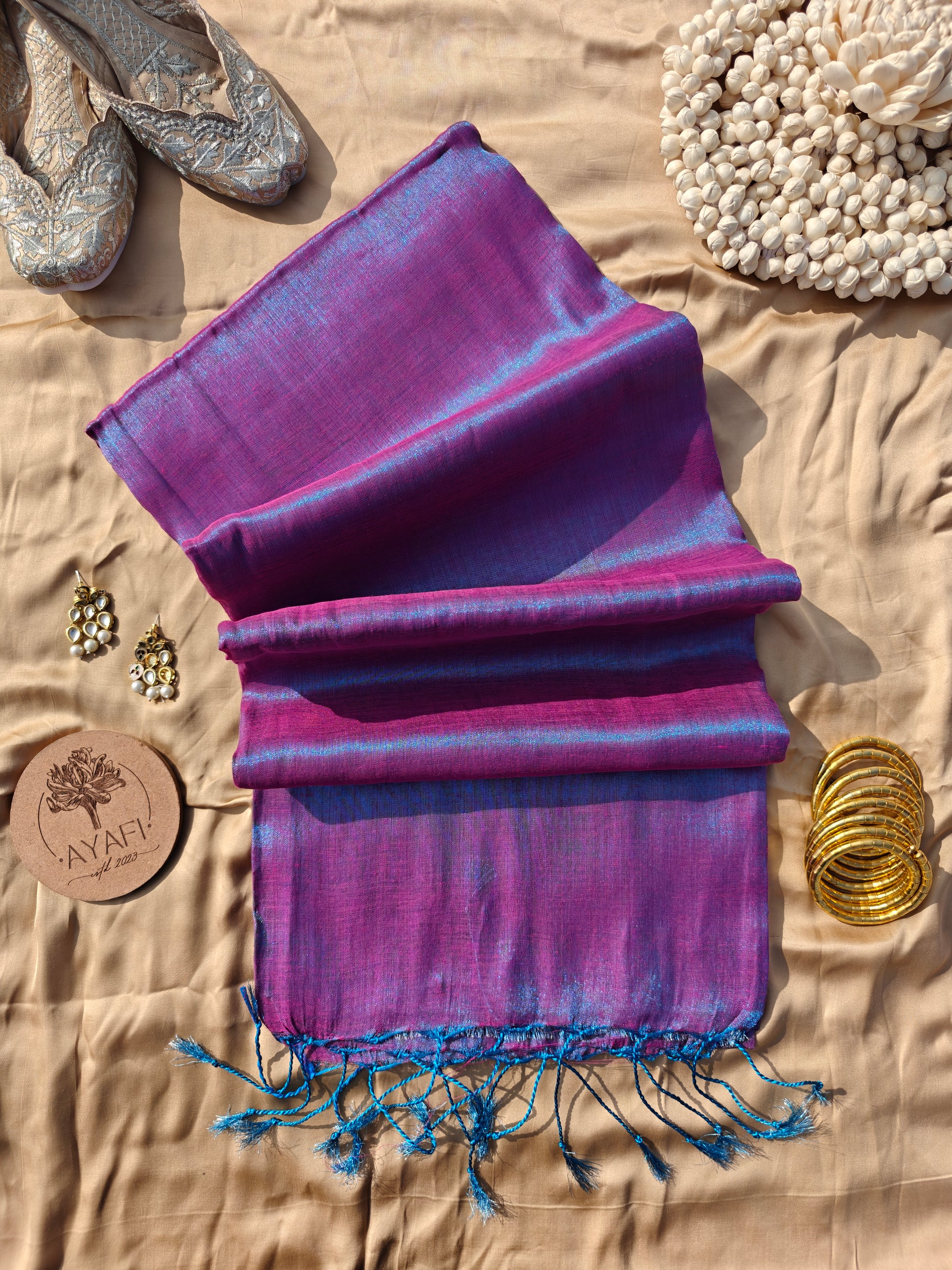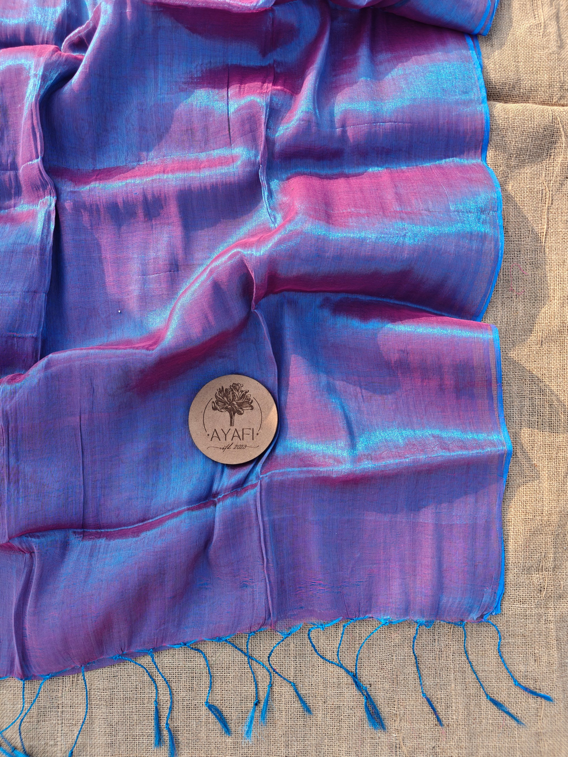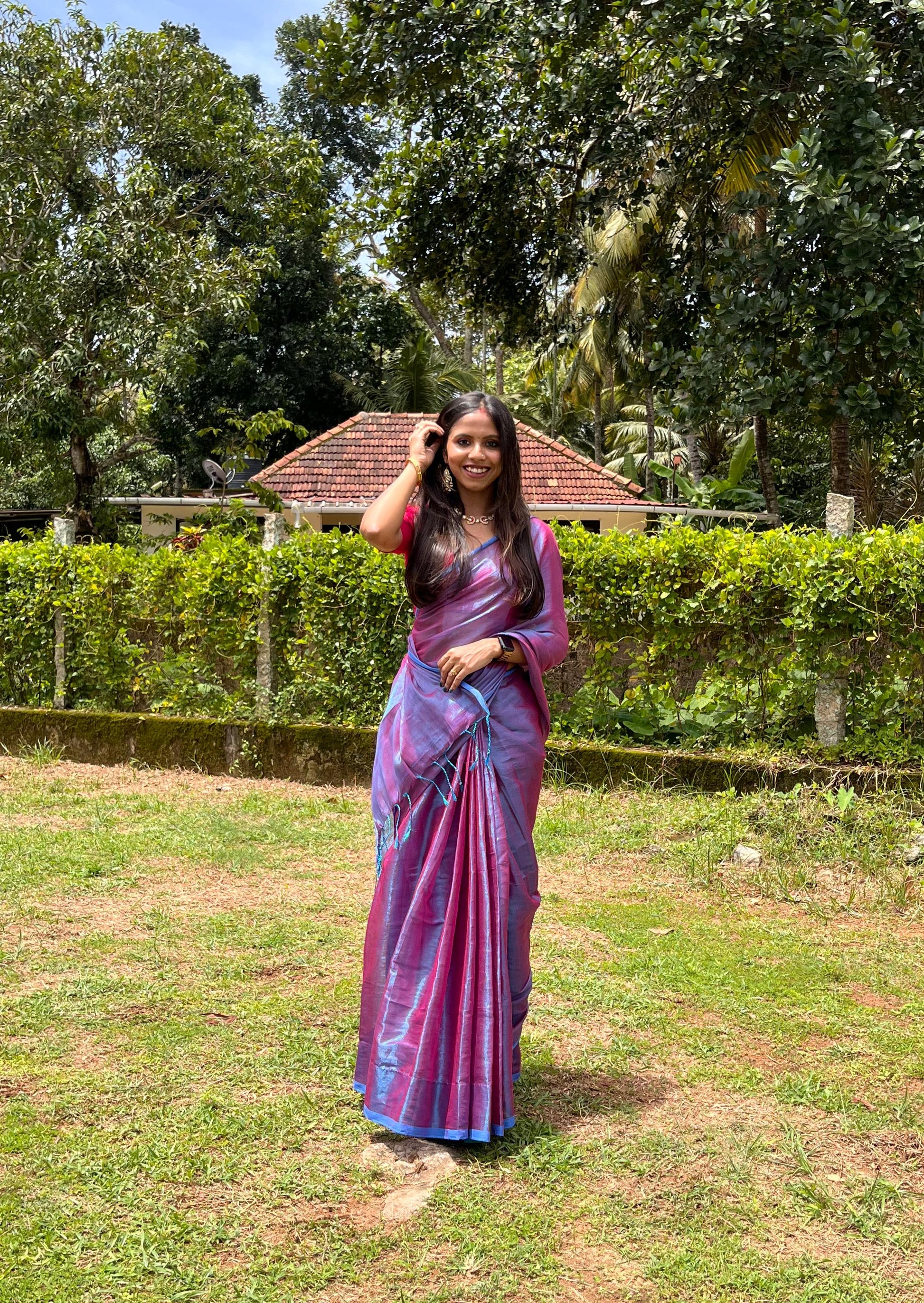 A stunning mul saree with opulent zari interspersed in the weave that brings about a captivating glossy sheen.