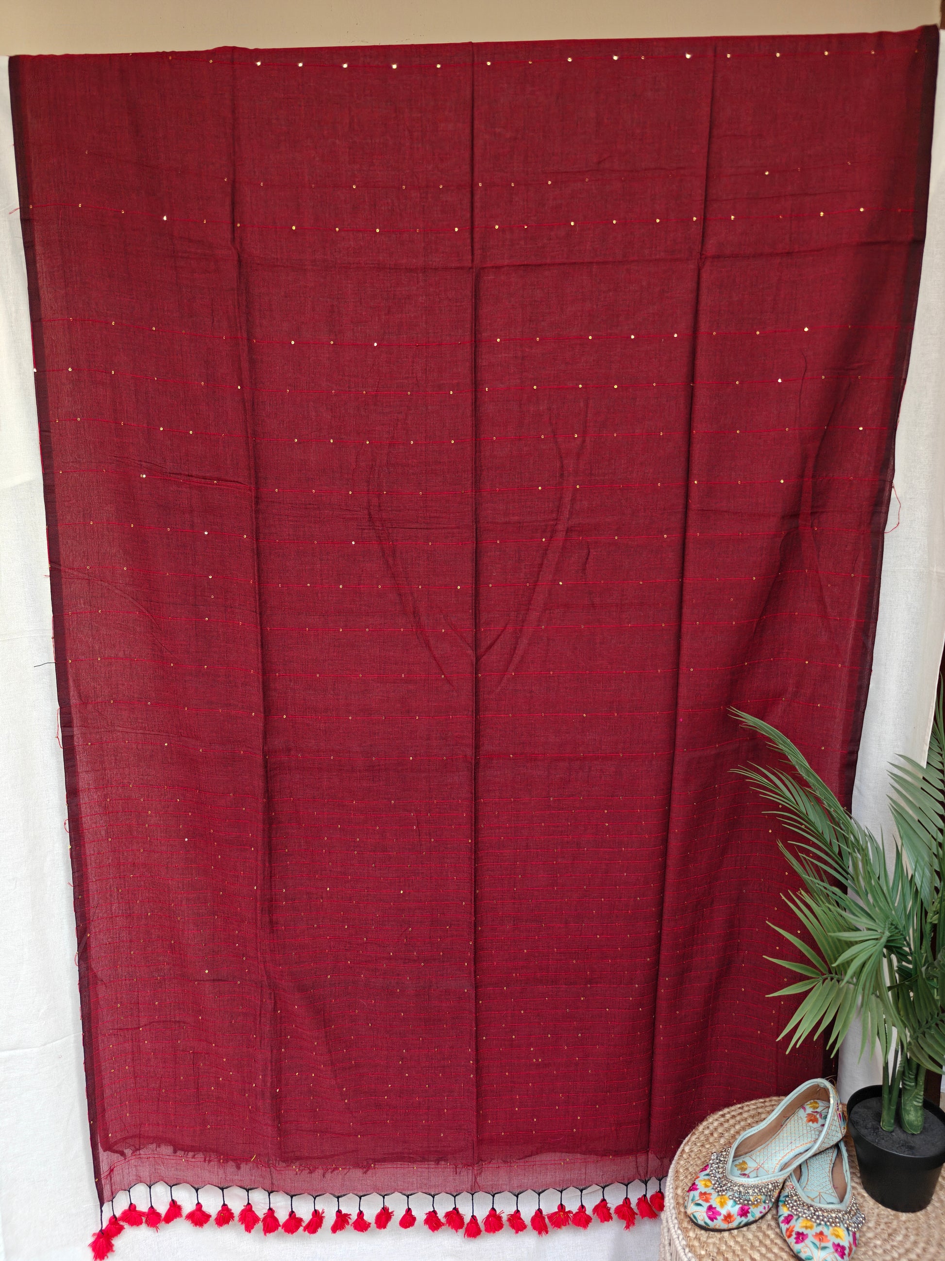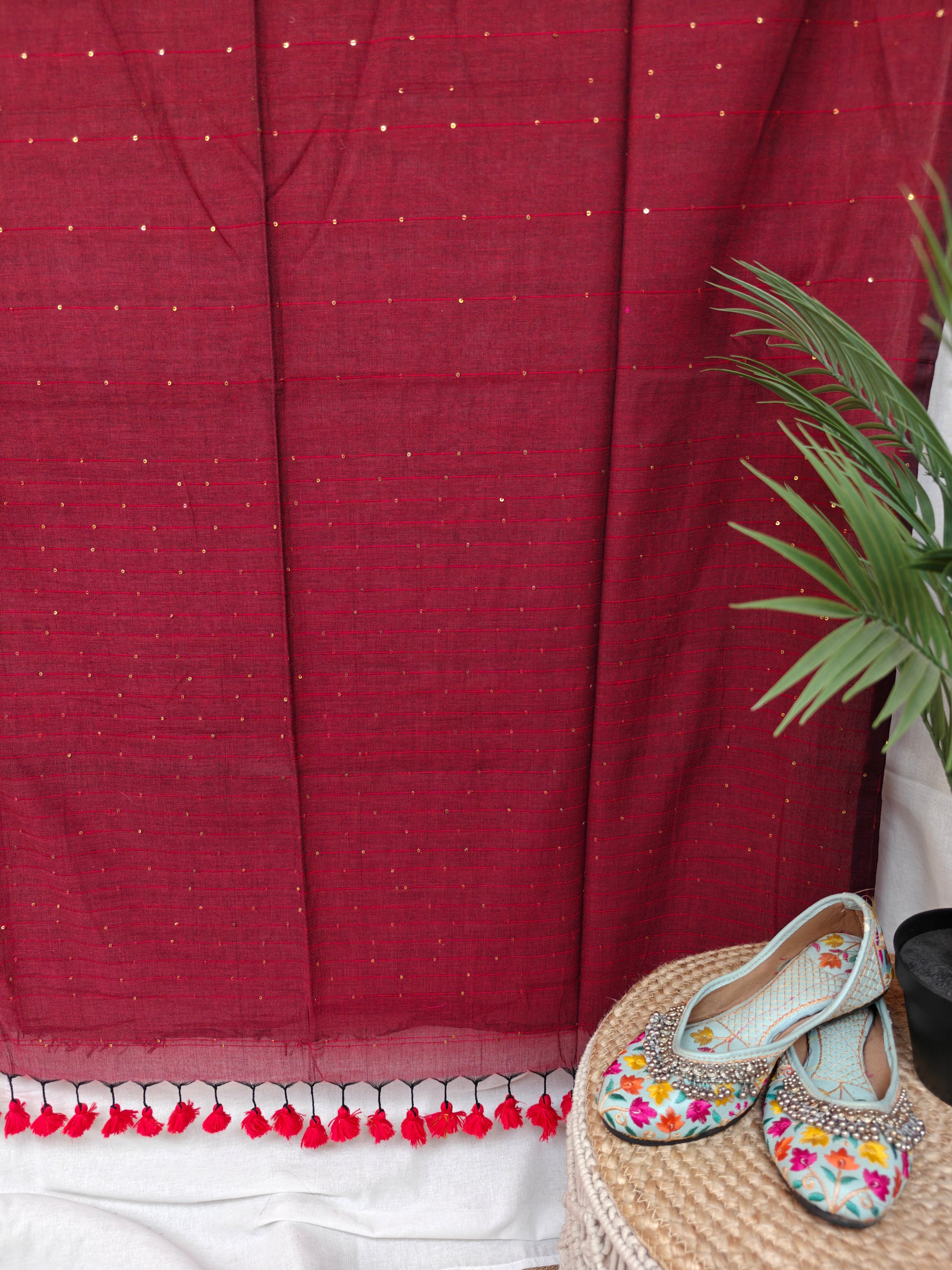 Introducing our stunning Sequin Mul Cotton Saree, a masterpiece of elegance and glamor that effortlessly combines traditional craftsmanship with contemporary flair. The subtle yet dazzling shimmer of the sequins all over the body and pallu complements the understated elegance of the Mul Cotton Fabric.