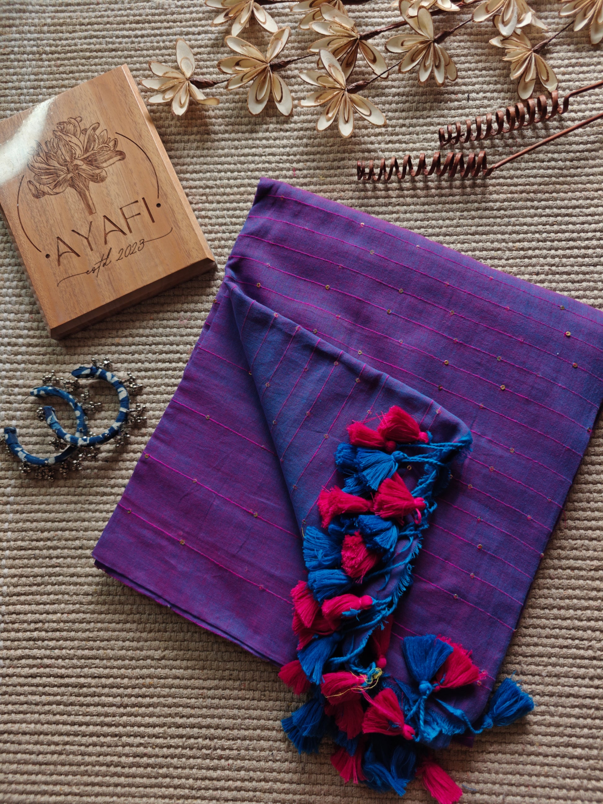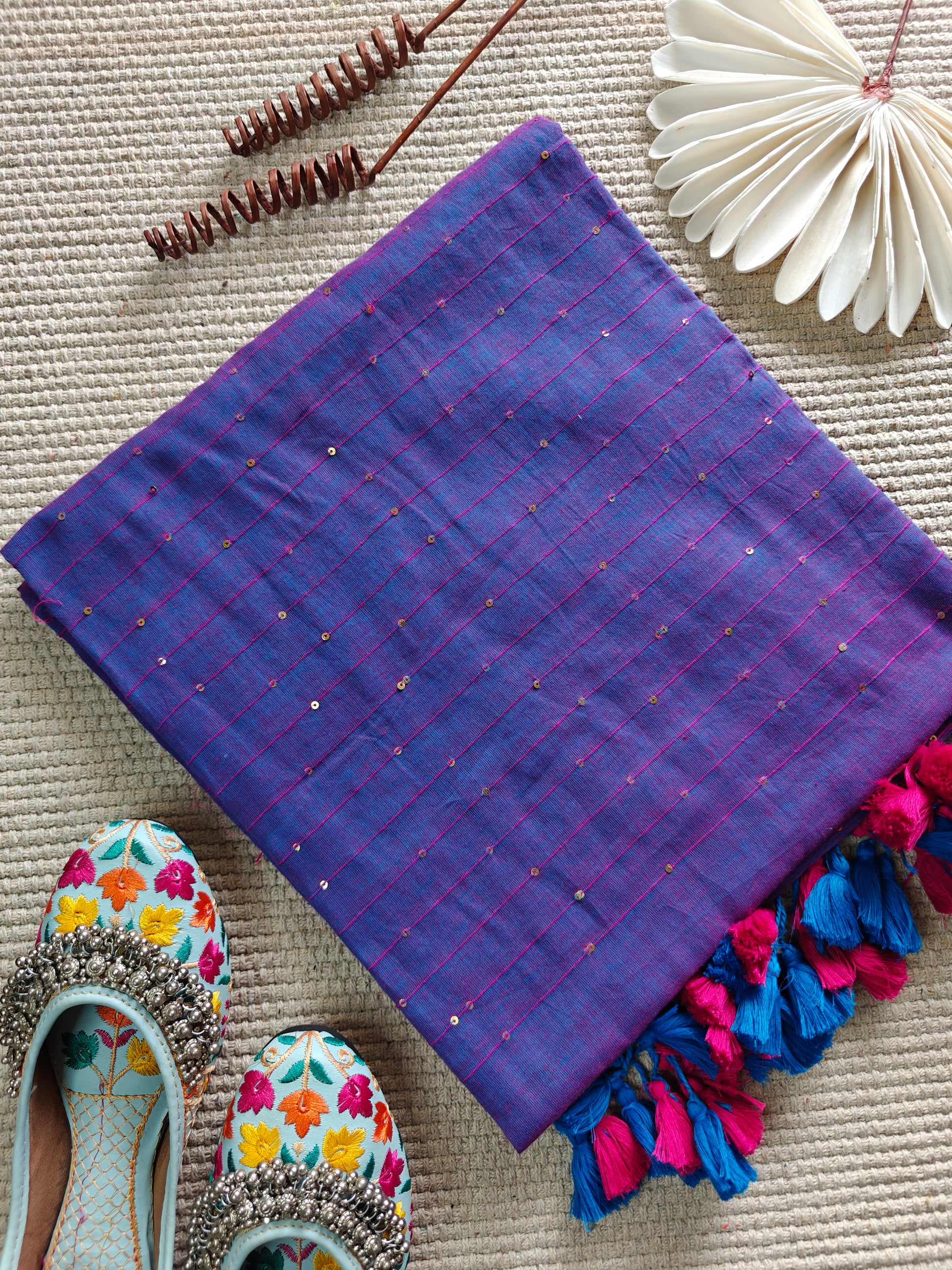 Introducing our stunning Sequin Mul Cotton Saree, a masterpiece of elegance and glamor that effortlessly combines traditional craftsmanship with contemporary flair. The subtle yet dazzling shimmer of the sequins all over the body and pallu complements the understated elegance of the Mul Cotton Fabric.