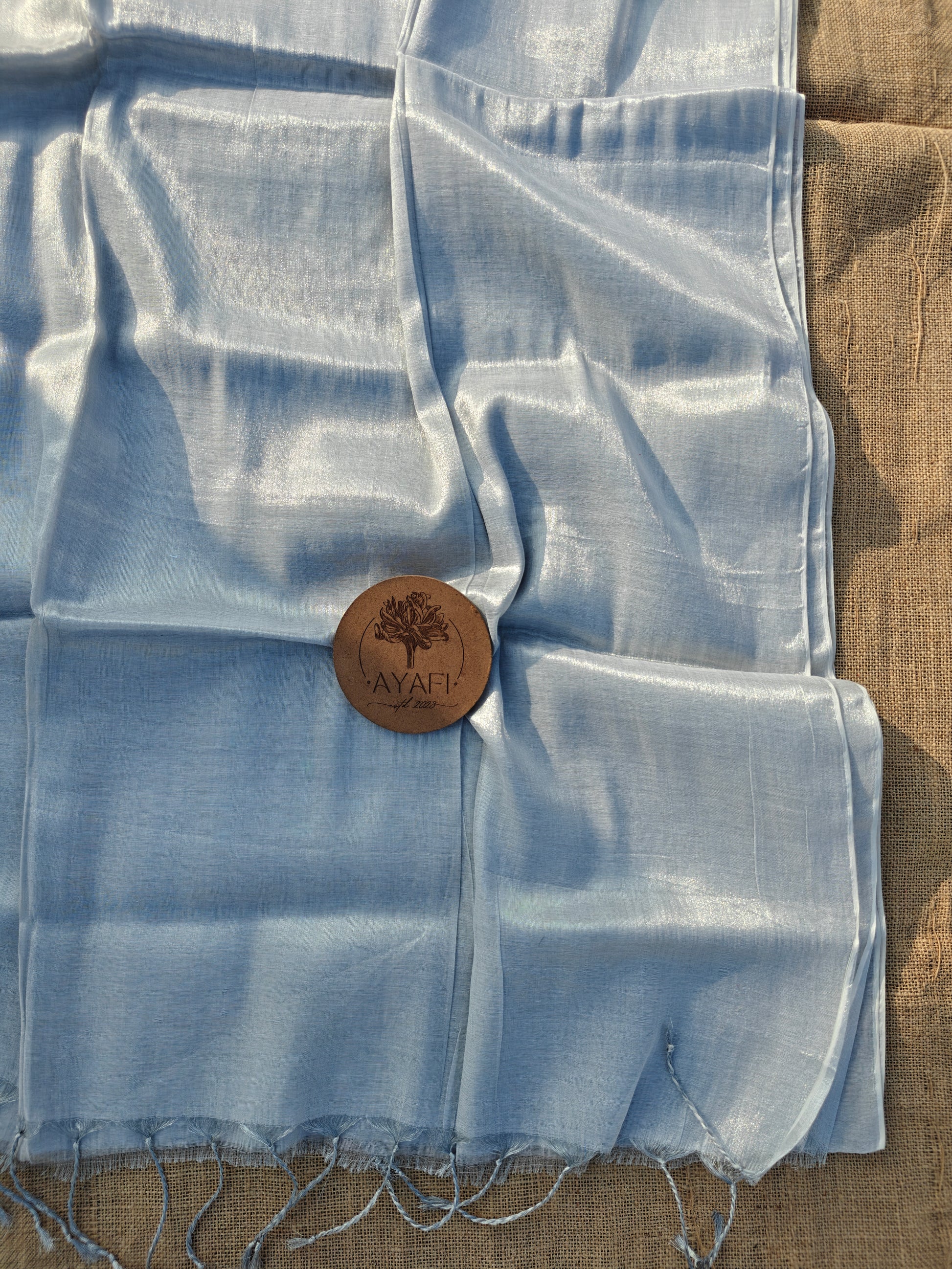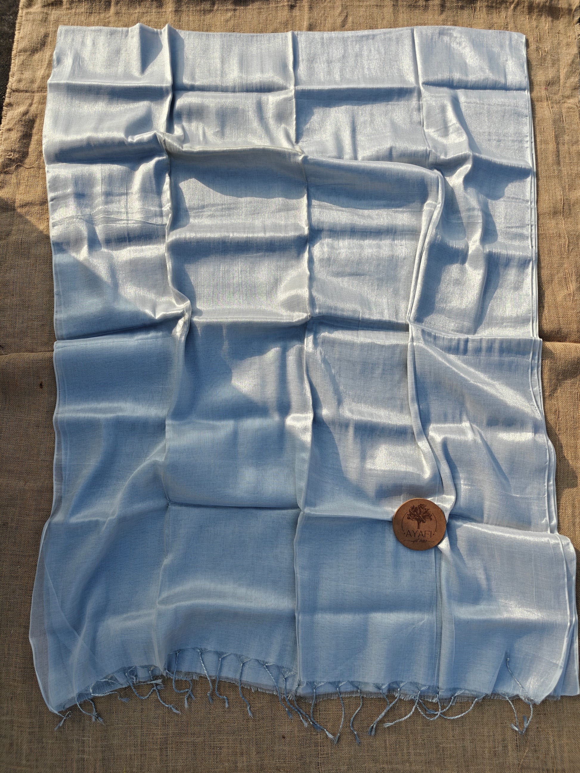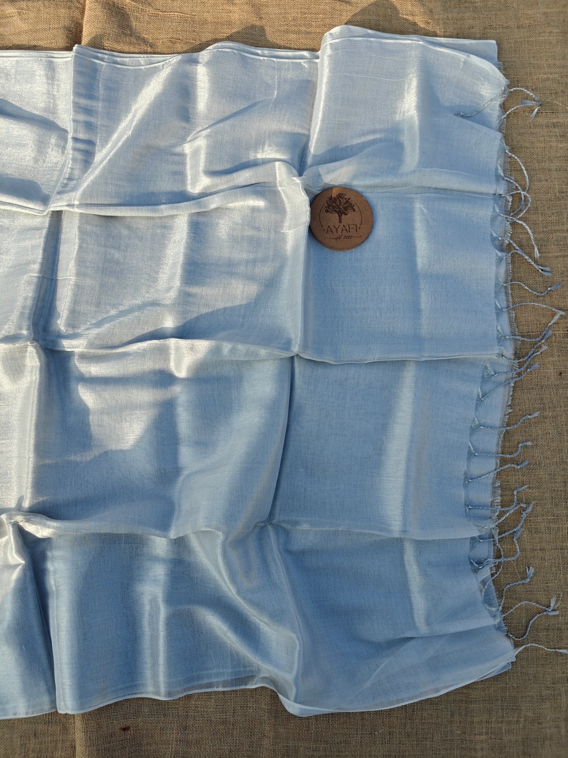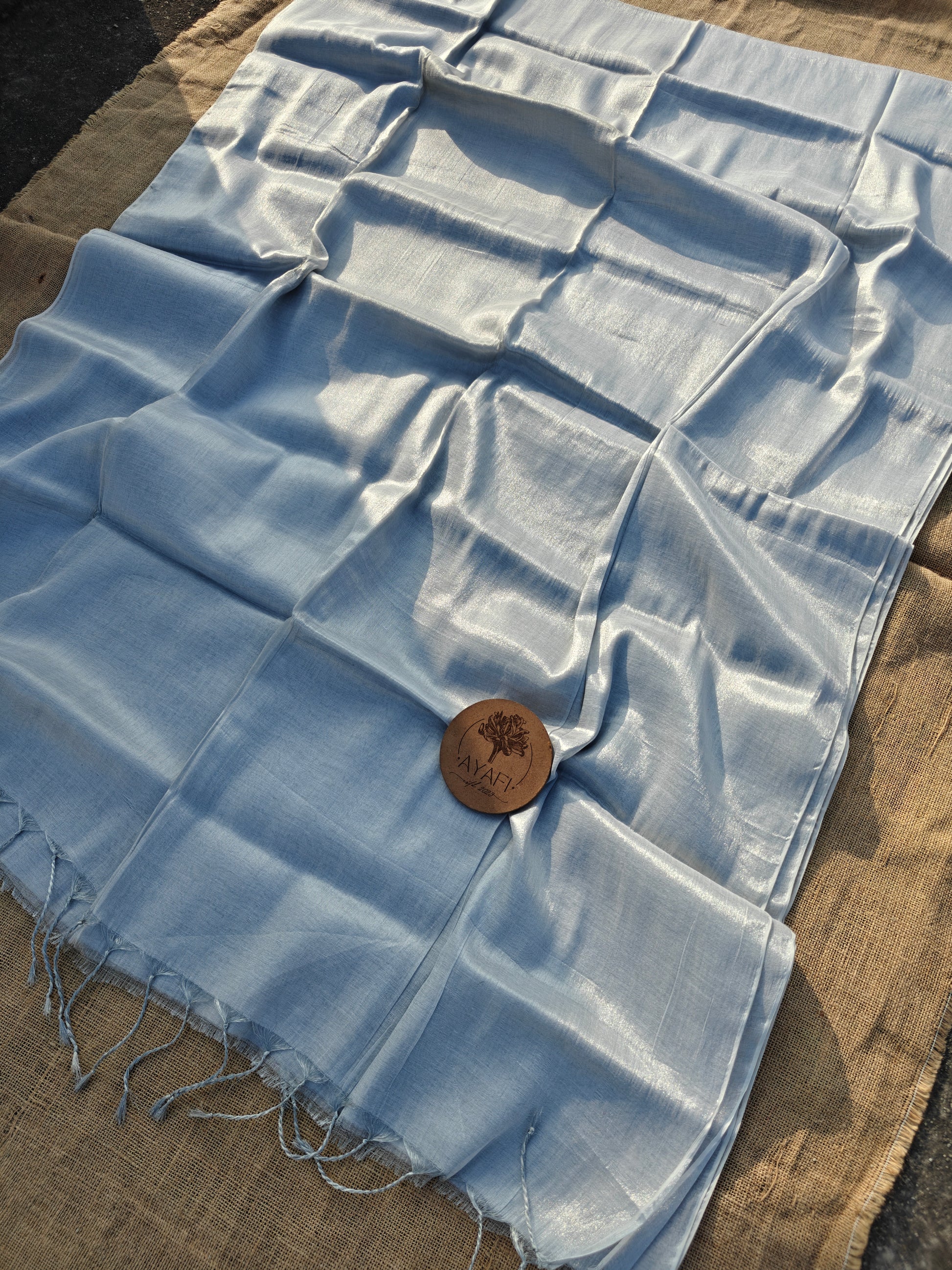 A stunning mul saree with opulent zari interspersed in the weave that brings about a captivating glossy sheen.