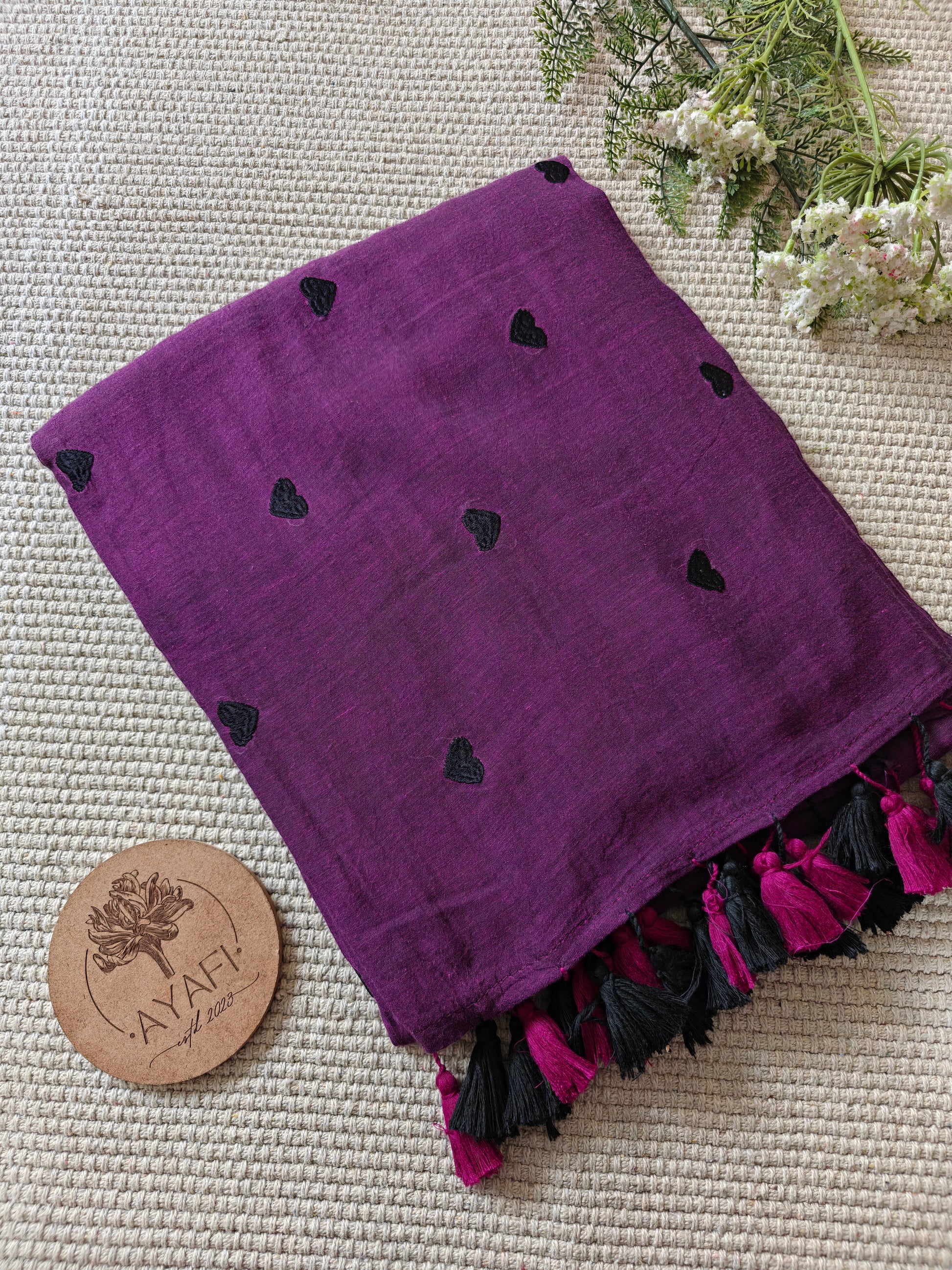 Introducing our exquisite ‘LOVE’ Embroidered Mul Cotton Saree. What sets this saree apart is its intricate embroidery, meticulously woven by the loom to adorn the fabric with beautiful Heart motifs.