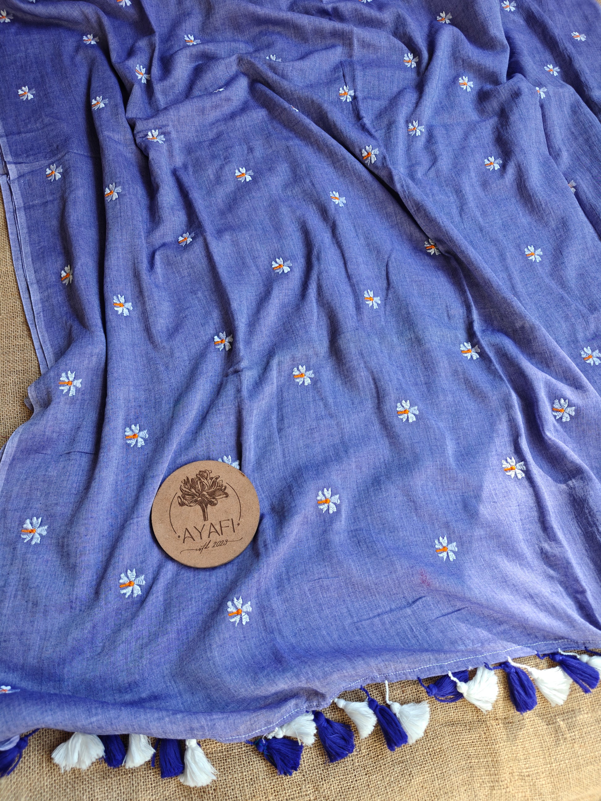 Introducing ‘FLORA’ Embroidered Mul Cotton Saree. What sets this saree apart is its intricate embroidery, meticulously woven by the loom to adorn the pallu and pleats with exquisite floral motifs.