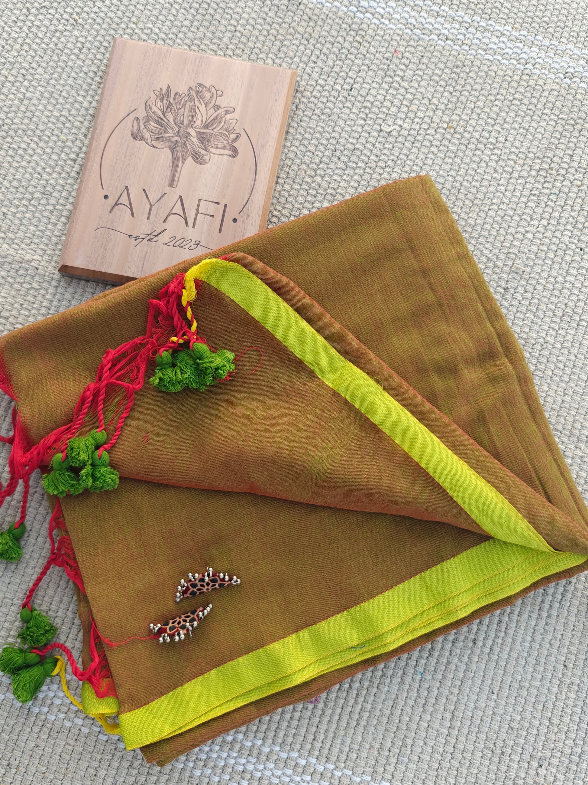 Crafted from the finest quality Mul Cotton fabric, this saree boasts a luxurious drape and a feather-light feel, ensuring effortless movement and breathability throughout the day. A timeless fusion of elegance and comfort, meticulously crafted to adorn you with grace and sophistication.