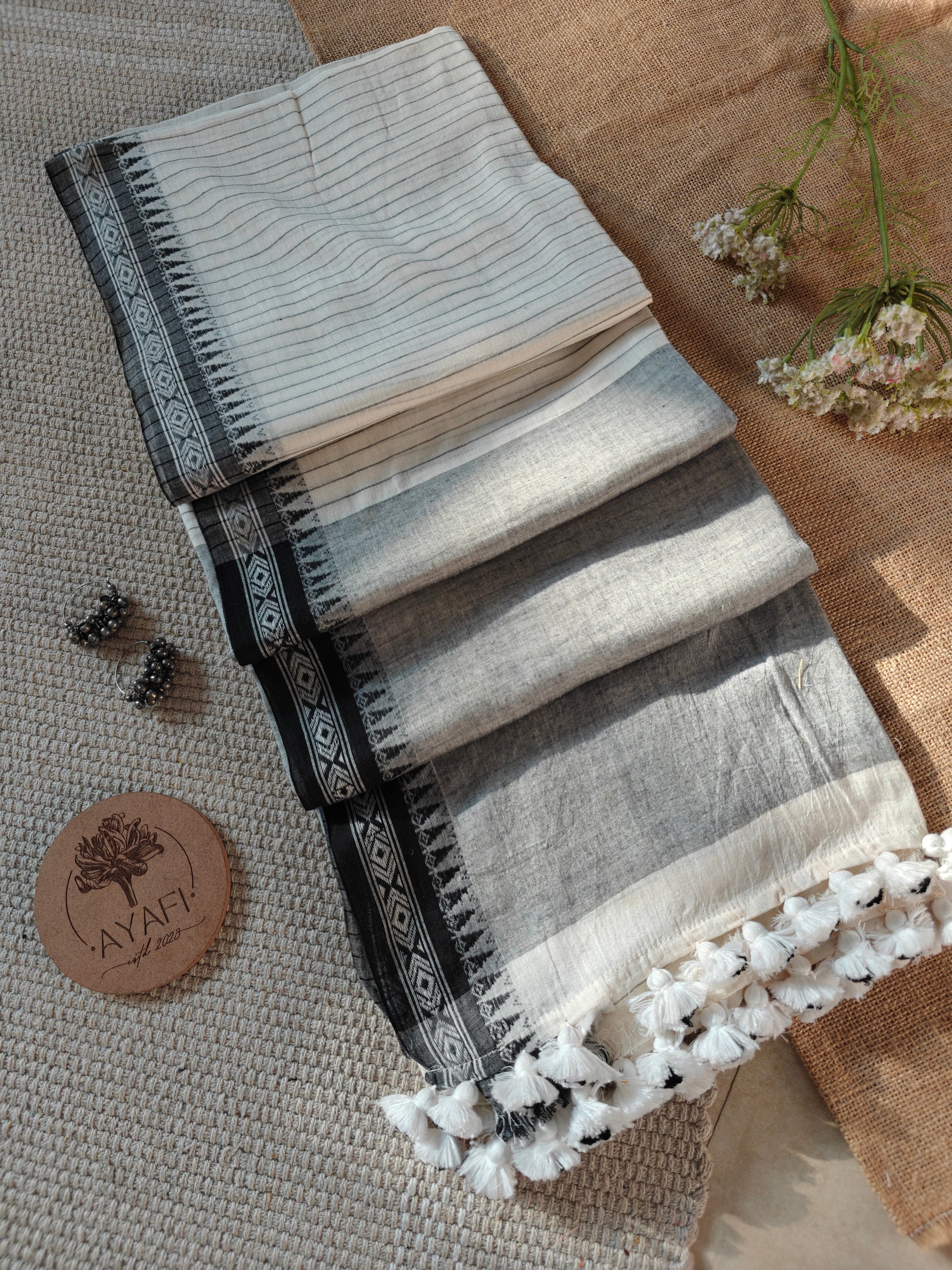 Wrap yourself in elegance with our Soulful Weaves range of sarees - handwoven masterpieces that celebrate tradition with a modern edge. This saree features a delicate blend of hues, elevated by a striking contrast pallu & border that adds definition & flair.