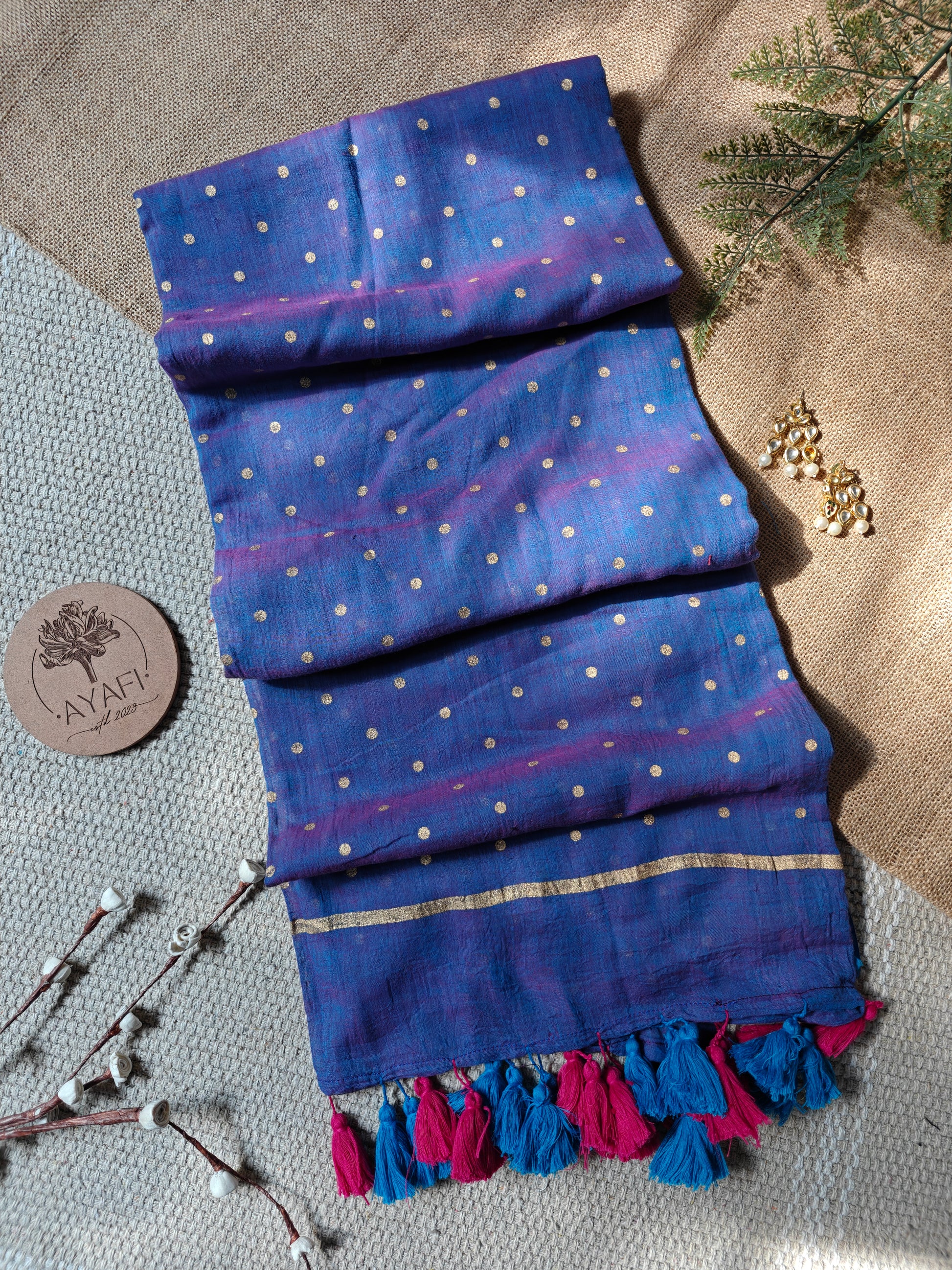 Finished with delicate handmade tassels, it’s the kind of saree that moves with you — perfect for daytime elegance, festive brunches, or simply when you want to feel a little extra.