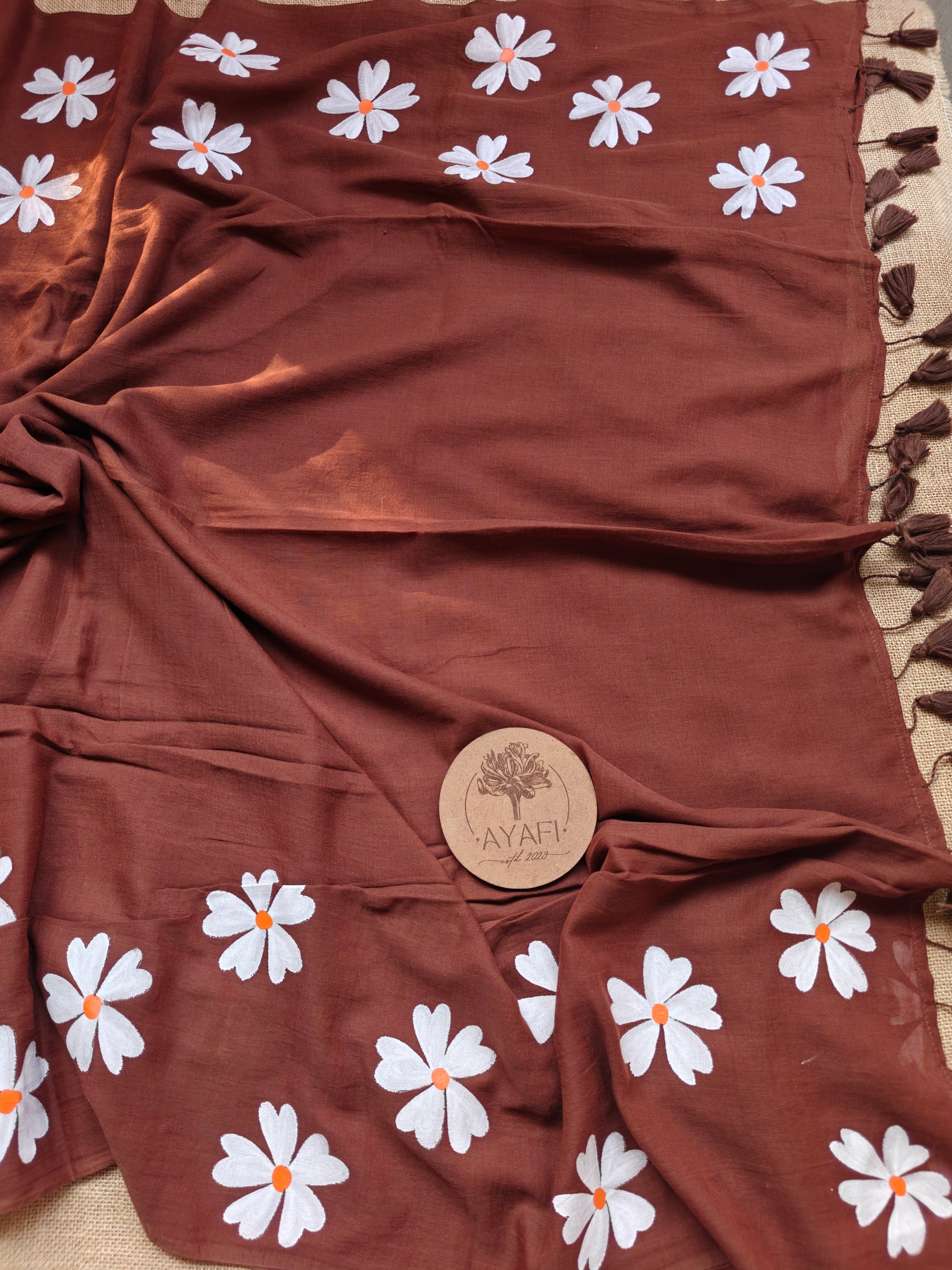 Soft, breathable, and incredibly lightweight, the mul cotton drapes like a dream—perfect for day-to-evening wear. Finished with delicate handmade tassels along the pallu, every detail speaks of slow fashion and one-of-a-kind charm.