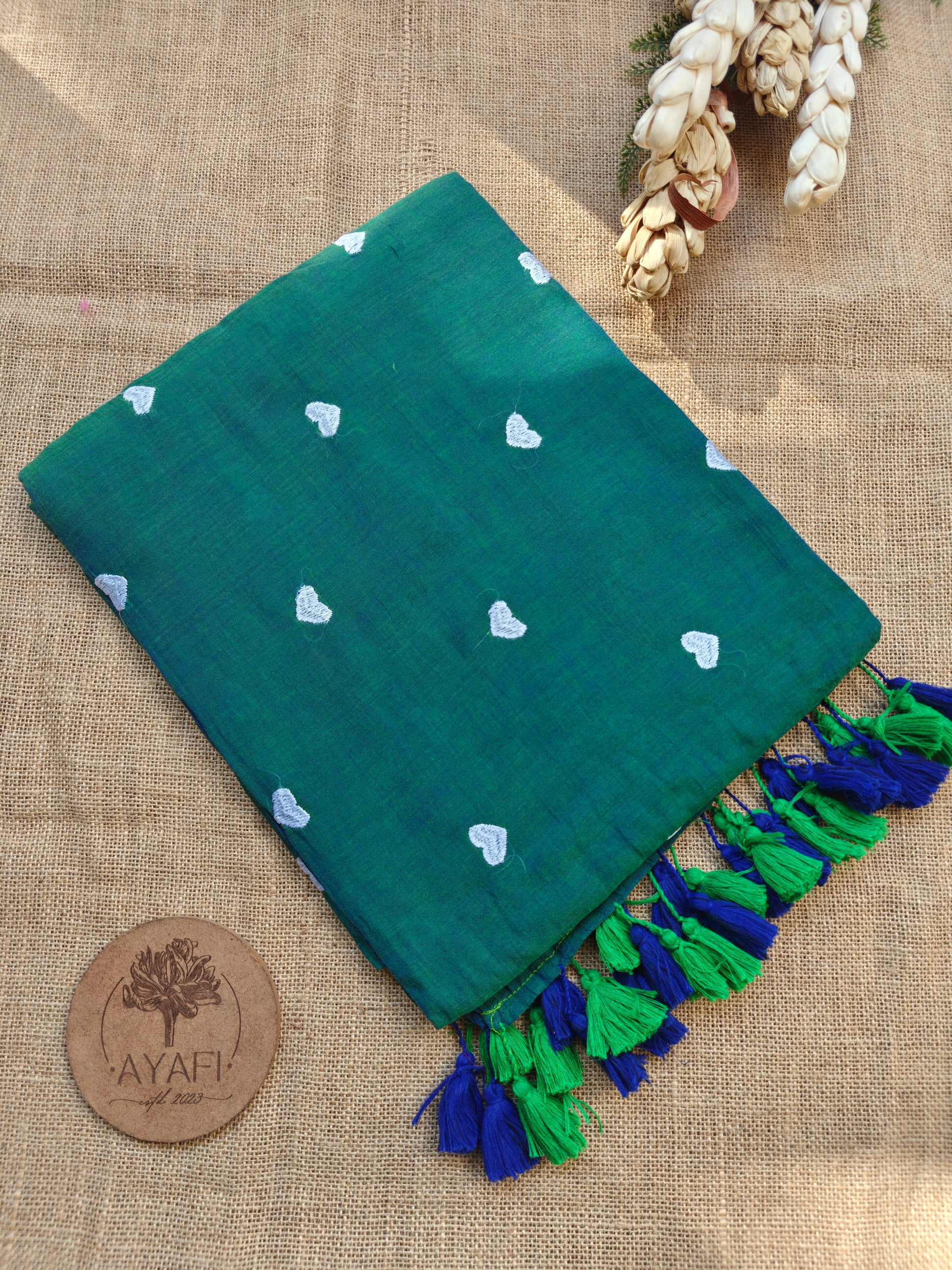 Introducing our exquisite ‘LOVE’ Embroidered Mul Cotton Saree. What sets this saree apart is its intricate embroidery, meticulously woven by the loom to adorn the fabric with beautiful Heart motifs.