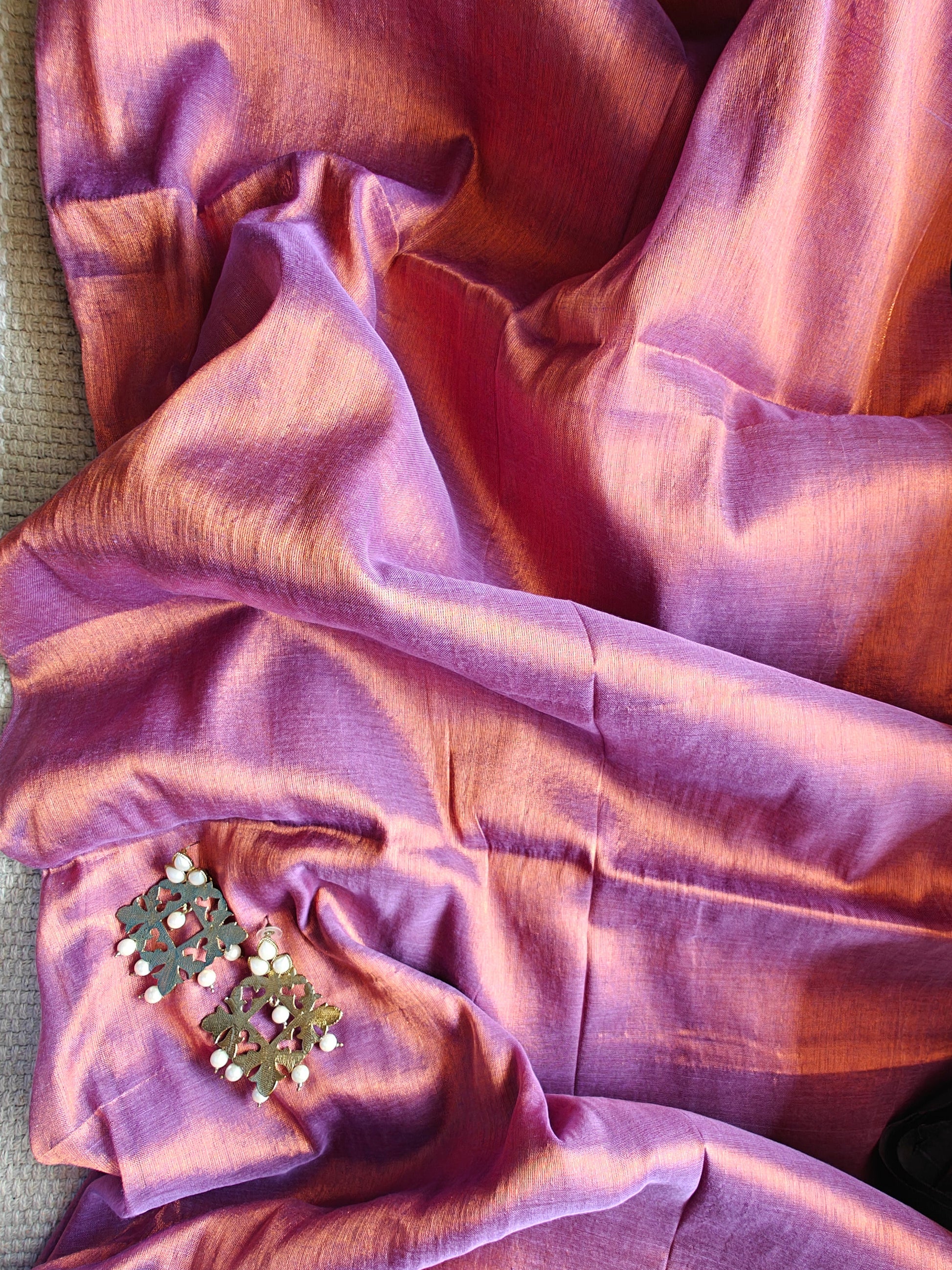A stunning mul saree with opulent zari interspersed in the weave that brings about a captivating glossy sheen.