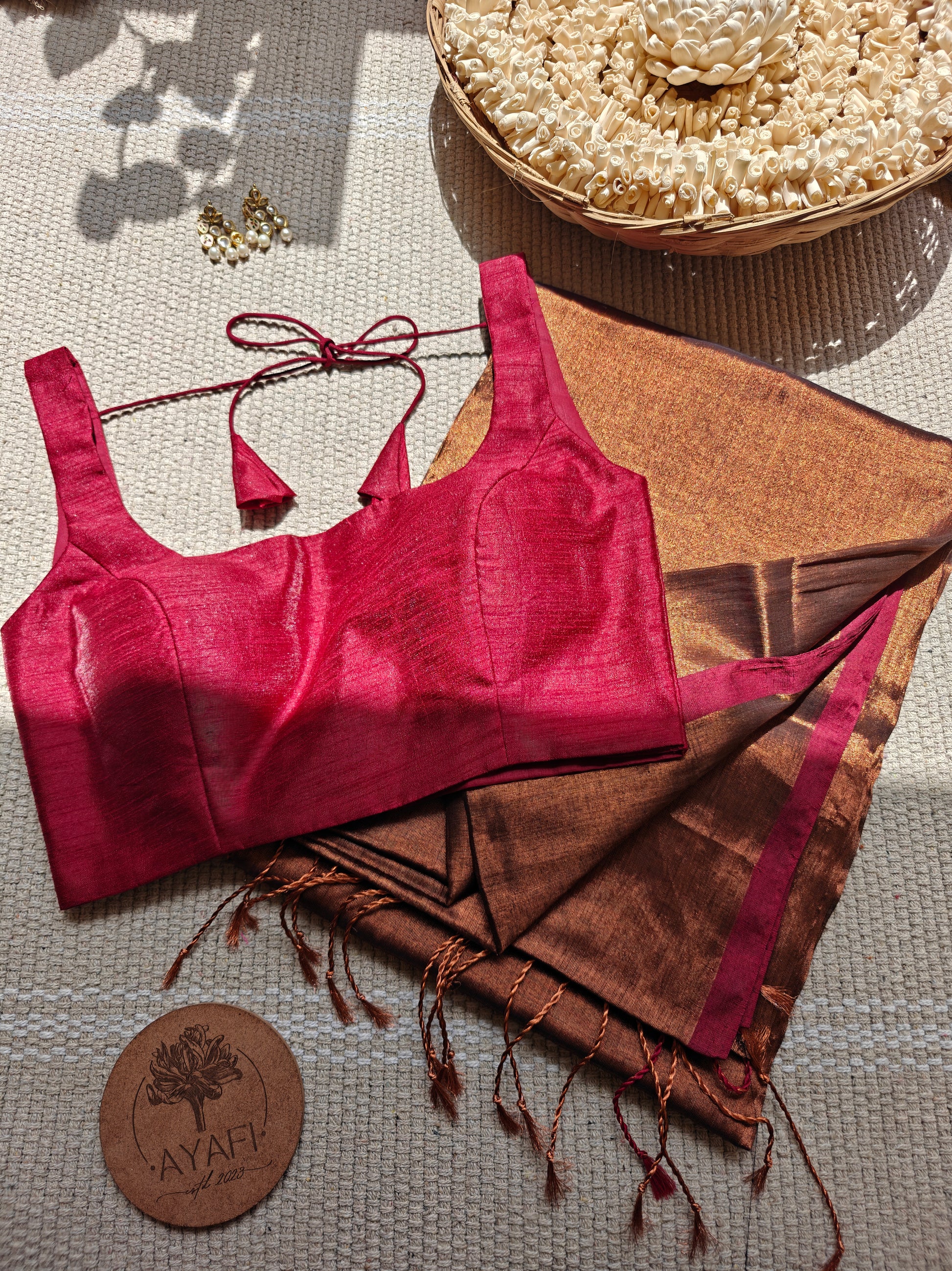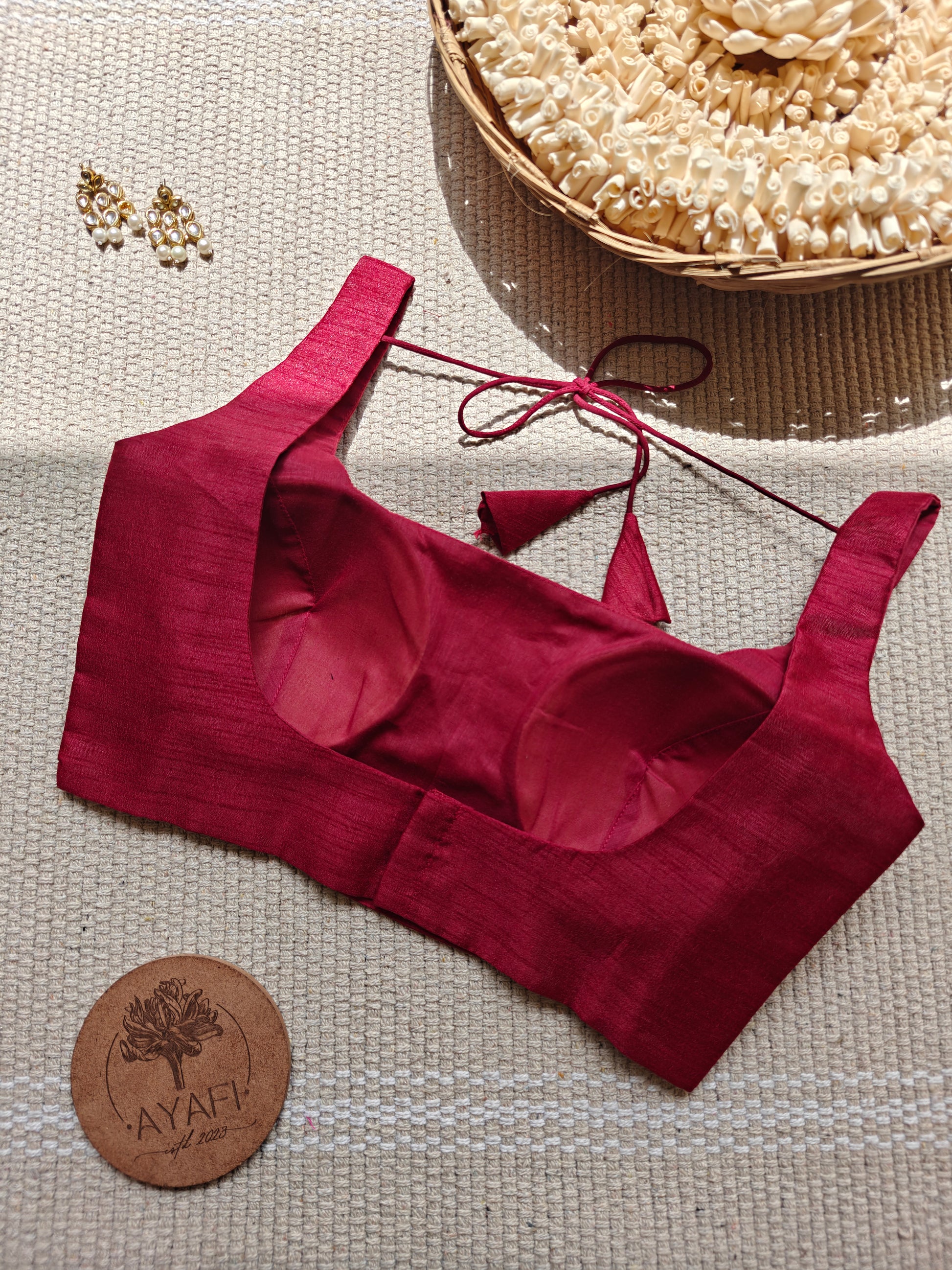 Maroon Raw Silk U Neck Sleeveless Blouse