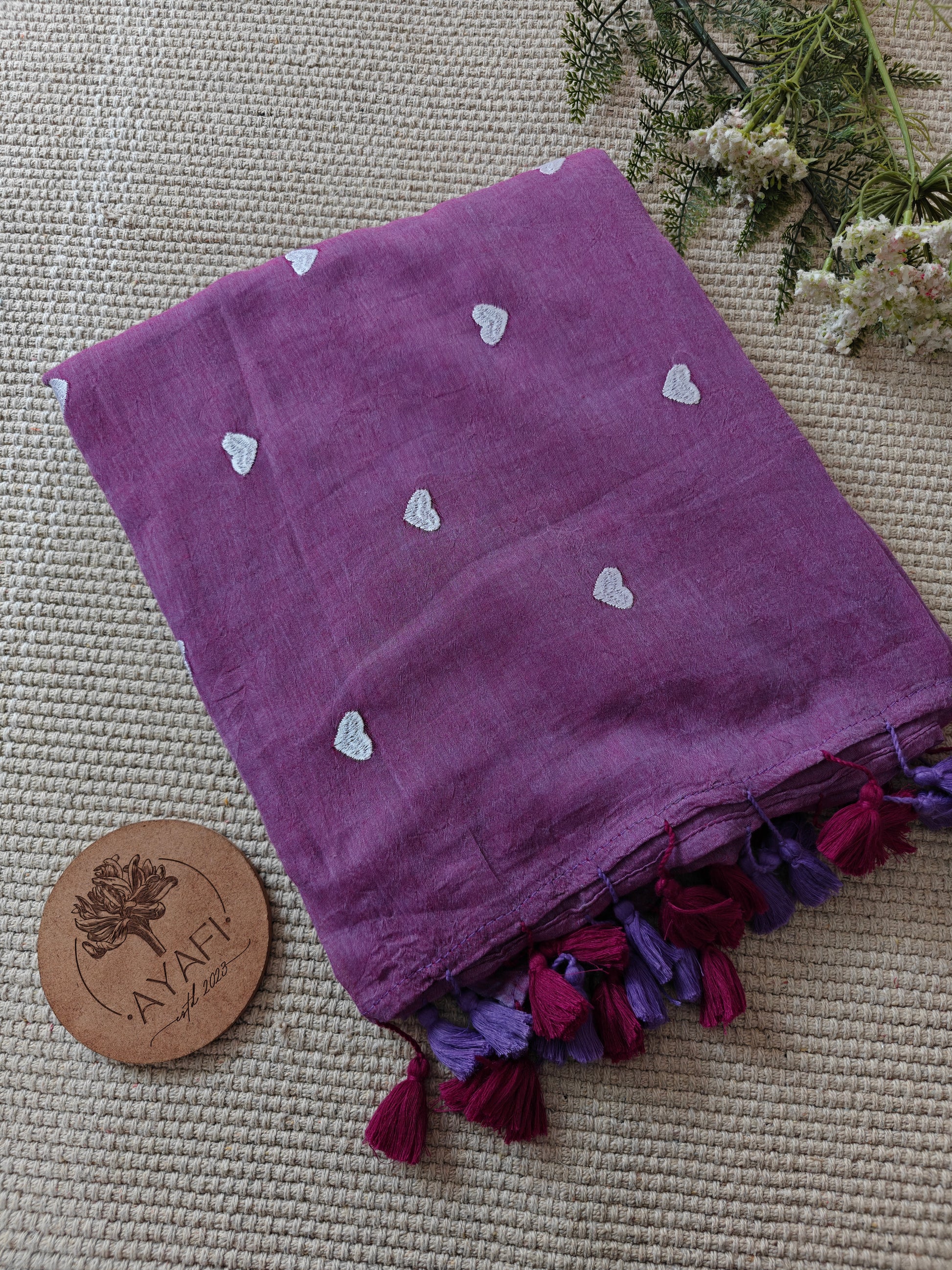 Introducing our exquisite ‘LOVE’ Embroidered Mul Cotton Saree. What sets this saree apart is its intricate embroidery, meticulously woven by the loom to adorn the fabric with beautiful Heart motifs.