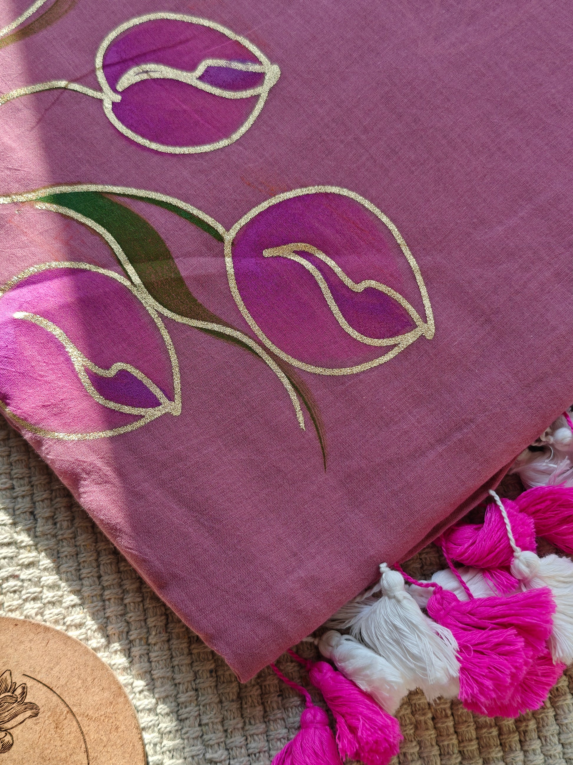 Mauve Tulip Bouquet Hand-Painted Saree