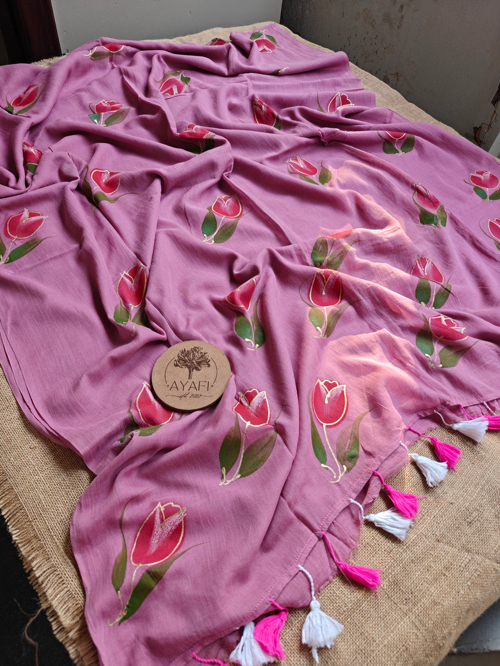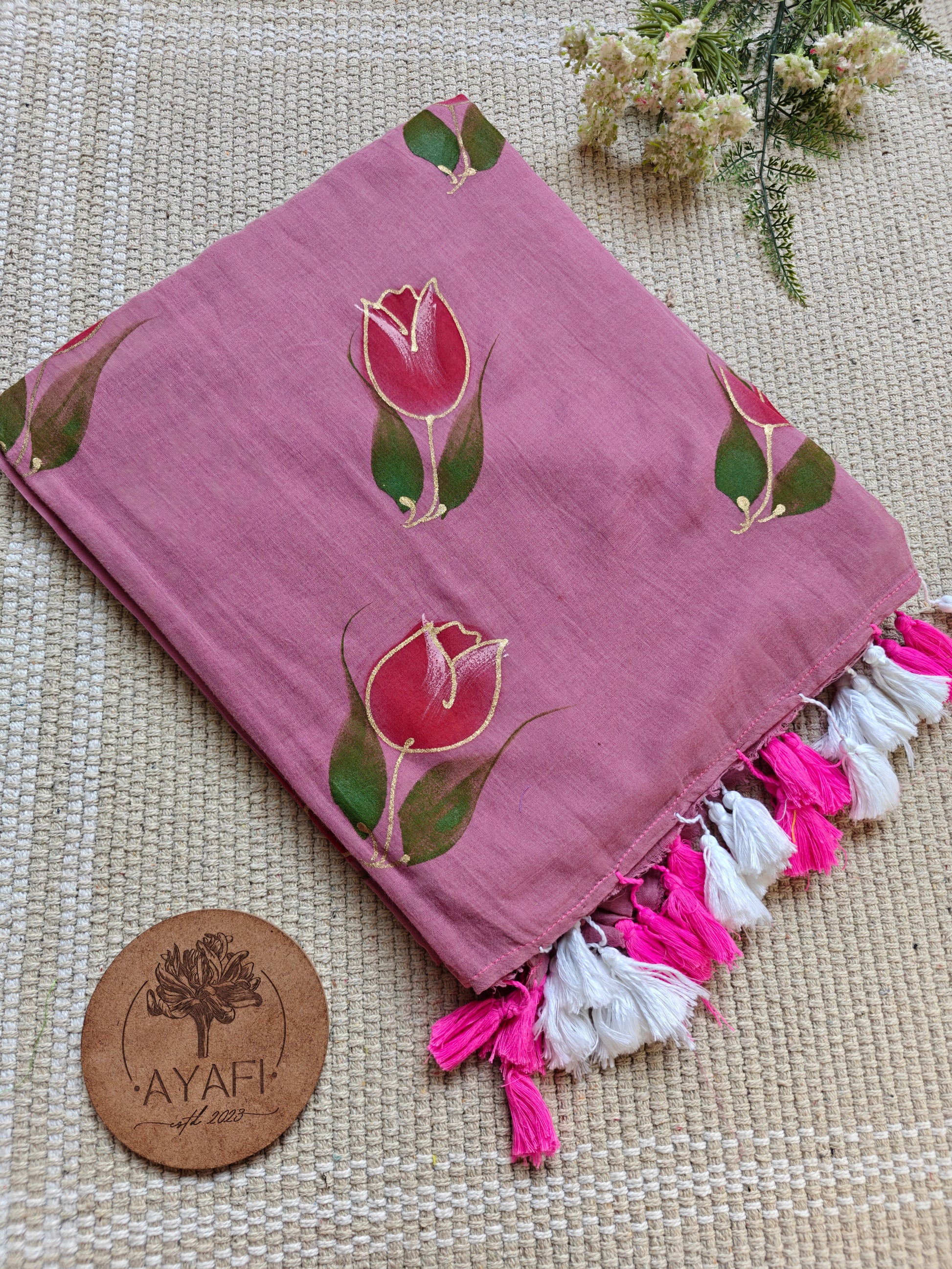 Soft, breathable, and incredibly lightweight, the mul cotton drapes like a dream—perfect for day-to-evening wear. Finished with delicate handmade tassels along the pallu, every detail speaks of slow fashion and one-of-a-kind charm.