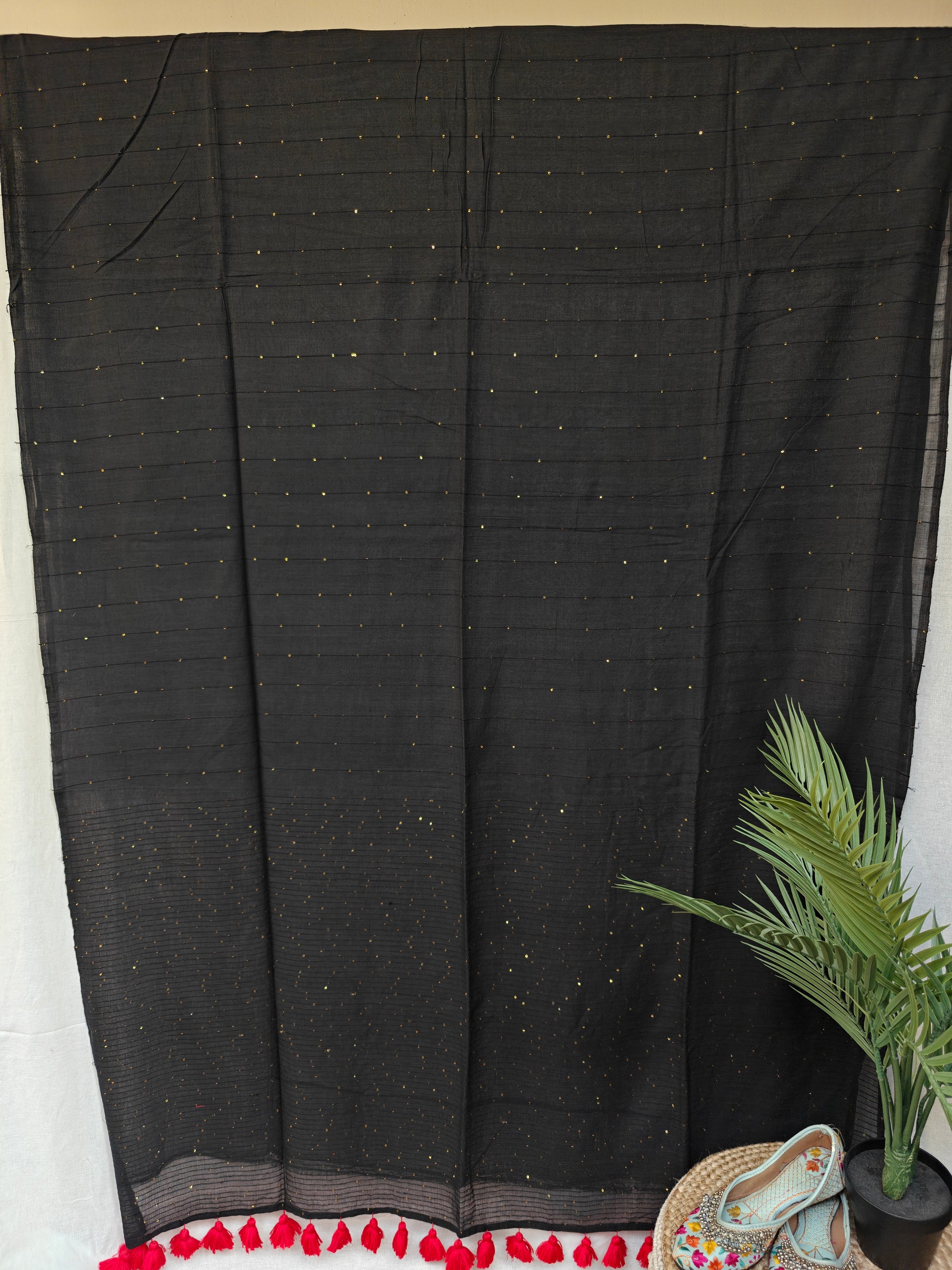 Introducing our stunning Sequin Mul Cotton Saree, a masterpiece of elegance and glamor that effortlessly combines traditional craftsmanship with contemporary flair. The subtle yet dazzling shimmer of the sequins all over the body and pallu complements the understated elegance of the Mul Cotton Fabric.