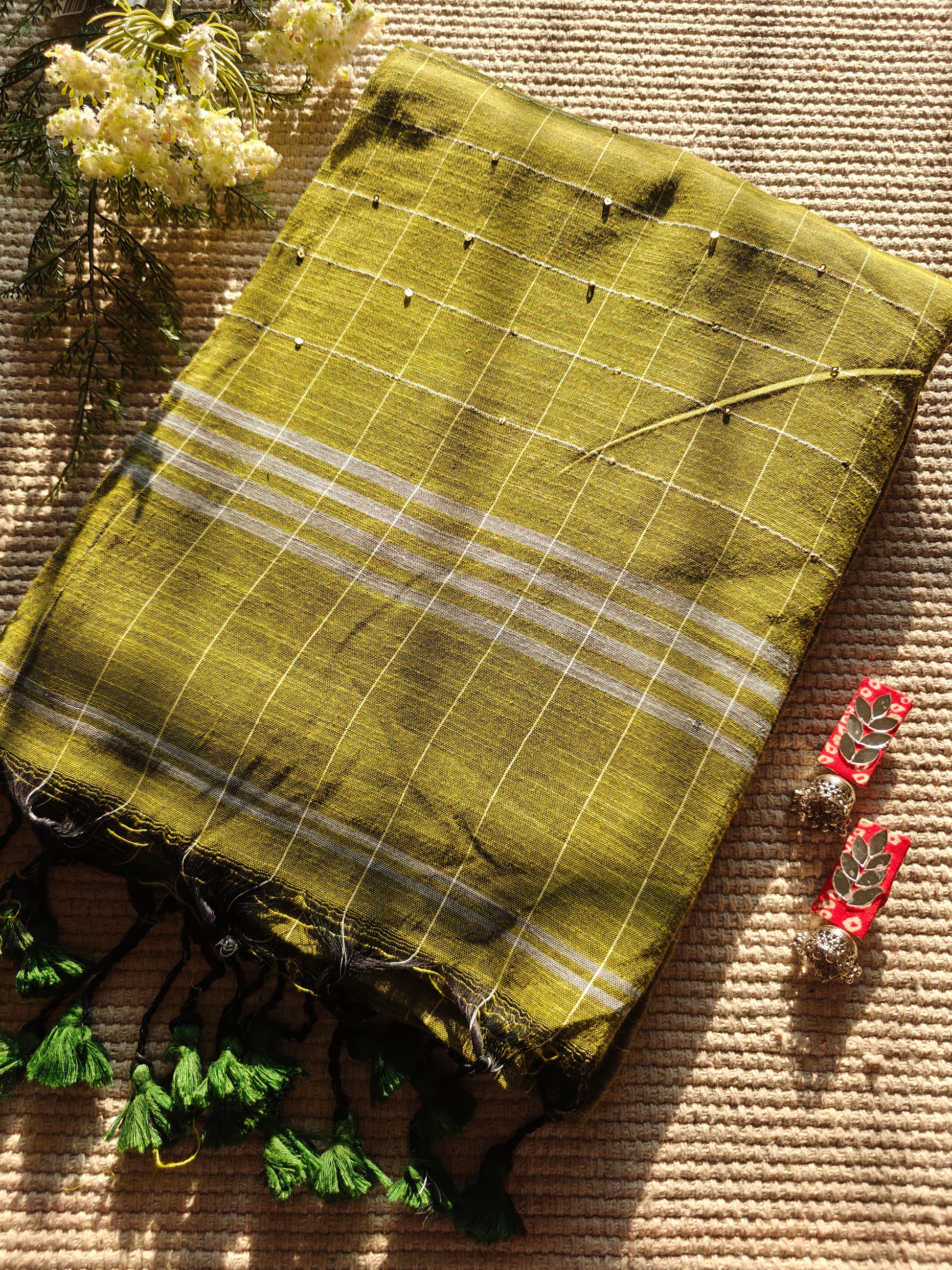 Introducing our stunning Sequin Mul Cotton Saree, a masterpiece of elegance and glamor that effortlessly combines traditional craftsmanship with contemporary flair. The subtle yet dazzling shimmer of the sequins all over the body and pallu complements the understated elegance of the Mul Cotton Fabric.