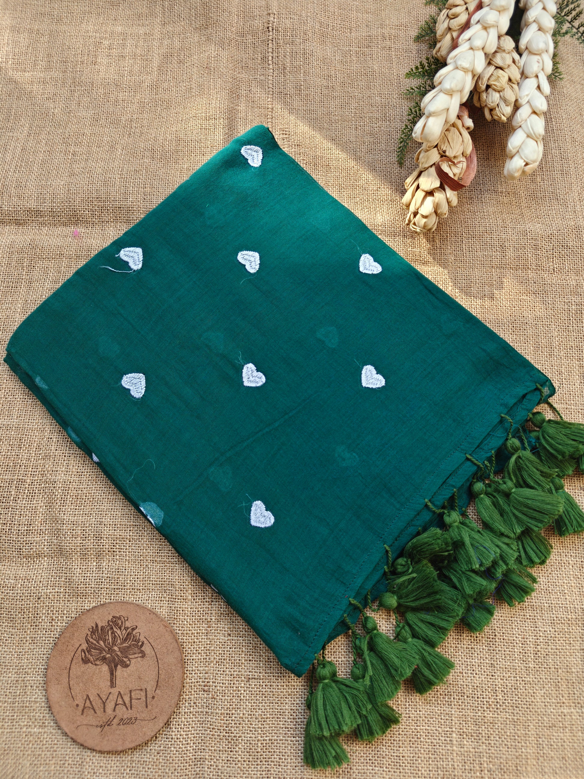 Introducing our exquisite ‘LOVE’ Embroidered Mul Cotton Saree. What sets this saree apart is its intricate embroidery, meticulously woven by the loom to adorn the fabric with beautiful Heart motifs.