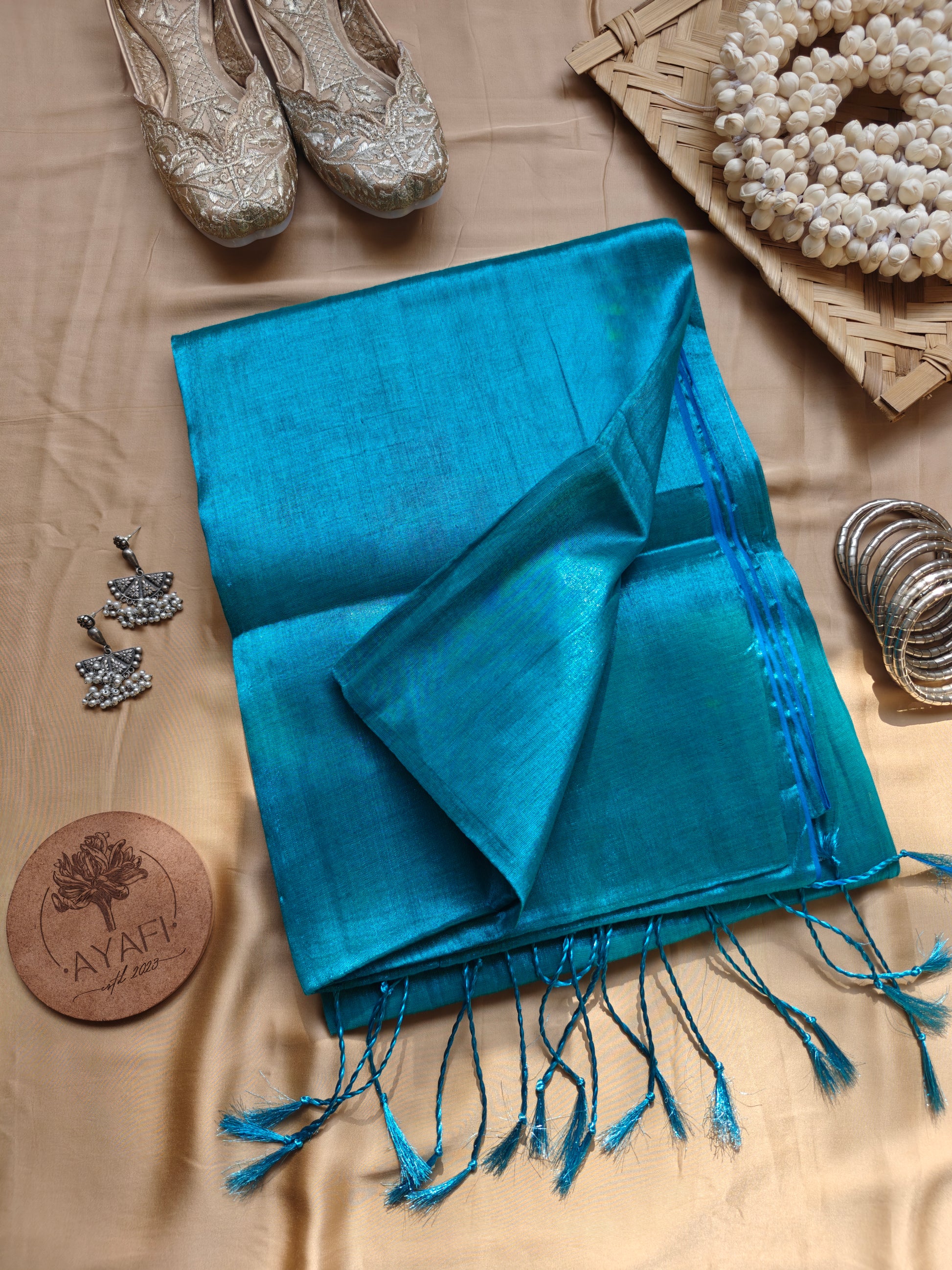 A stunning mul saree with opulent zari interspersed in the weave that brings about a captivating glossy sheen.