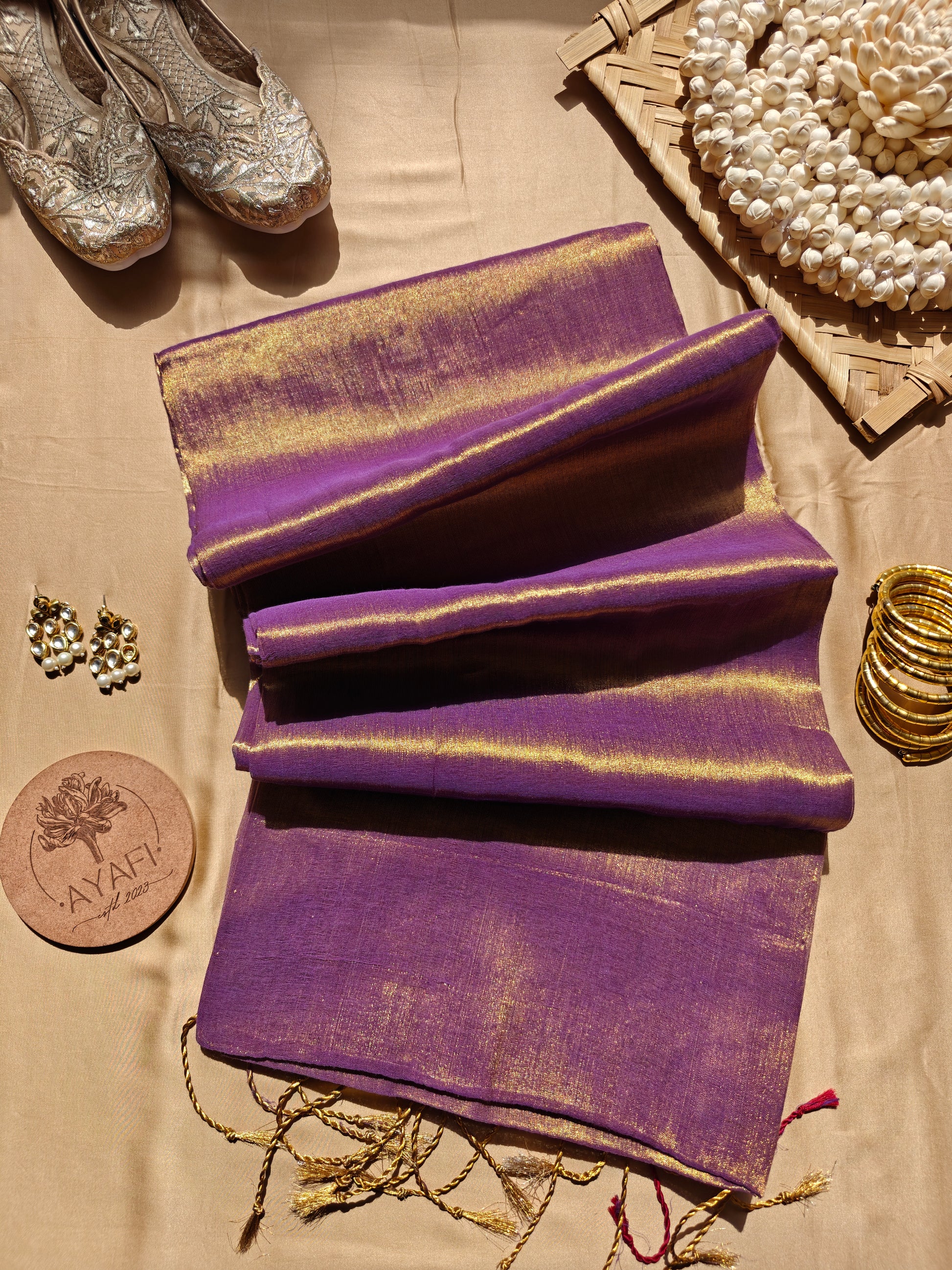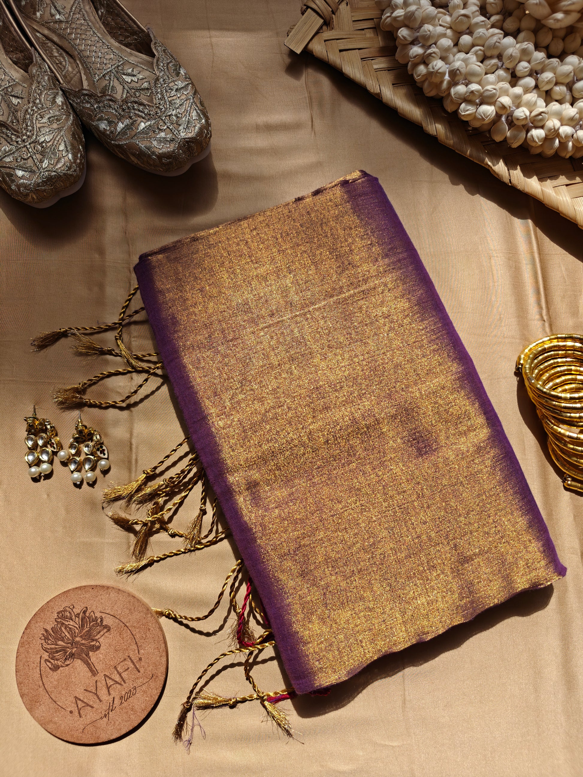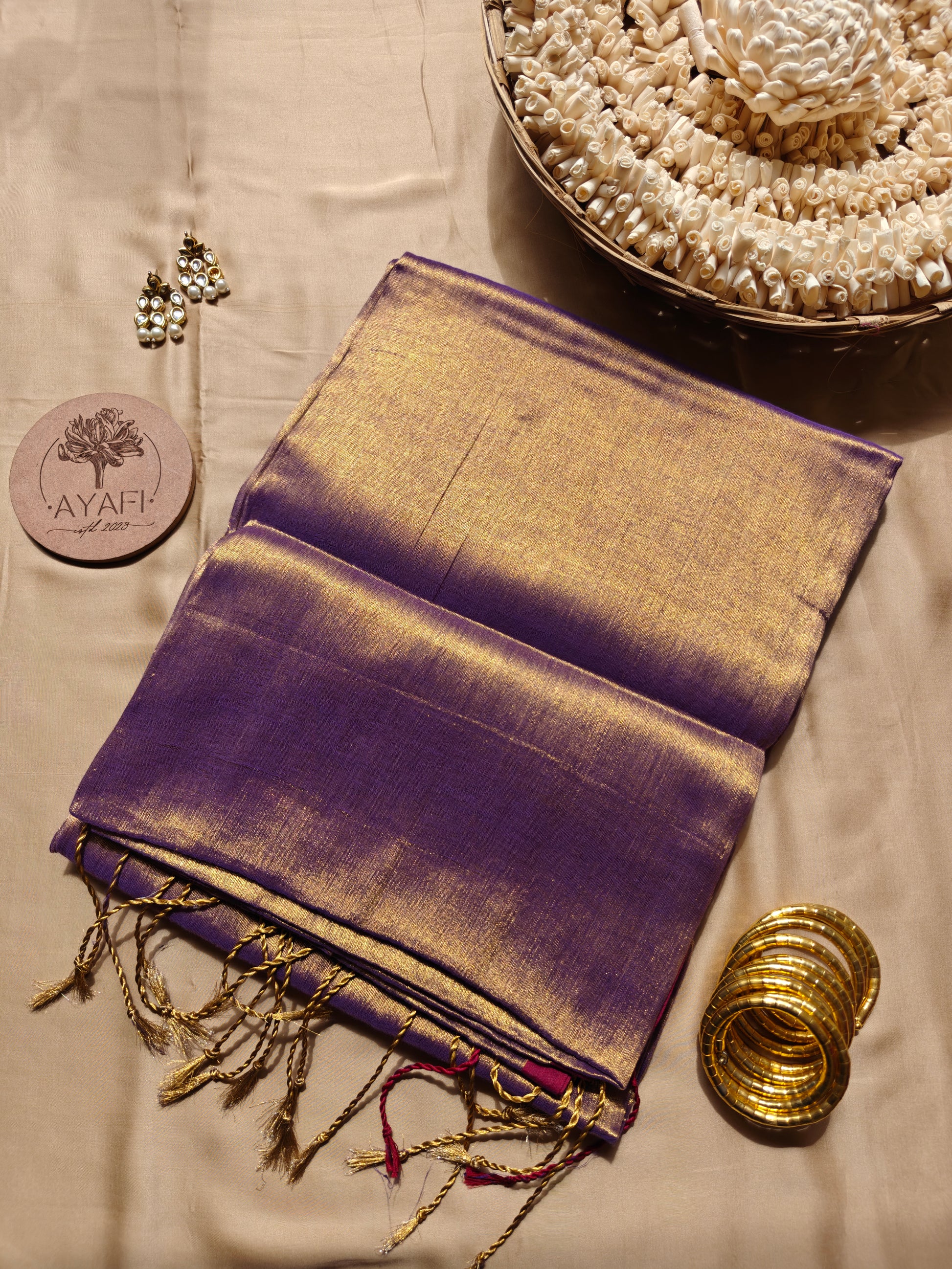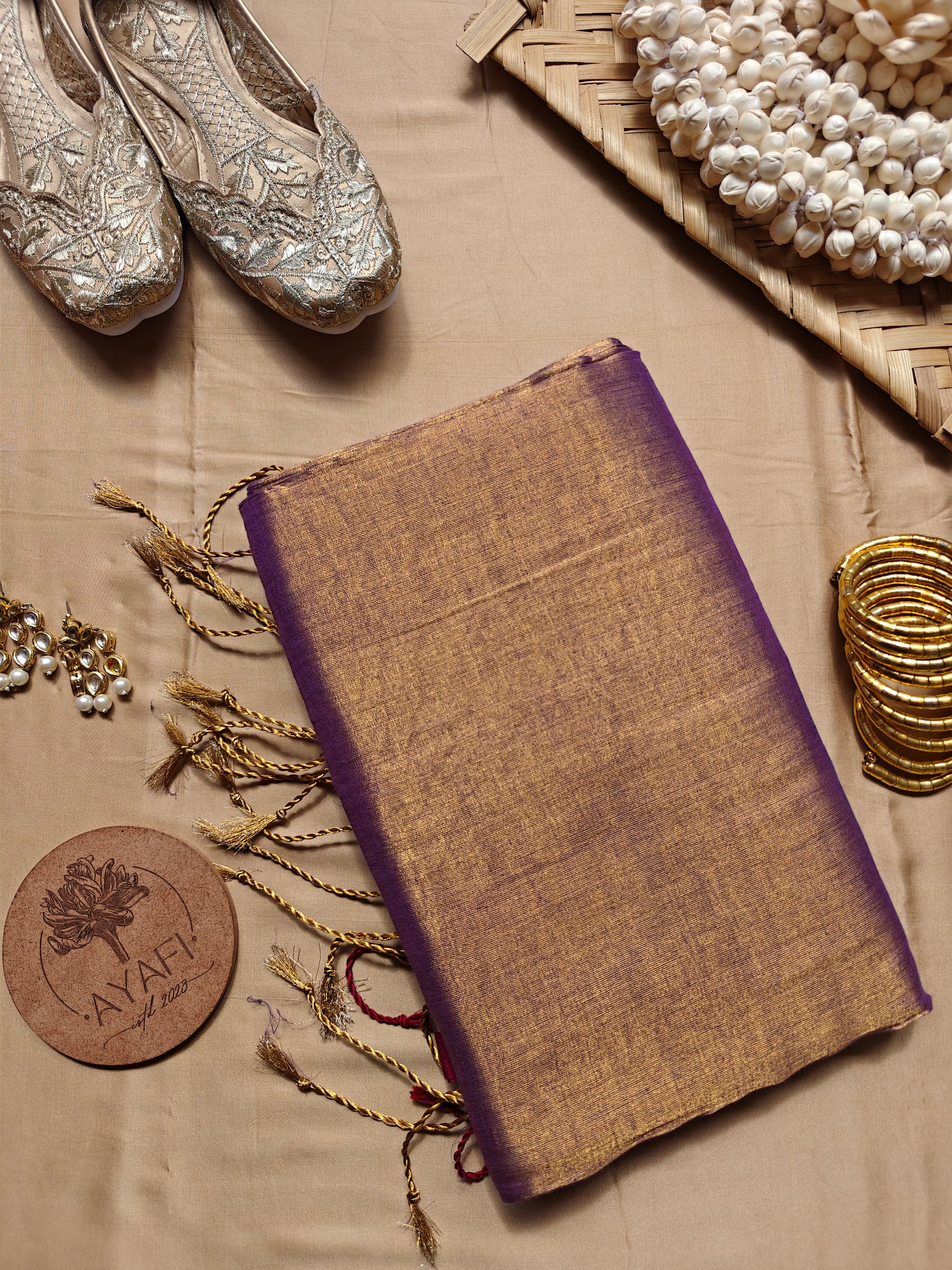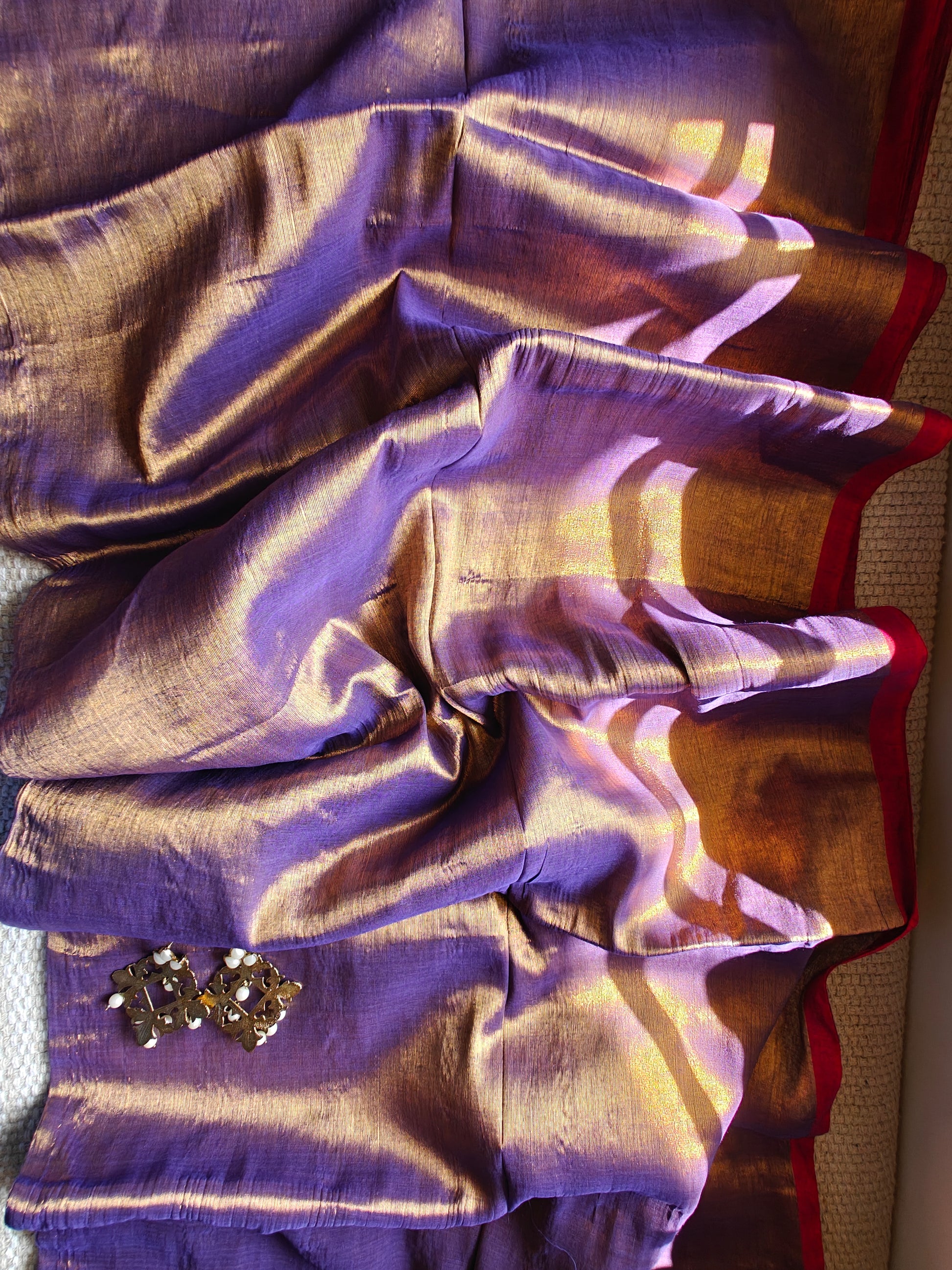 A stunning mul saree with opulent zari interspersed in the weave that brings about a captivating glossy sheen.