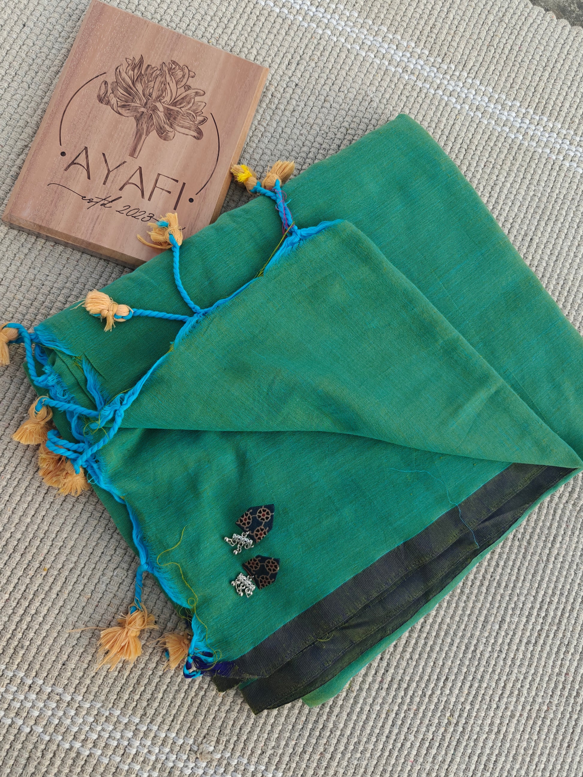 Crafted from the finest quality Mul Cotton fabric, this saree boasts a luxurious drape and a feather-light feel, ensuring effortless movement and breathability throughout the day. A timeless fusion of elegance and comfort, meticulously crafted to adorn you with grace and sophistication.