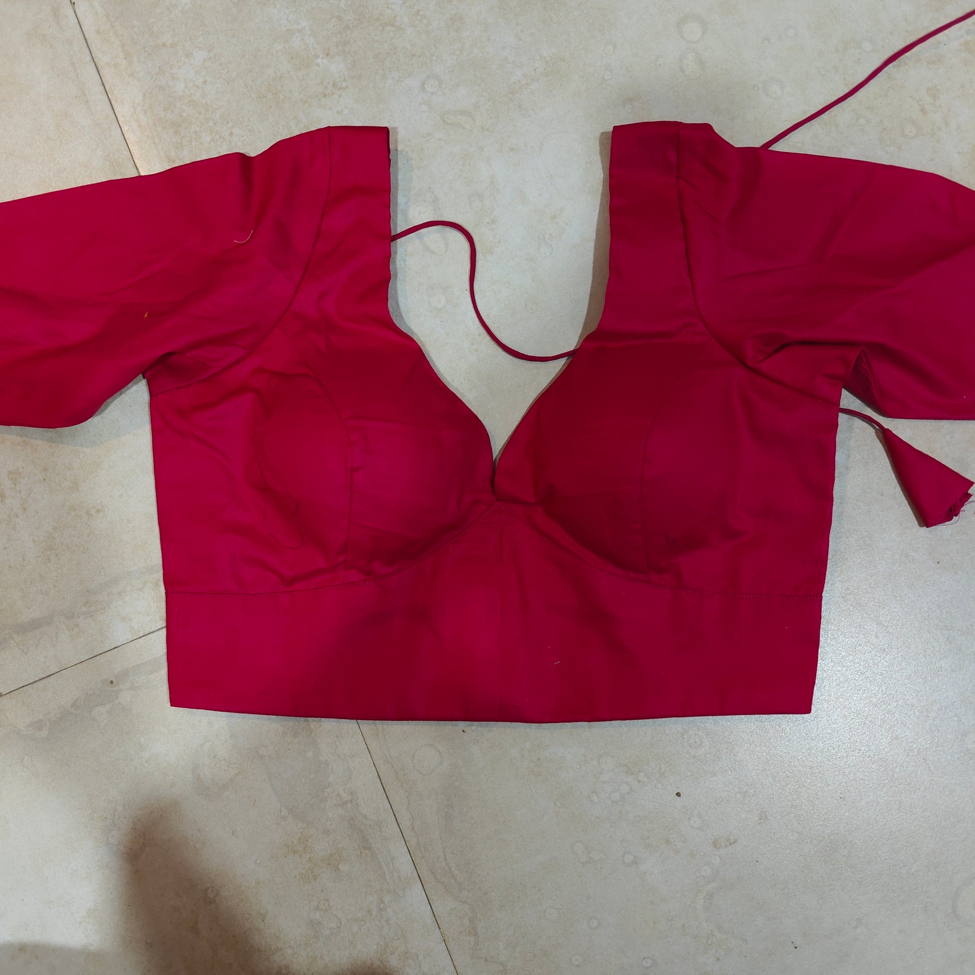 Pink Cotton Leaf Neck Belted Princess Cut Elbow Sleeves Blouse