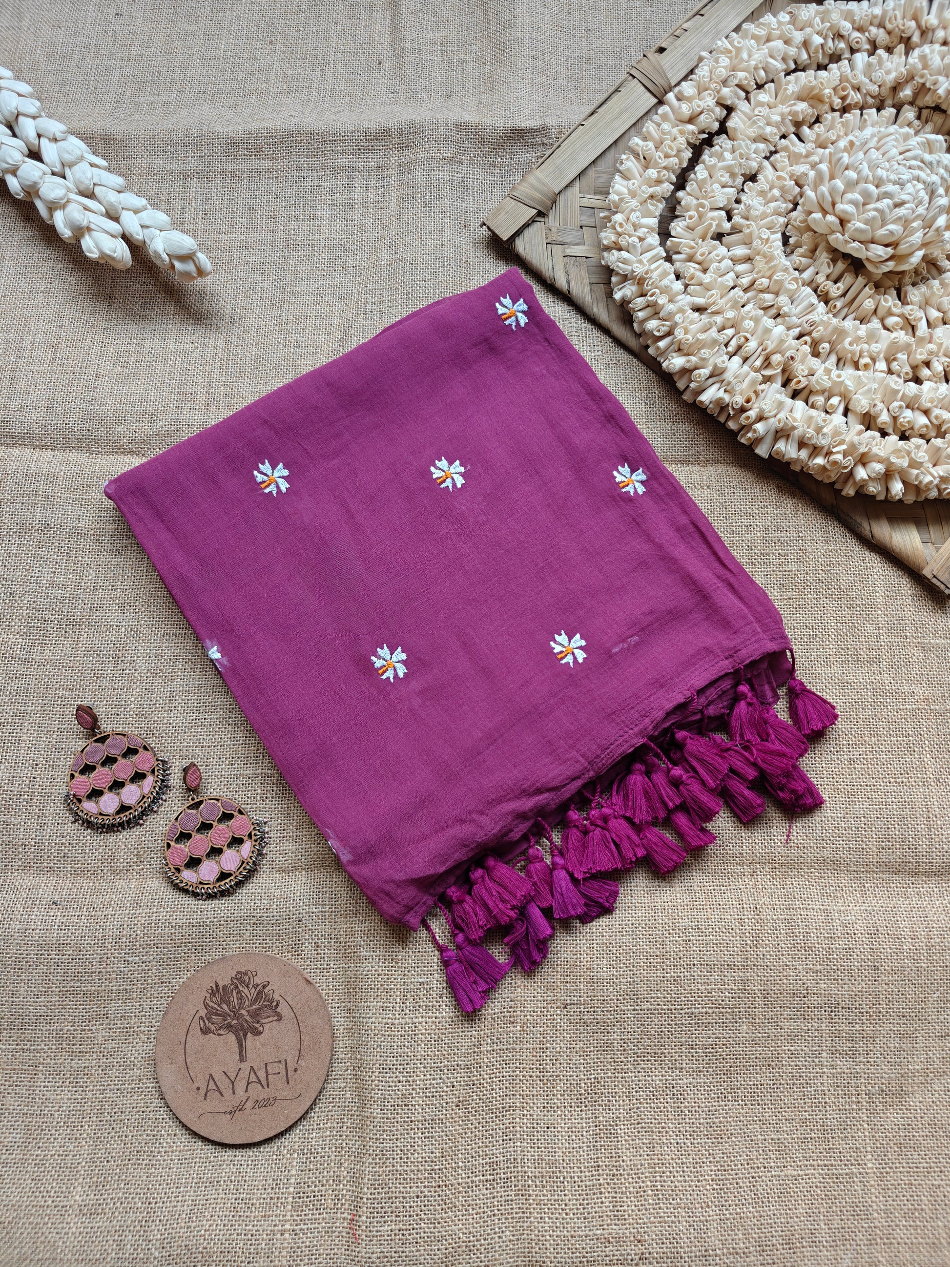 Introducing ‘FLORA’ Embroidered Mul Cotton Saree. What sets this saree apart is its intricate embroidery, meticulously woven by the loom to adorn the pallu and pleats with exquisite floral motifs.