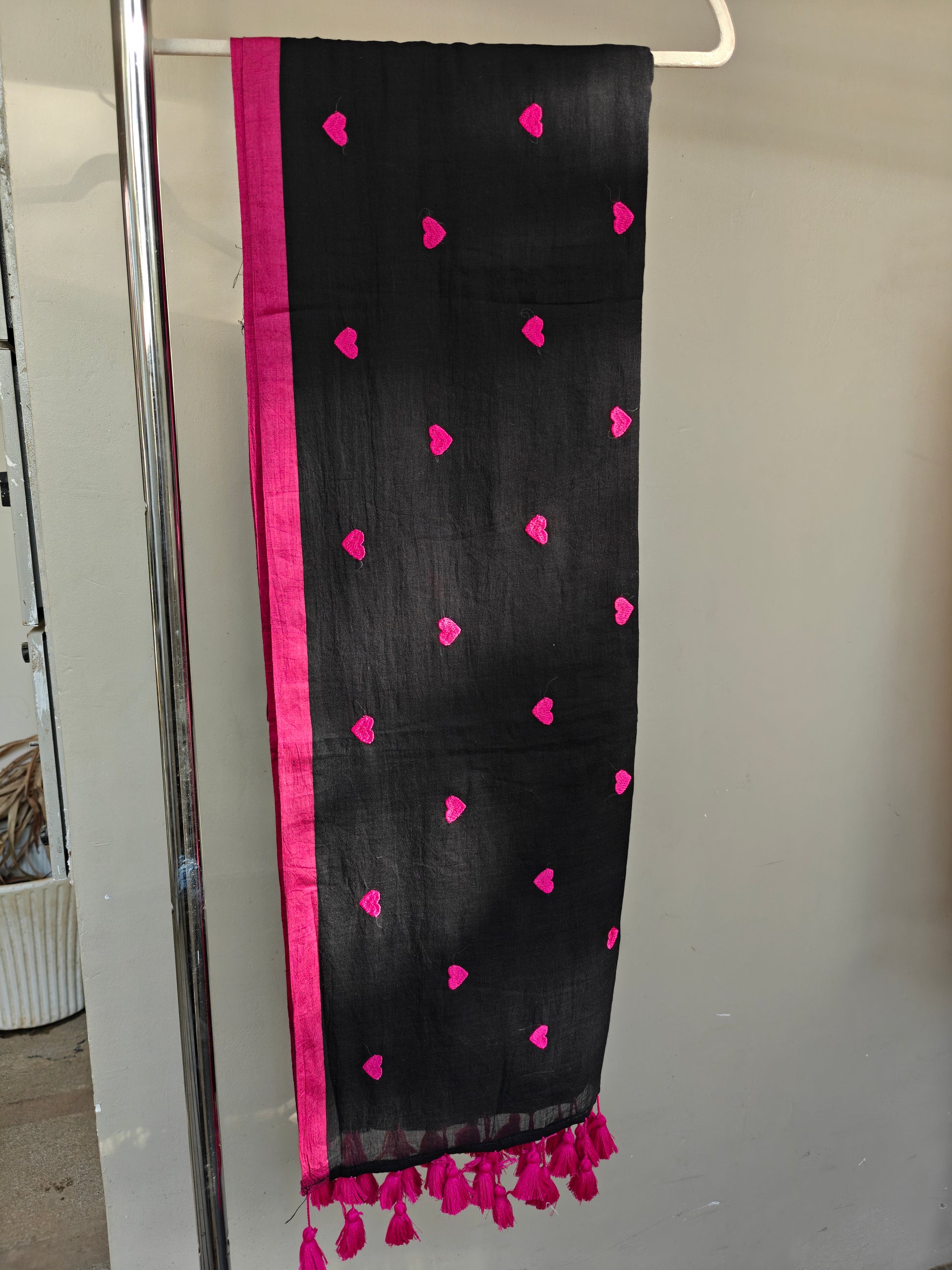 Introducing our exquisite ‘LOVE’ Embroidered Mul Cotton Saree. What sets this saree apart is its intricate embroidery, meticulously woven by the loom to adorn the fabric with beautiful Heart motifs.