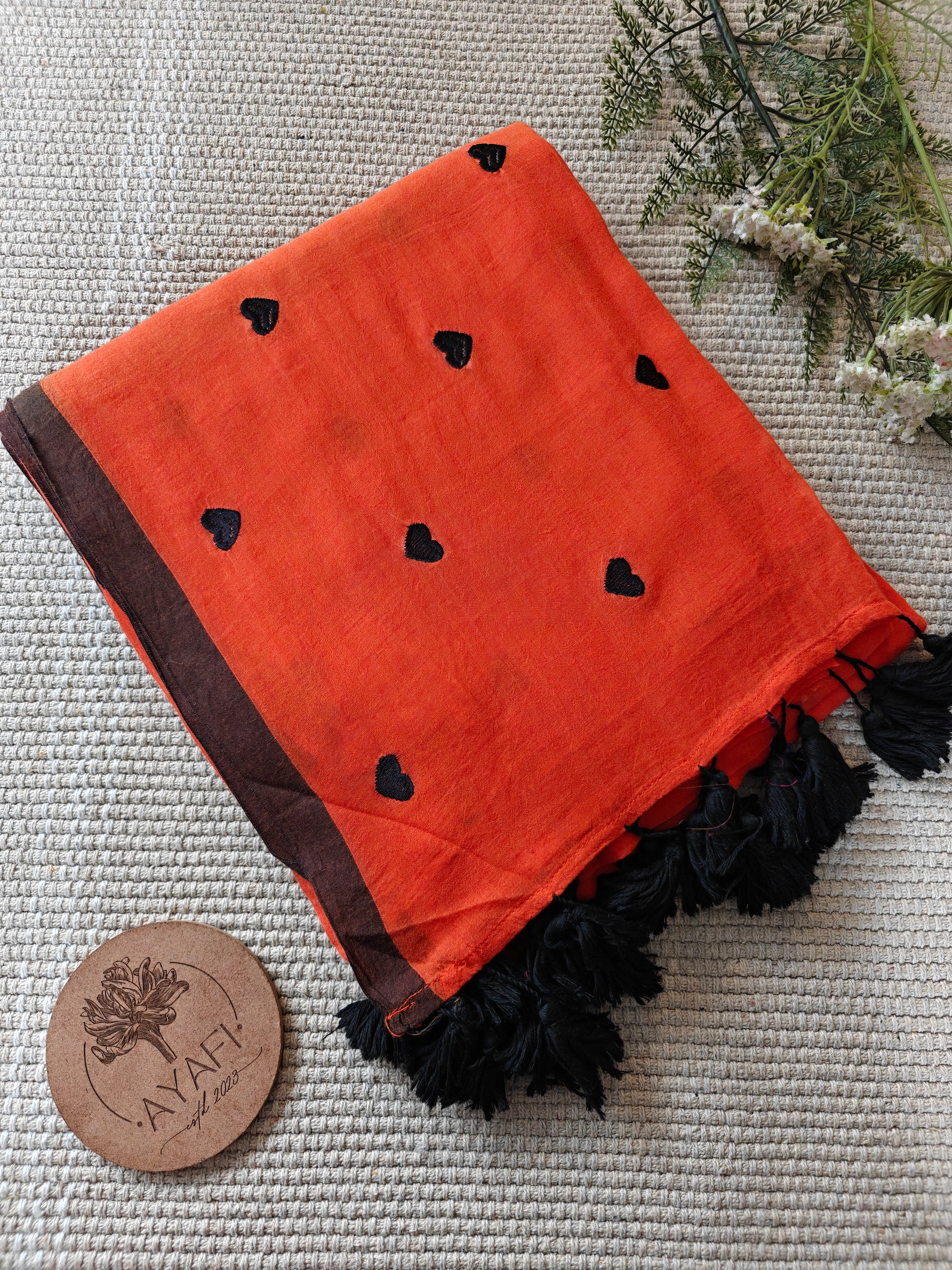 Introducing our exquisite ‘LOVE’ Embroidered Mul Cotton Saree. What sets this saree apart is its intricate embroidery, meticulously woven by the loom to adorn the fabric with beautiful Heart motifs.