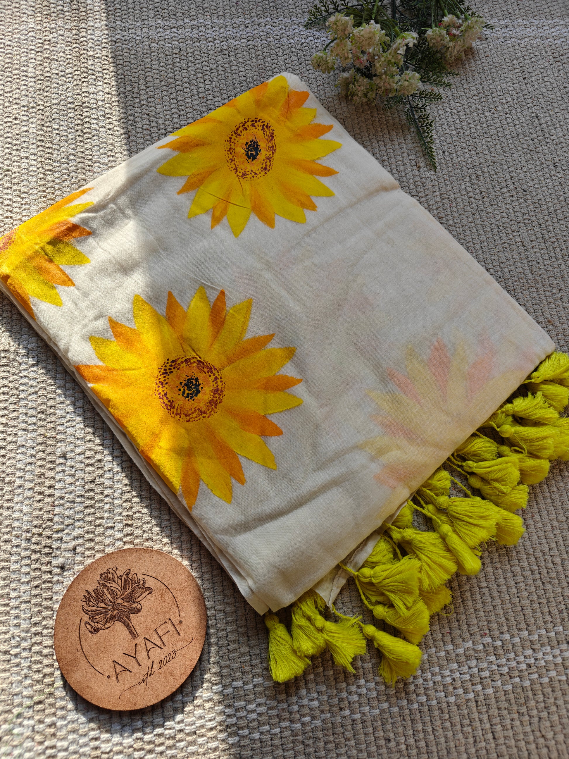 Sunflowers in Bloom Hand-Painted Saree