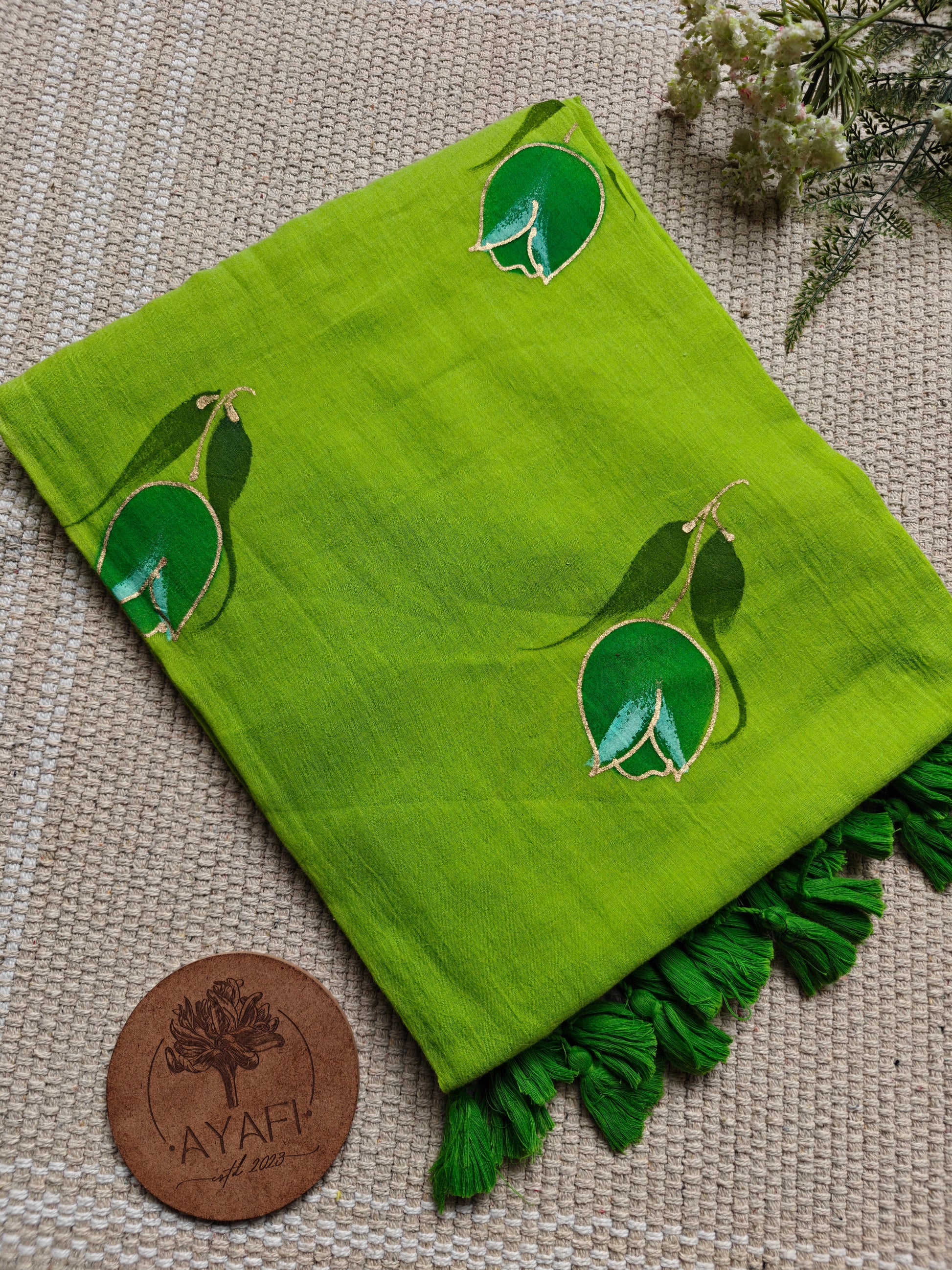 Soft, breathable, and incredibly lightweight, the mul cotton drapes like a dream—perfect for day-to-evening wear. Finished with delicate handmade tassels along the pallu, every detail speaks of slow fashion and one-of-a-kind charm.